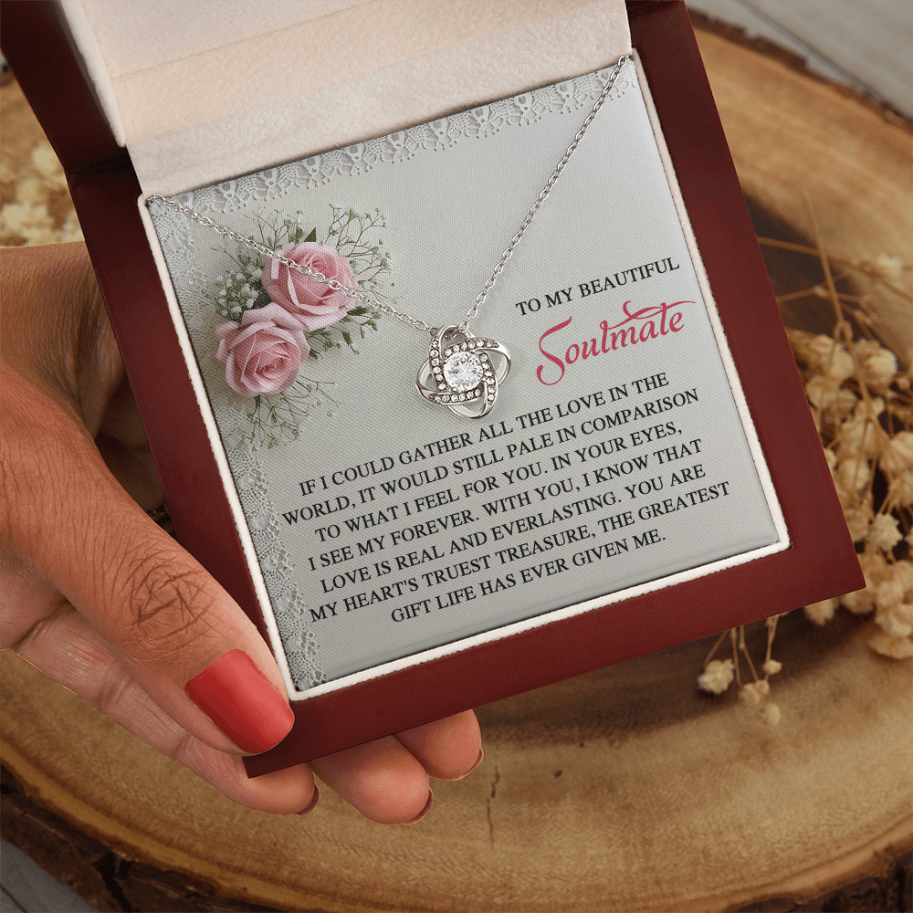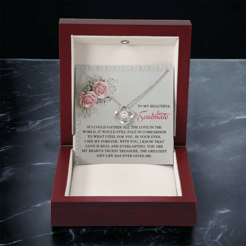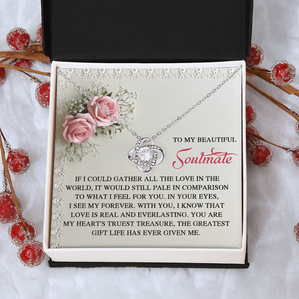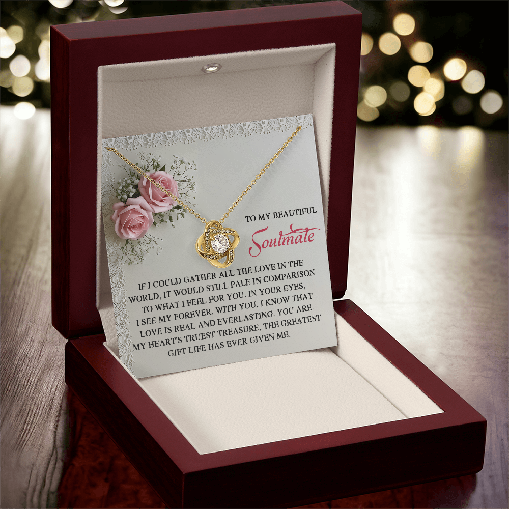 My Beautiful Soulmate - In Your Eyes, I See My Forever - With You I Know That Love Is Everlasting - My Heart's Truest Treasure - The Greatest Gift Life Has Ever Given Me - Love Knot Necklace LN, SMT0000094LN