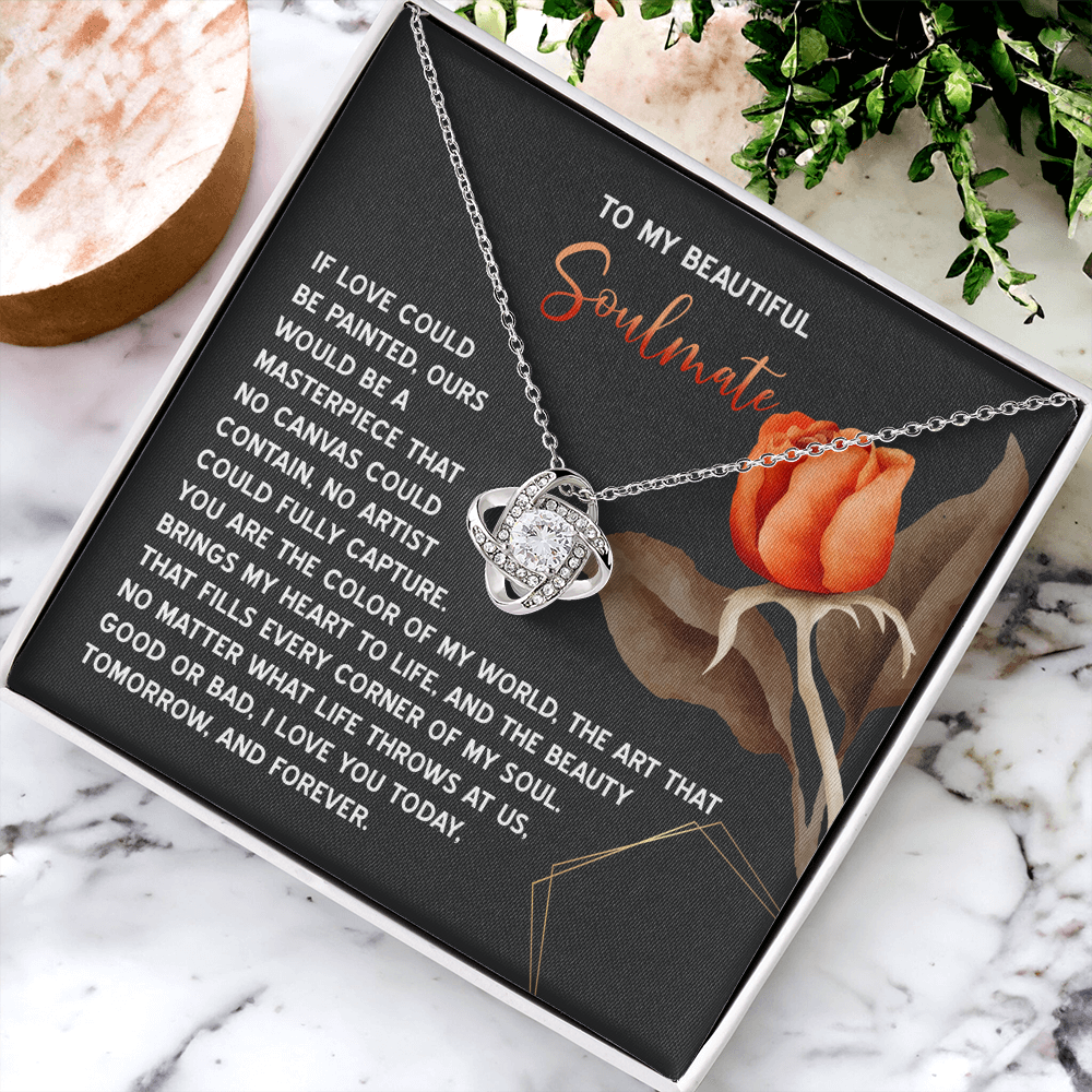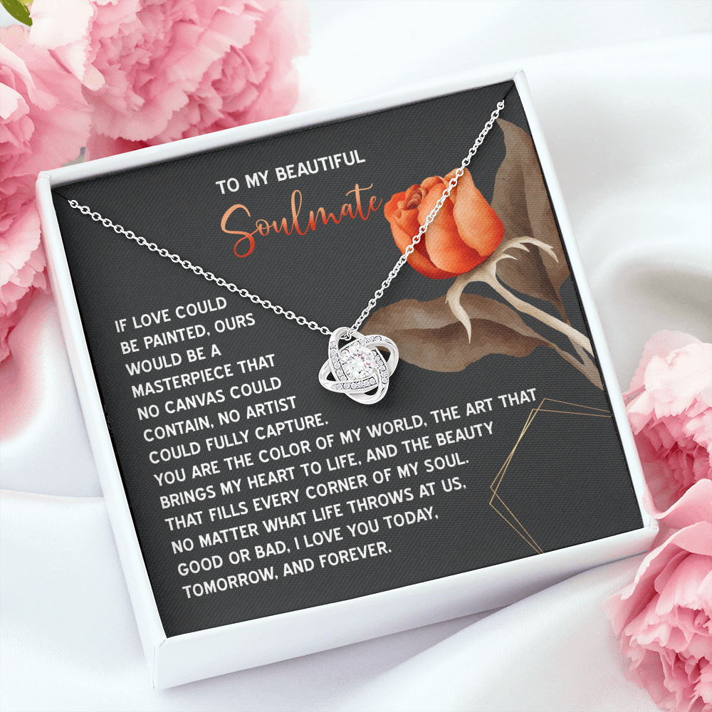 My Beautiful Soulmate - Love Painted Ours A Masterpiece - Color Of My World - Heart To Life - Love YouToday, Tomorrow And Forever - Love Knot Necklace LN, SMT0000057LN