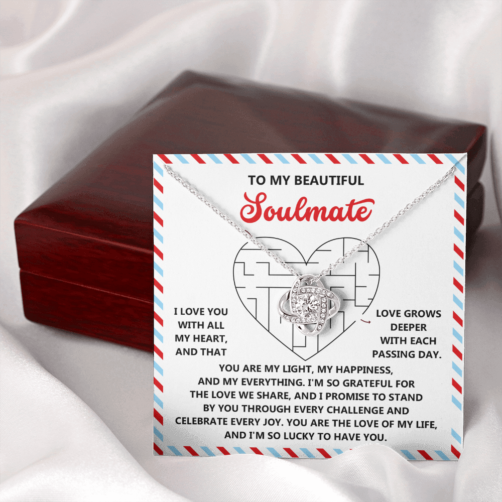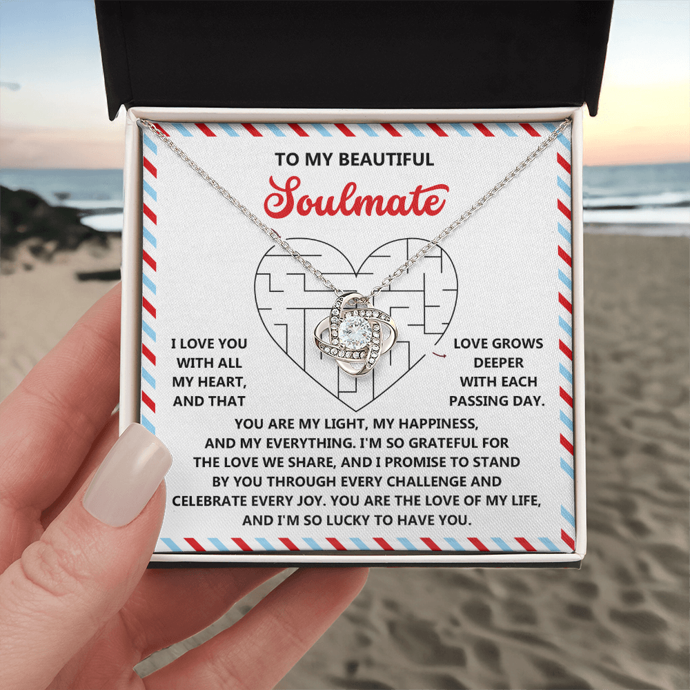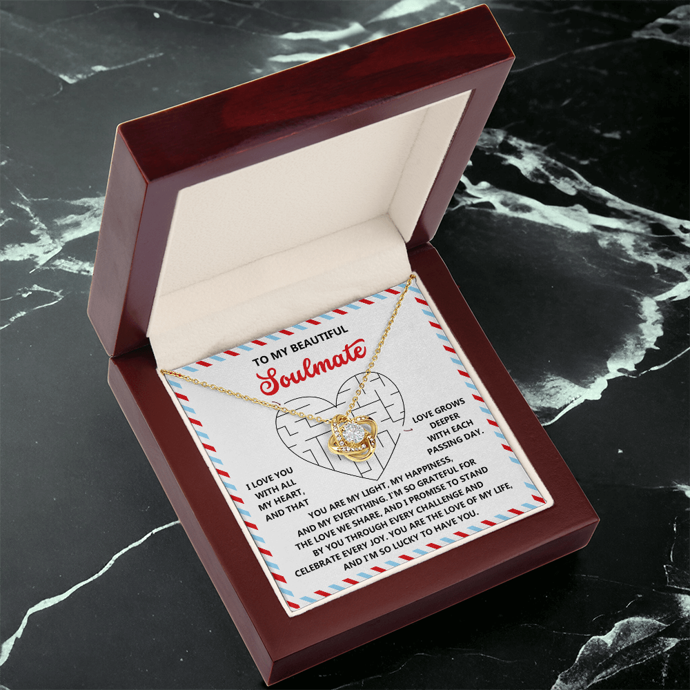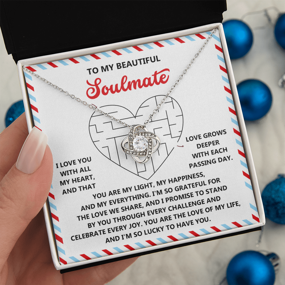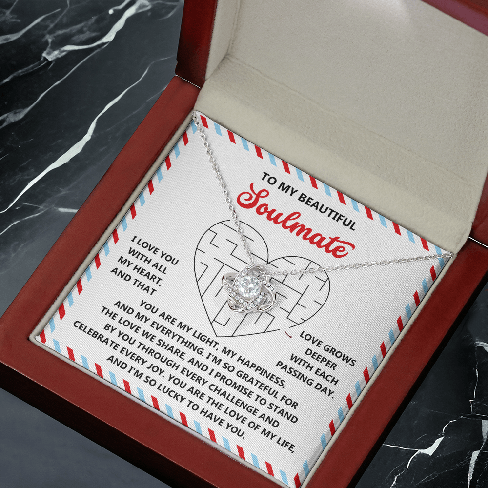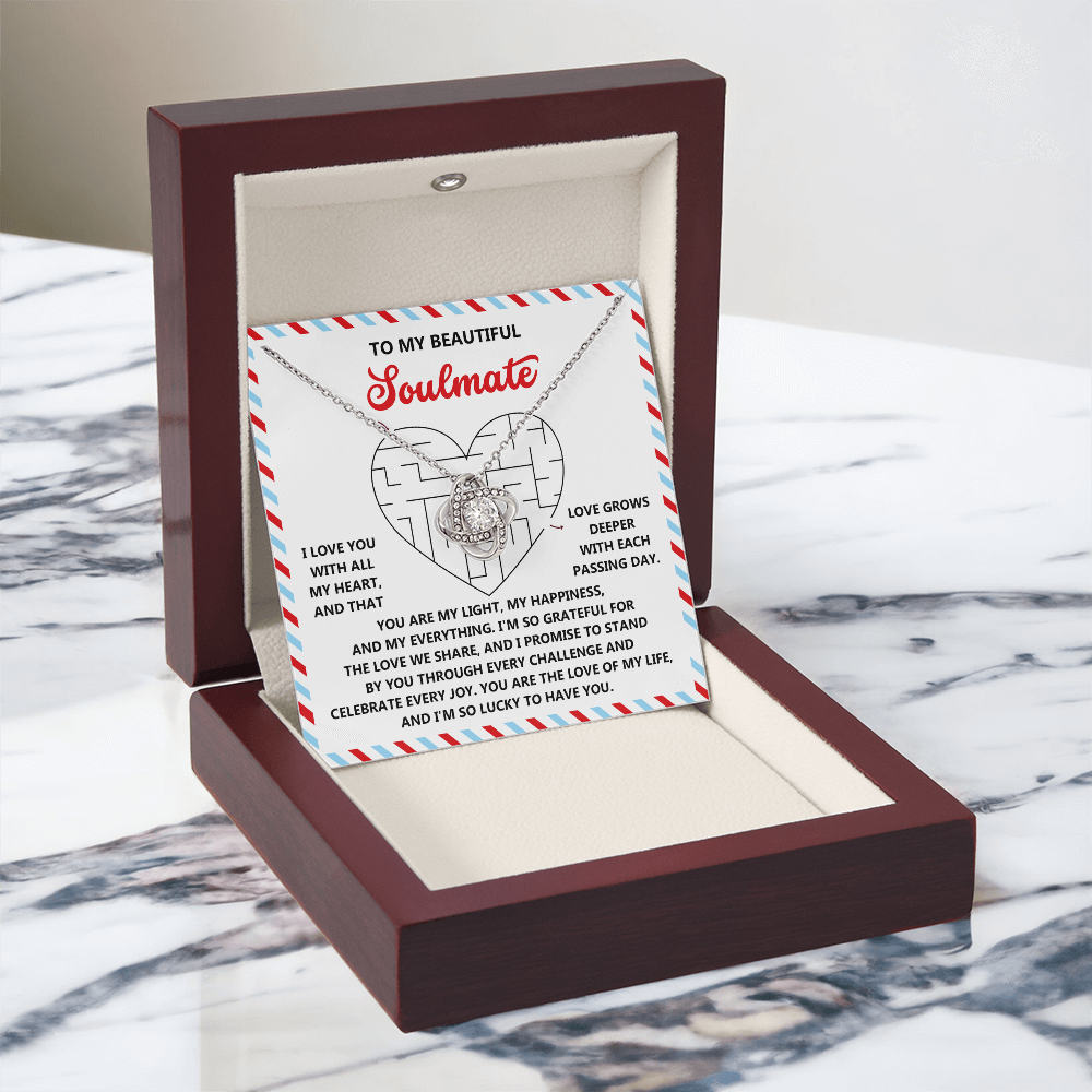 My Beautiful Soulmate - Love You With All My Heart And Grows Deeper With Each Passing Day - My Light, My Happiness And My Everything - The Love Of My Life - Love Knot Necklace LN, SMT0000107LN