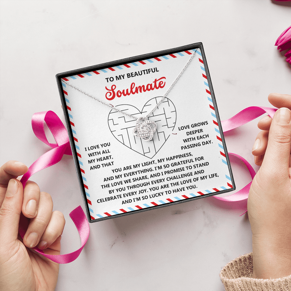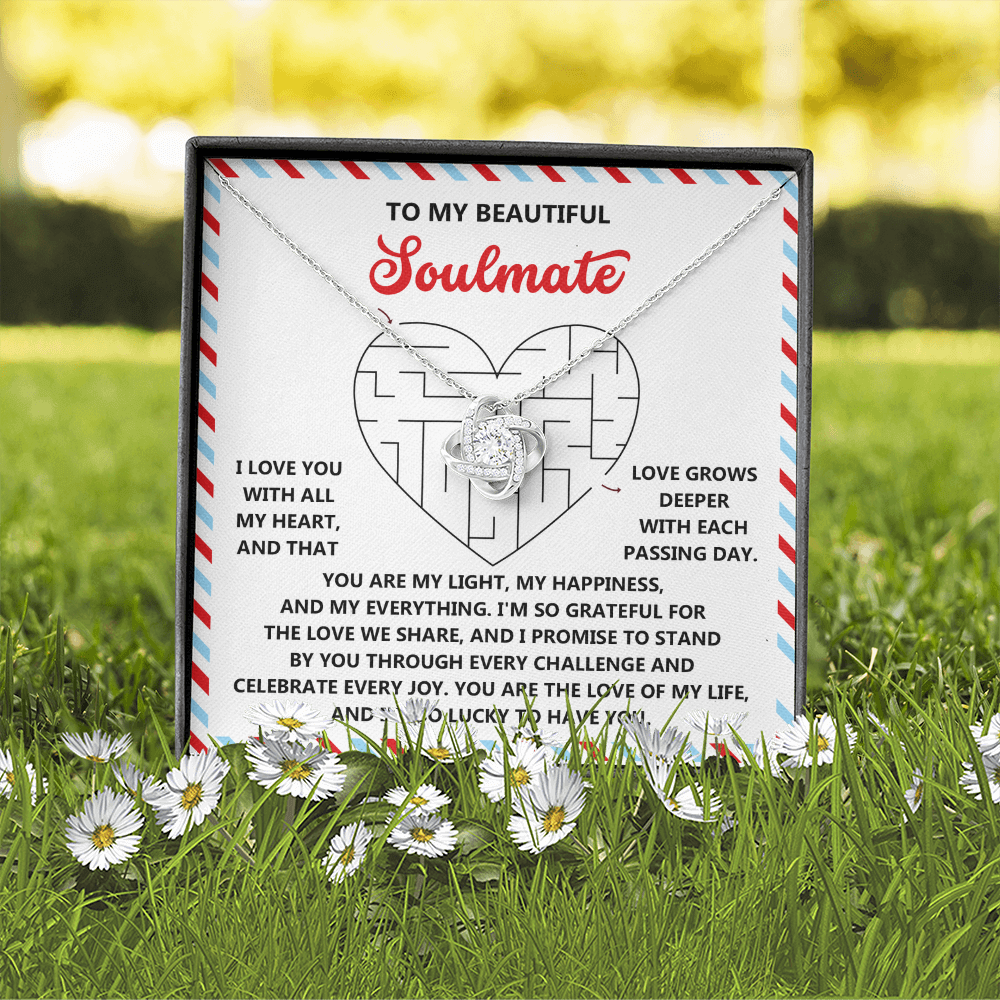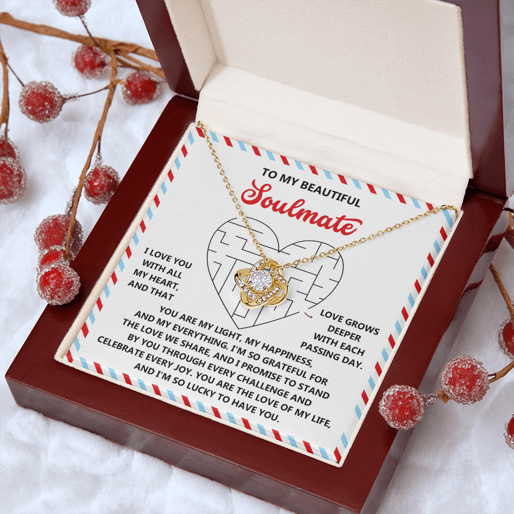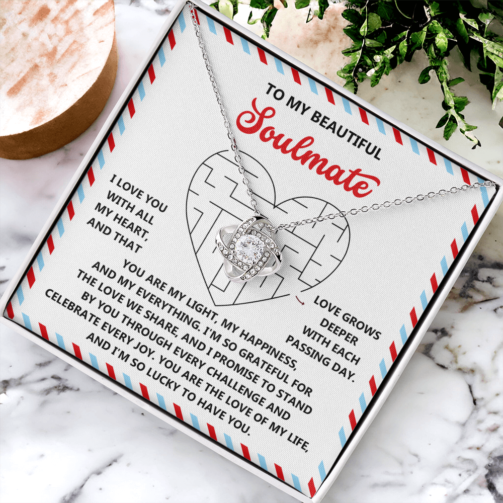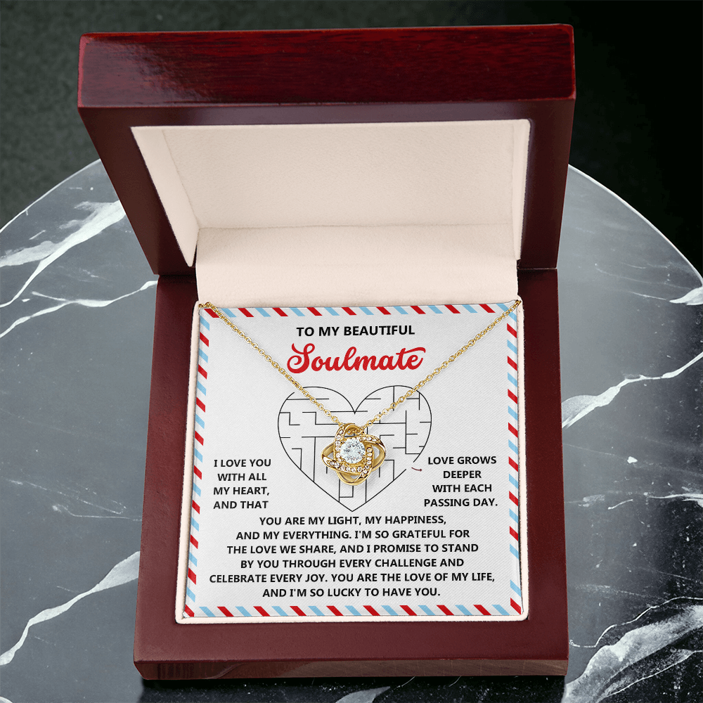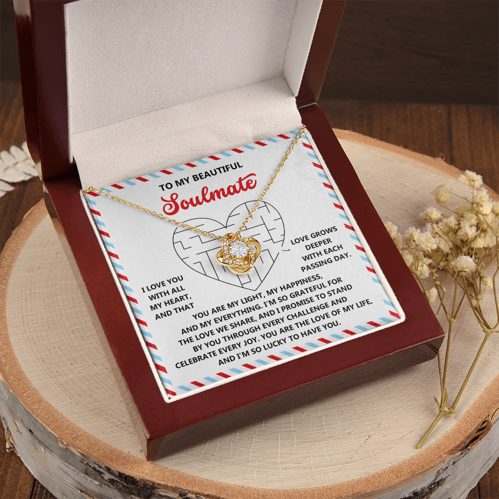 My Beautiful Soulmate - Love You With All My Heart And Grows Deeper With Each Passing Day - My Light, My Happiness And My Everything - The Love Of My Life - Love Knot Necklace LN, SMT0000107LN