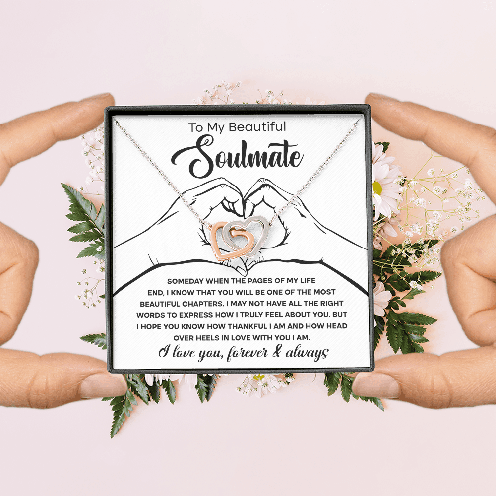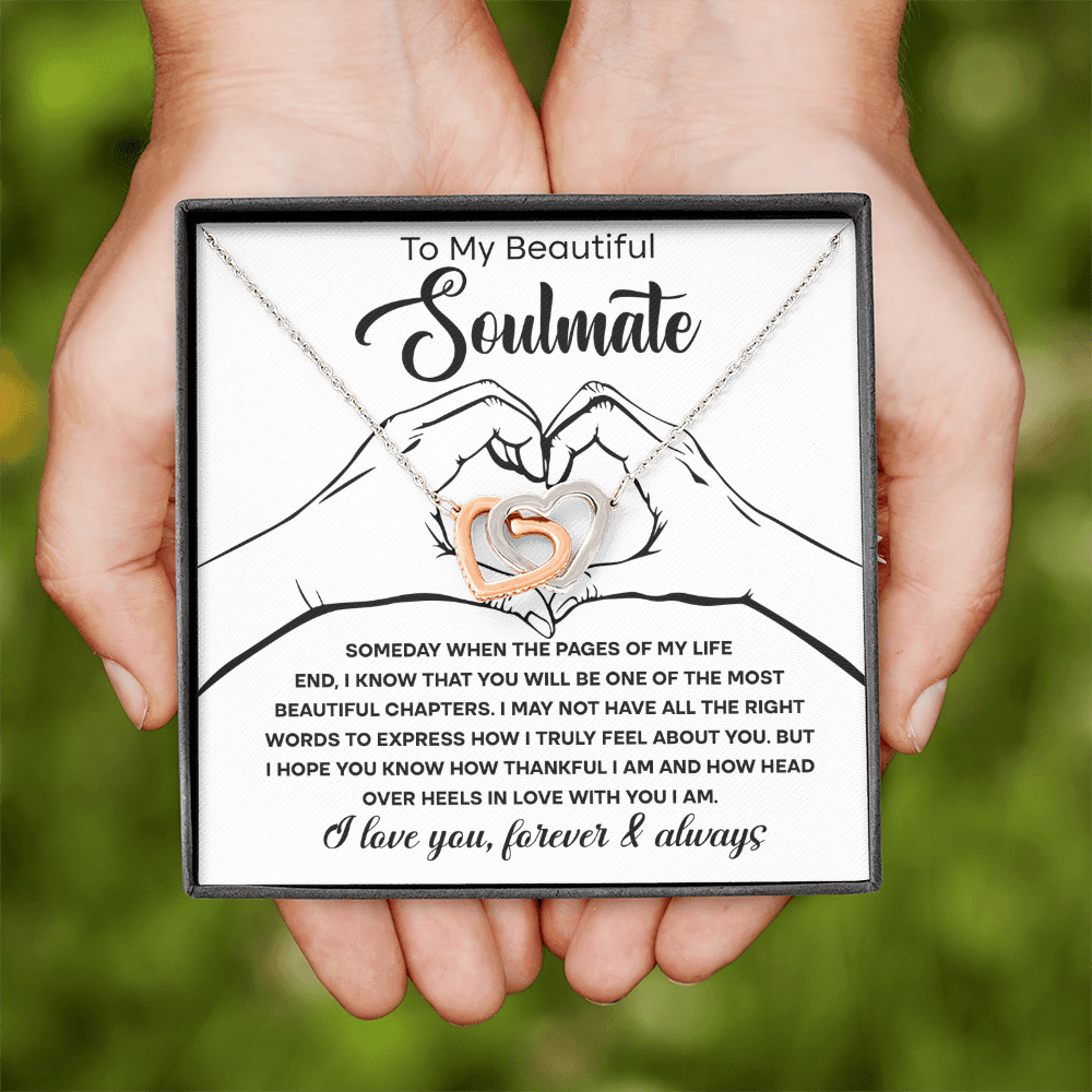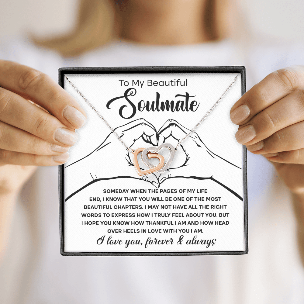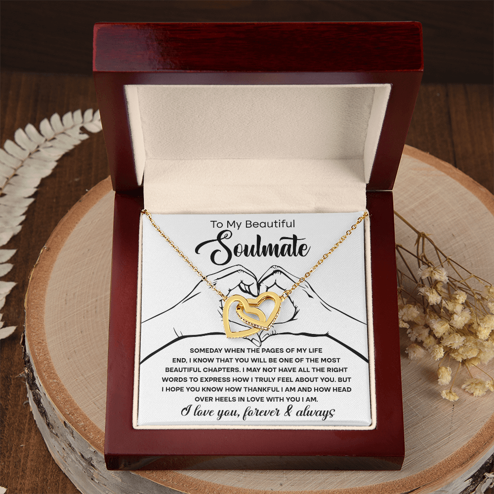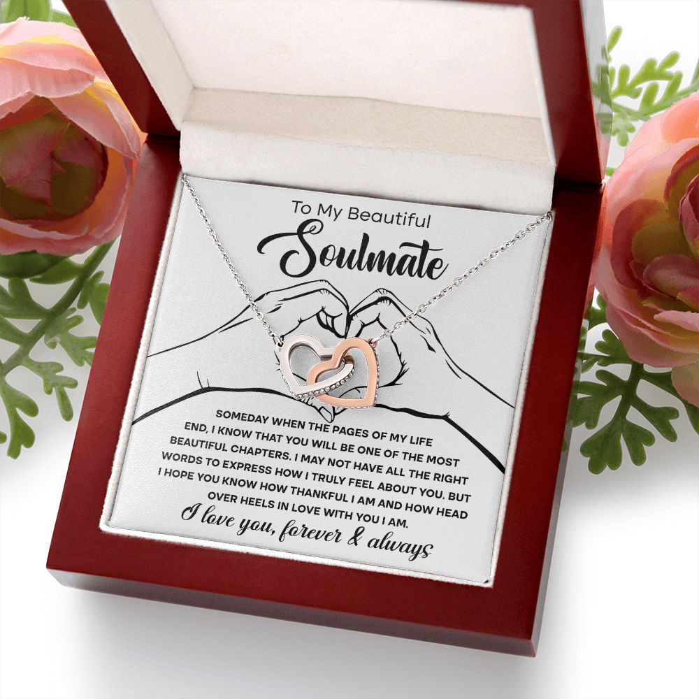My Beautiful Soulmate - One Of The Most Beautiful Chapters - How Thankful I Am & Head Over Heels In Love With You - Love You Forever & Always - Interlocking Hearts Necklace IH, SMT0000115IH