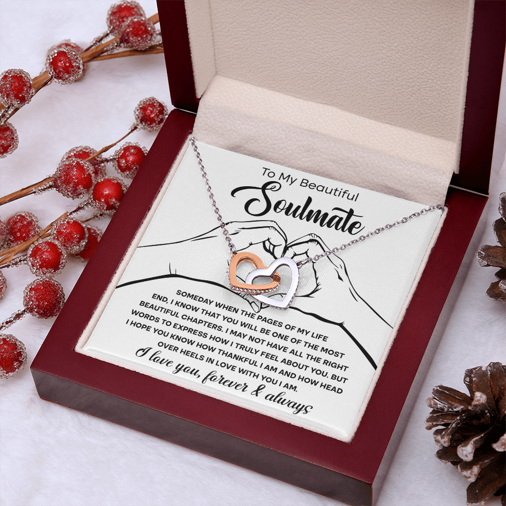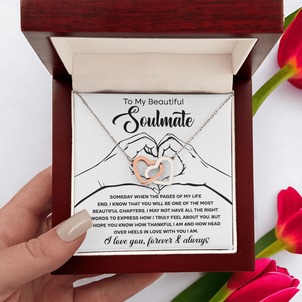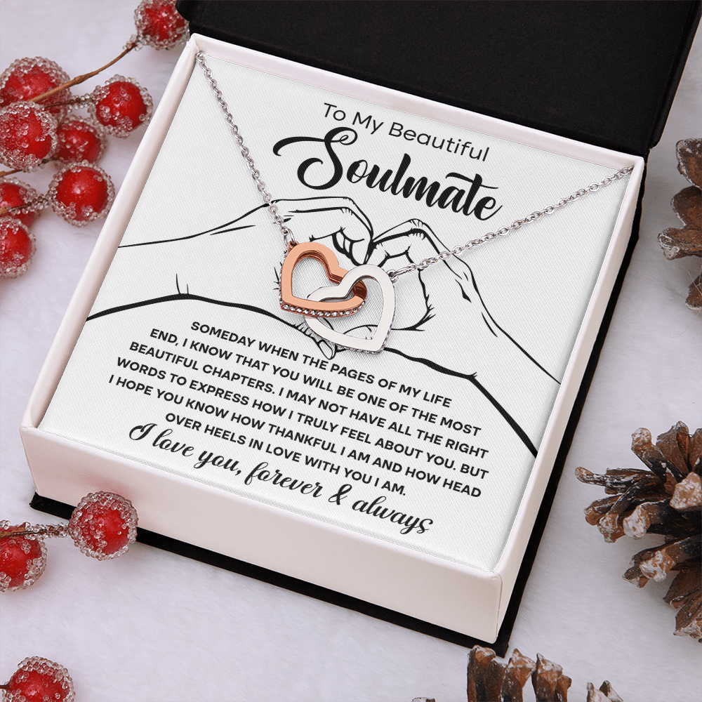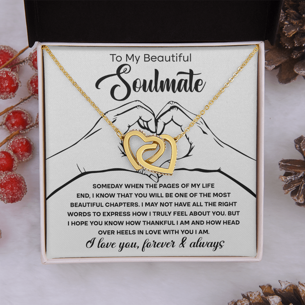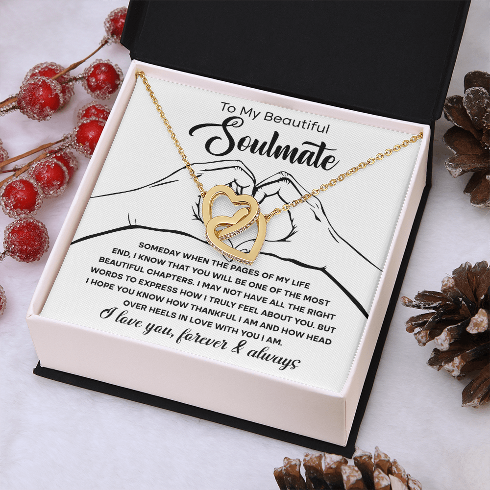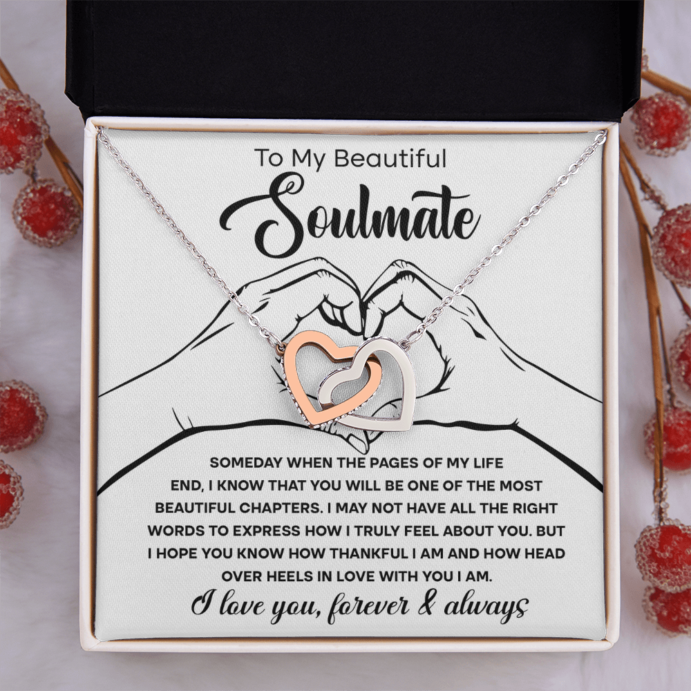 My Beautiful Soulmate - One Of The Most Beautiful Chapters - How Thankful I Am & Head Over Heels In Love With You - Love You Forever & Always - Interlocking Hearts Necklace IH, SMT0000115IH