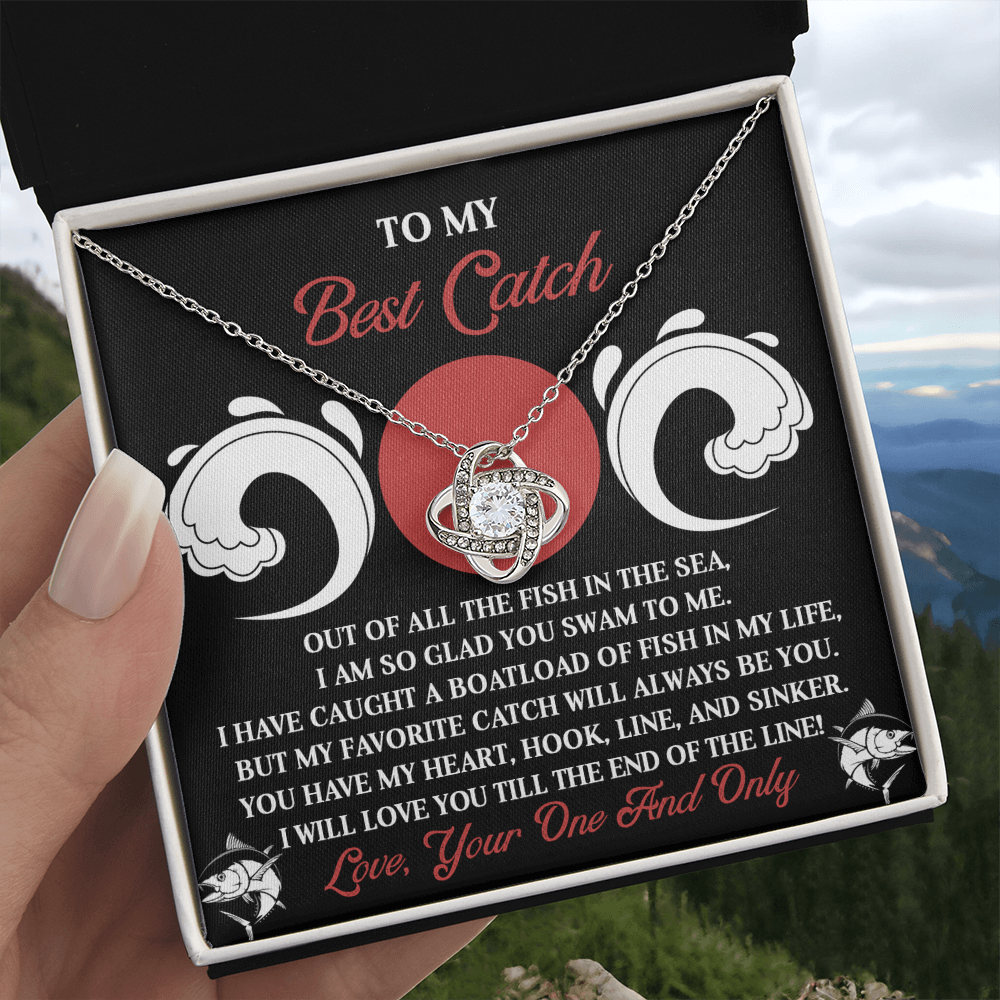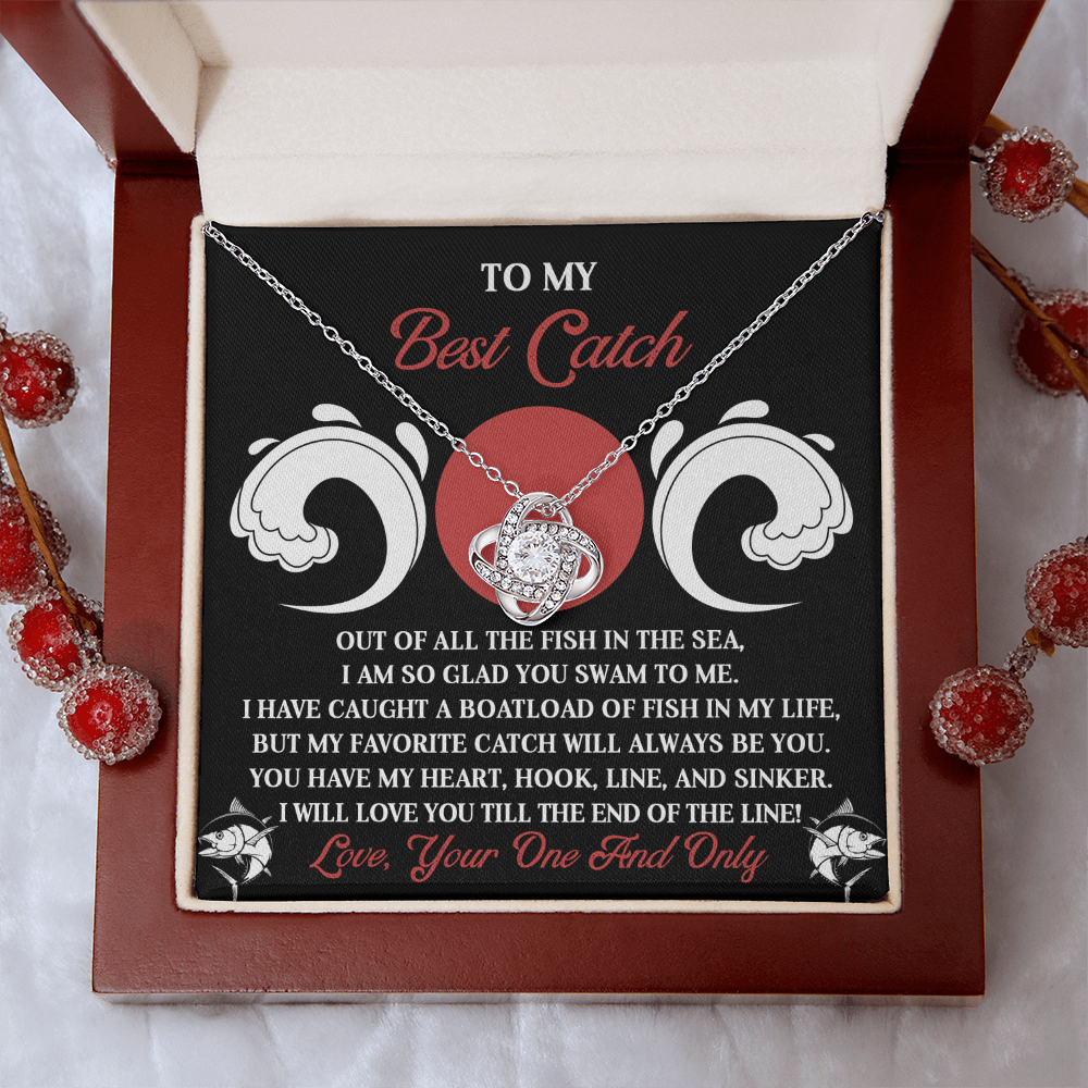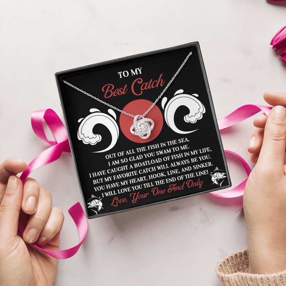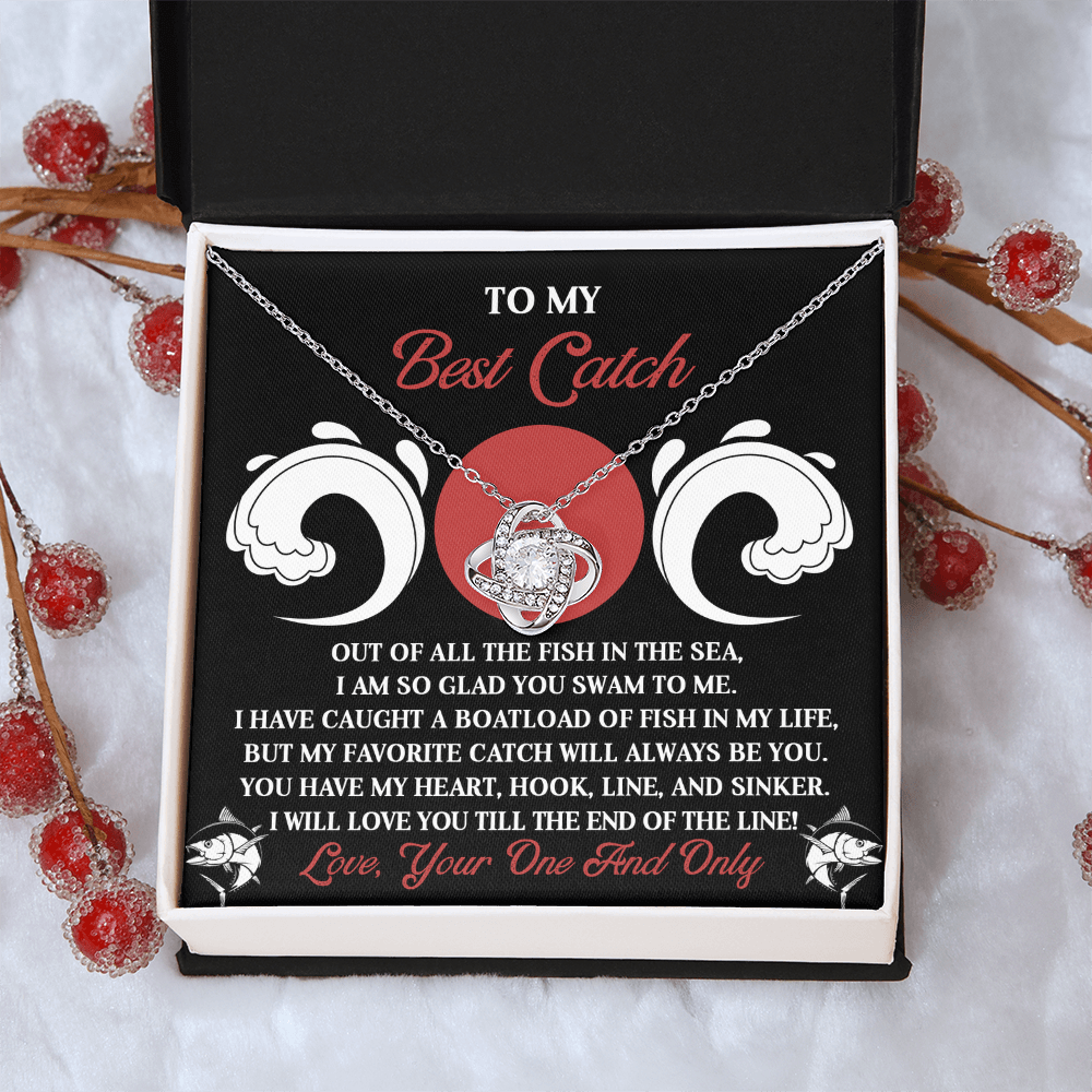 My Best Catch - Of All The Fish In The Sea, I Am So Glad You Swam To Me - You Have My Heart, Hook, Line And Sinker - Love You Till The End Of The Line - Love Knot Necklace LN, SMT0000103LN