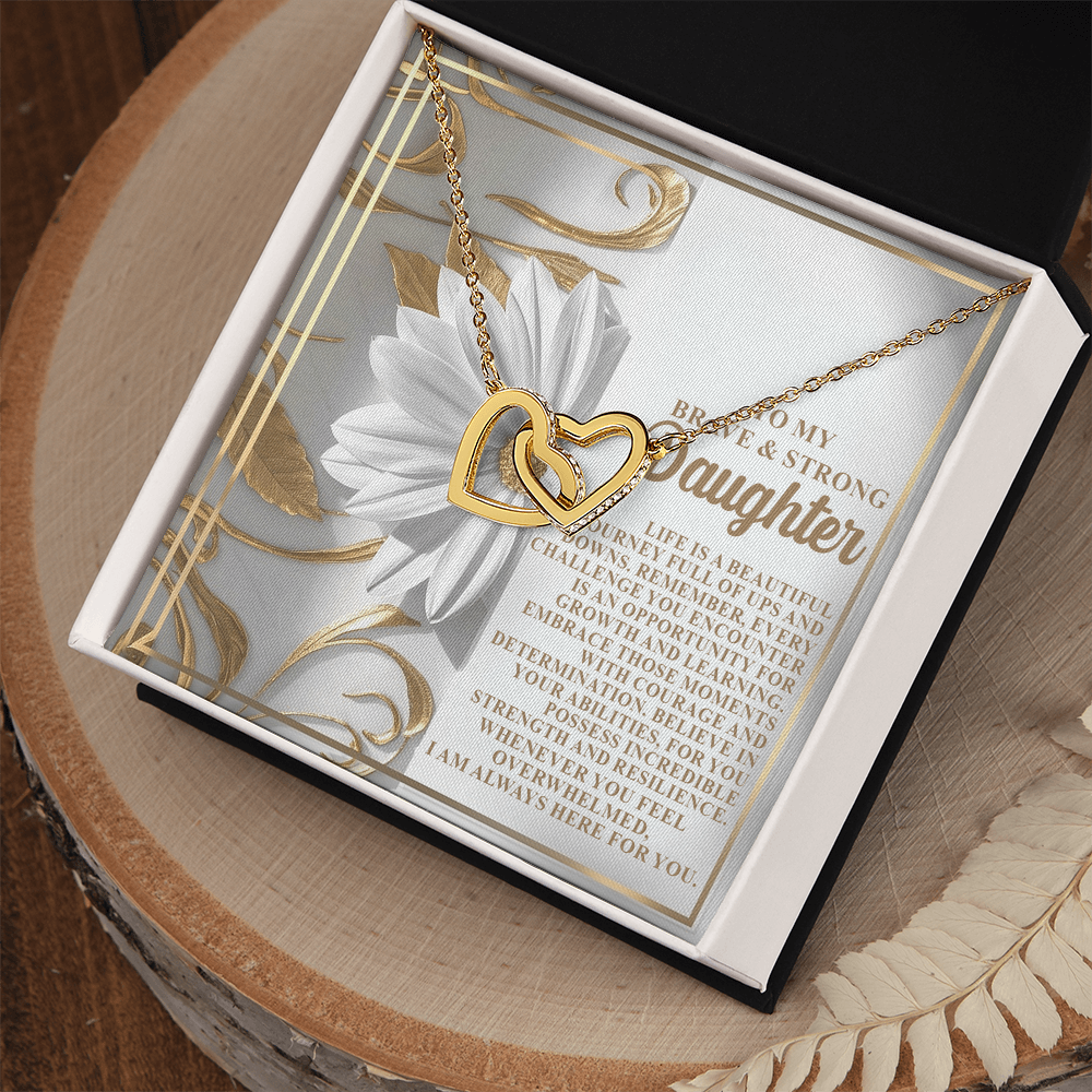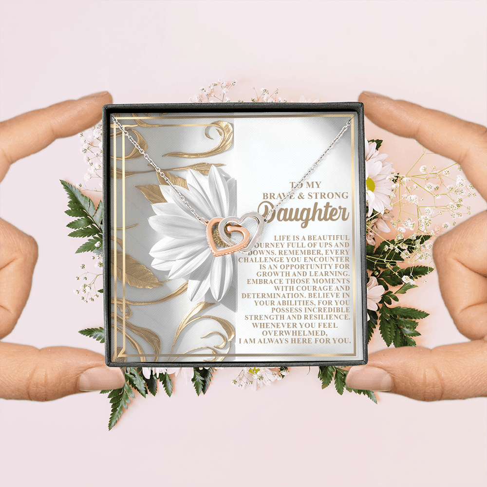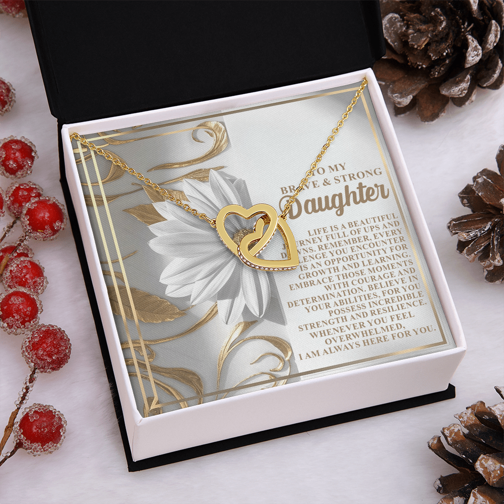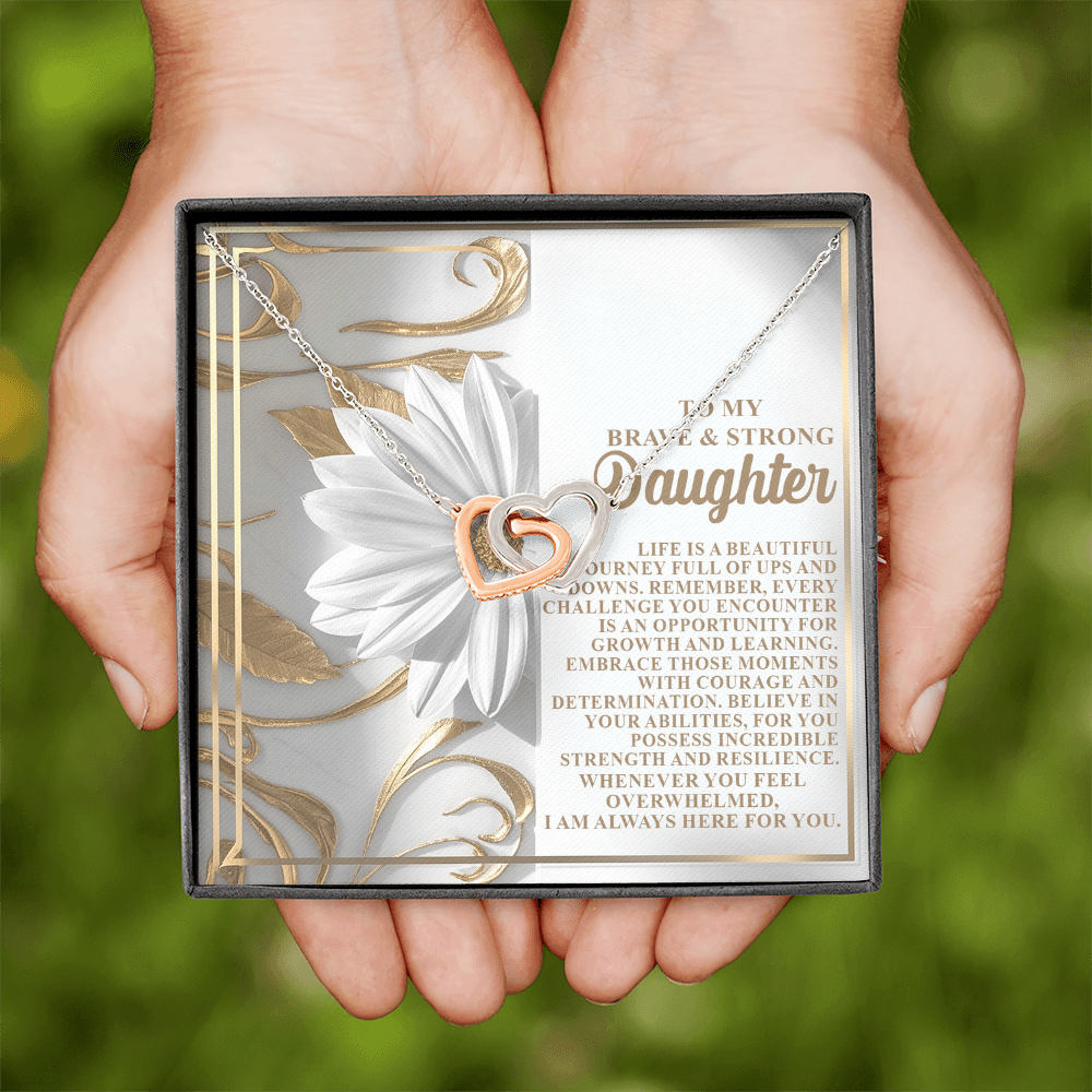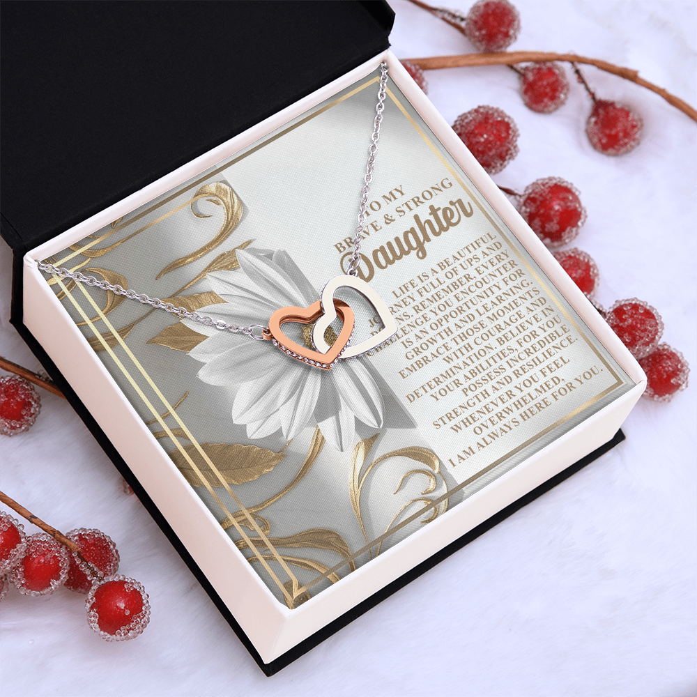 My Brave & Strong Daughter - Life Is A Beautiful Journey - Embrace Those Moments With Courage & Determination - Believe In Your Abilities - I Am Always Here For You - Interlocking Hearts Necklace IH, DAU0000120IH