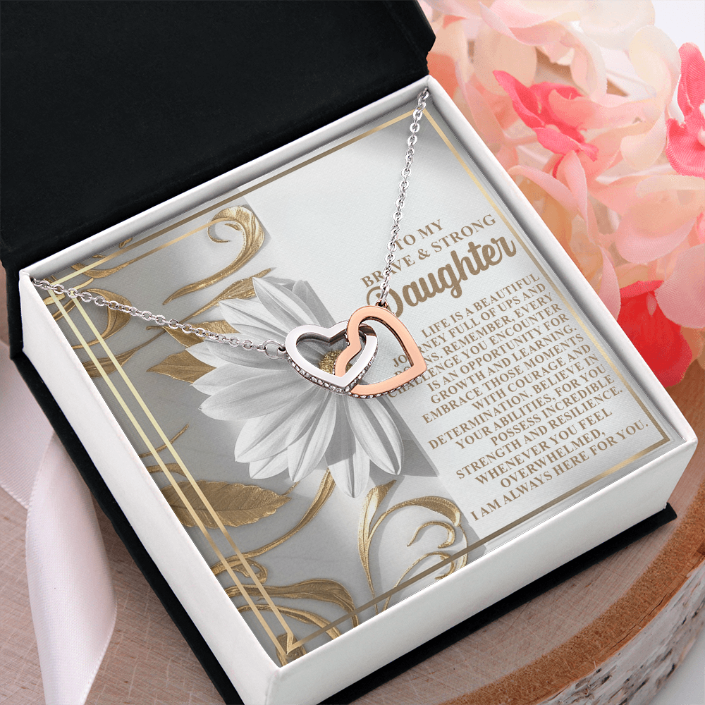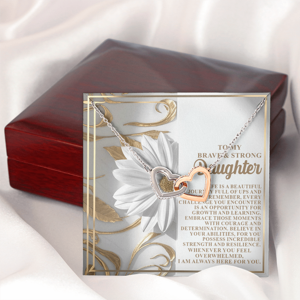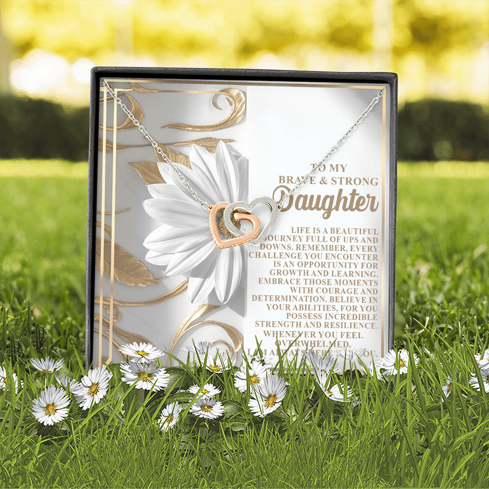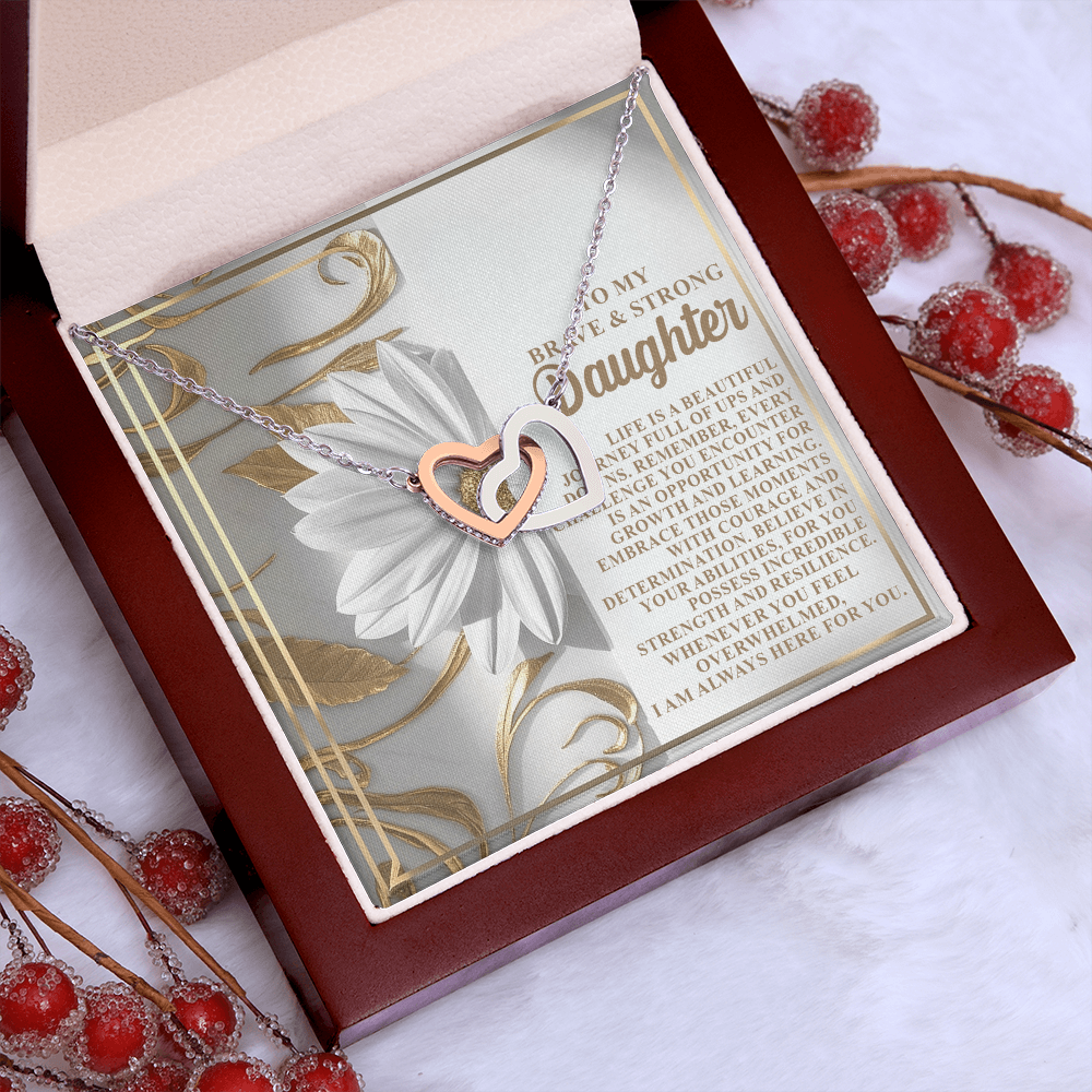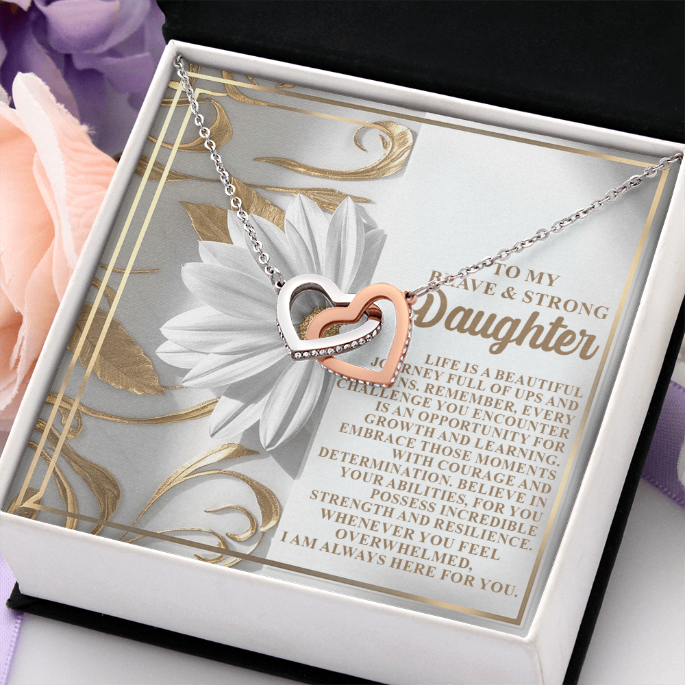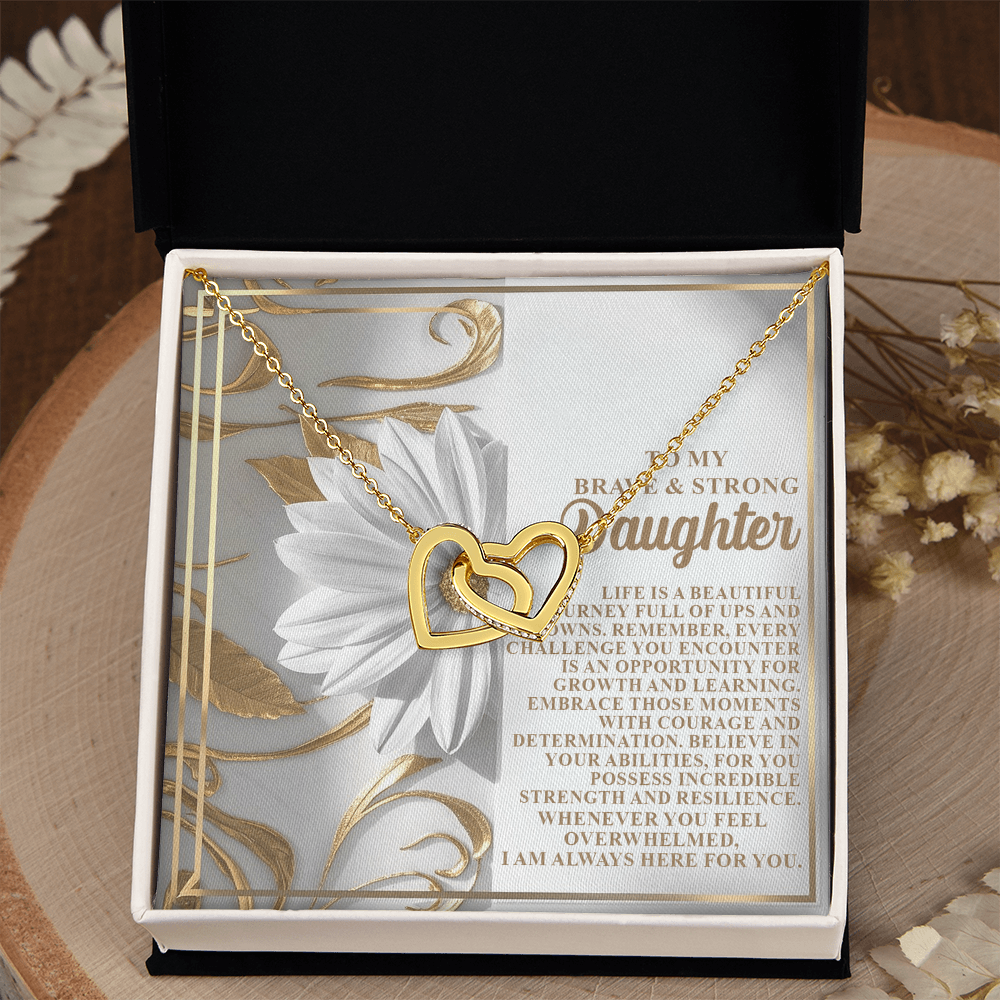 My Brave & Strong Daughter - Life Is A Beautiful Journey - Embrace Those Moments With Courage & Determination - Believe In Your Abilities - I Am Always Here For You - Interlocking Hearts Necklace IH, DAU0000120IH
