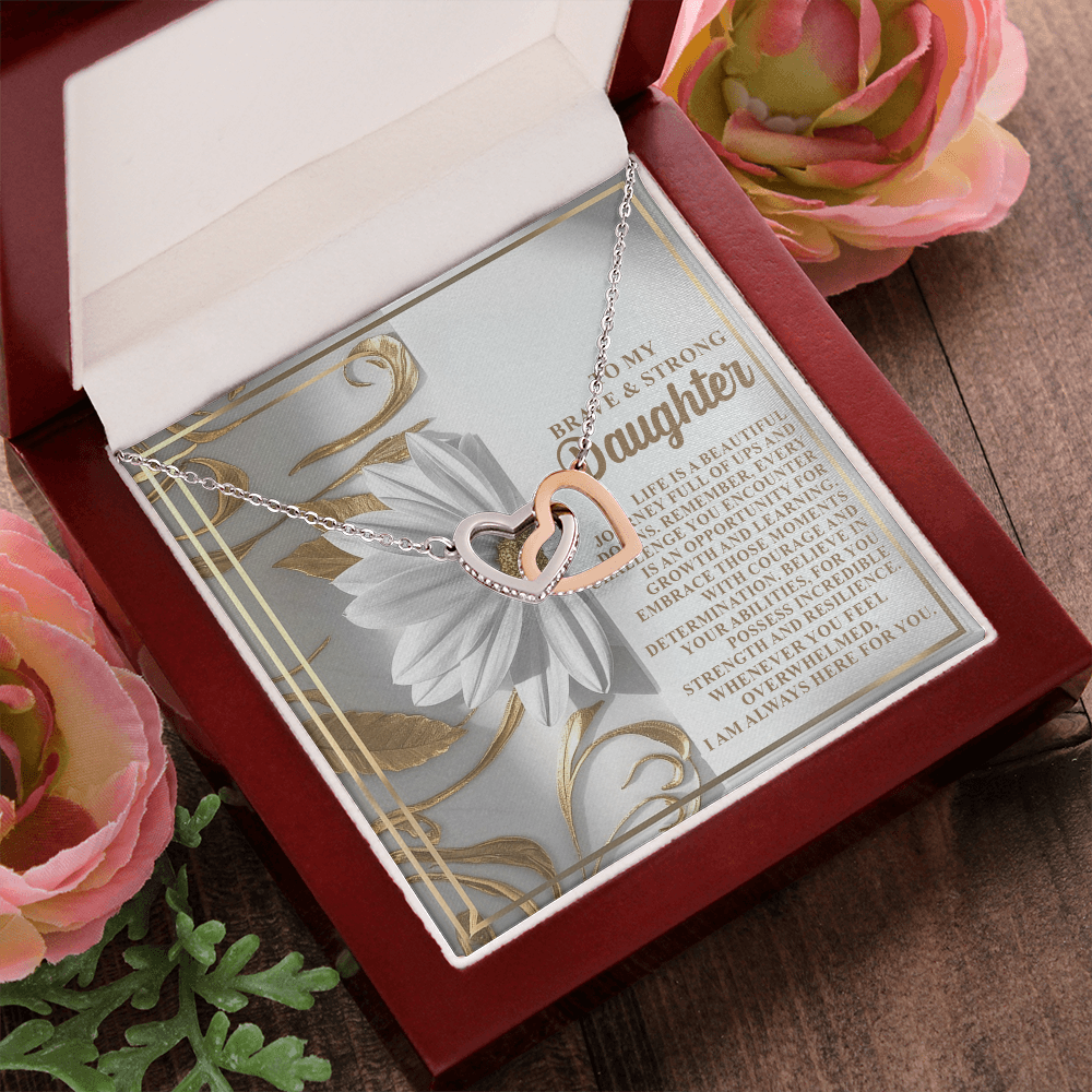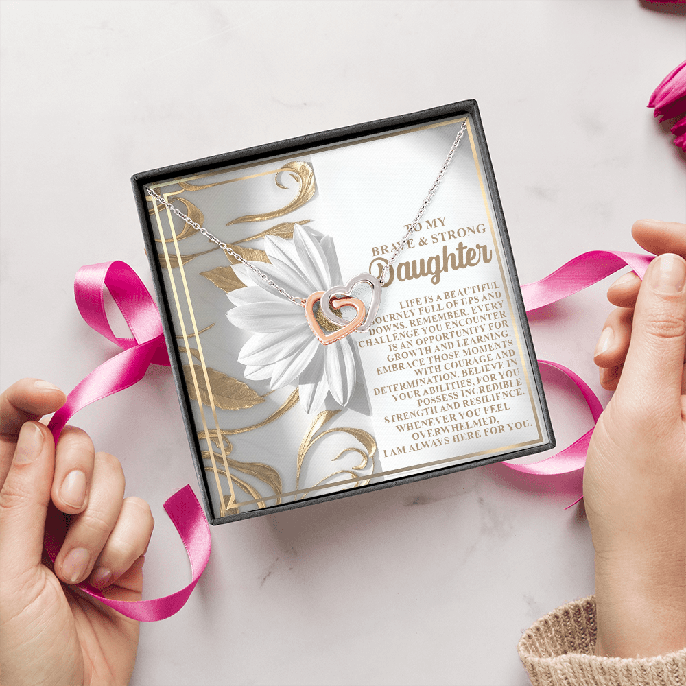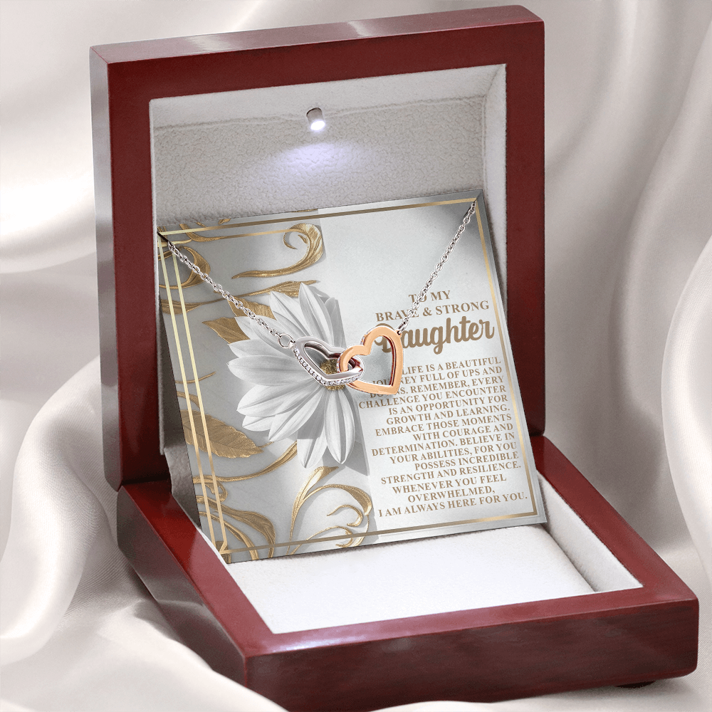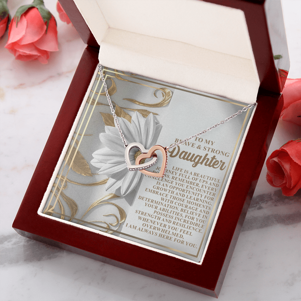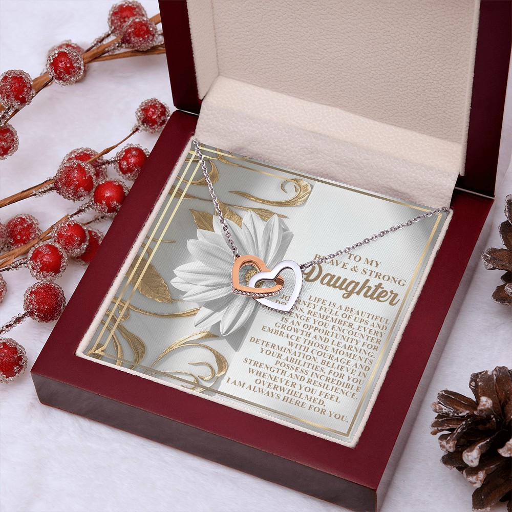 My Brave & Strong Daughter - Life Is A Beautiful Journey - Embrace Those Moments With Courage & Determination - Believe In Your Abilities - I Am Always Here For You - Interlocking Hearts Necklace IH, DAU0000120IH