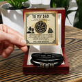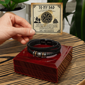Composed of stainless steel and vegan leather, this handsome bracelet features a strong magnetic clasp, making your sentimental gift last a lifetime! Your piece is packaged in a complimentary soft touch box for easy gifting. Elevate your presentation by upgrading to the mahogany style luxury box, which features a brilliant LED spotlight.