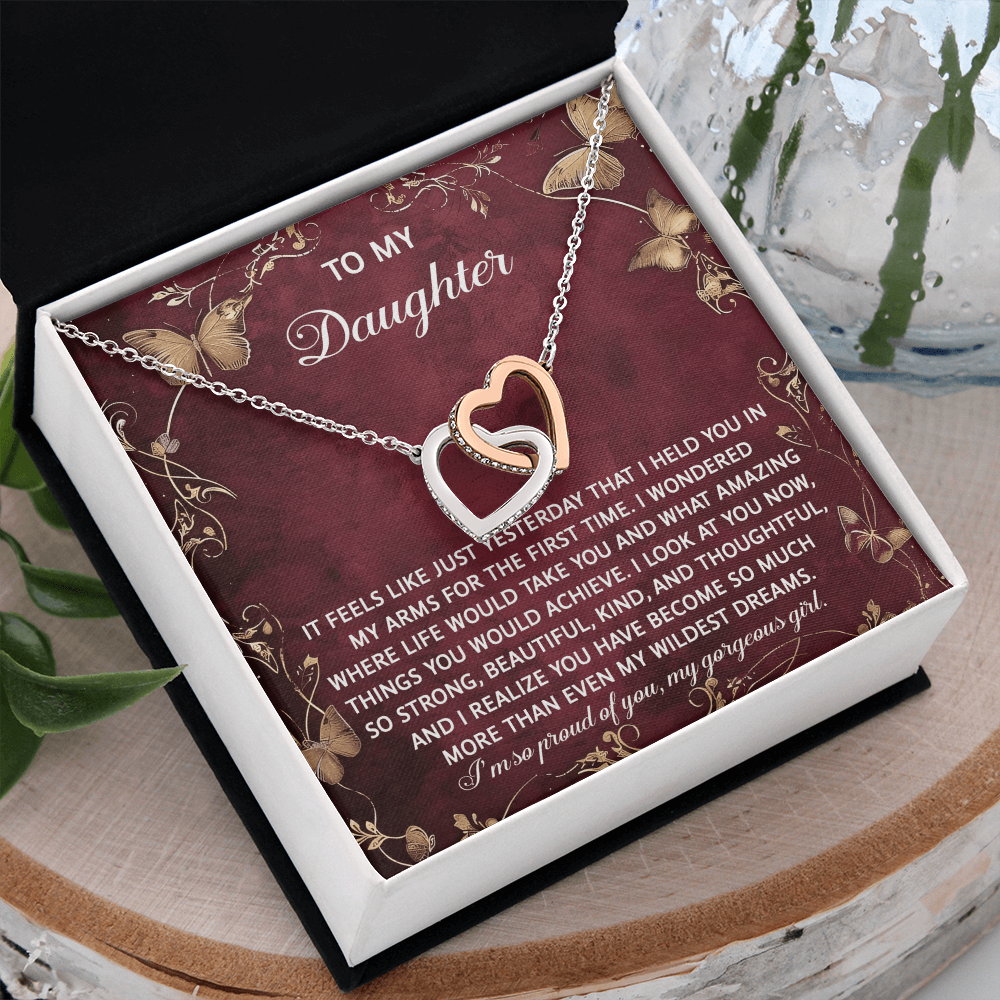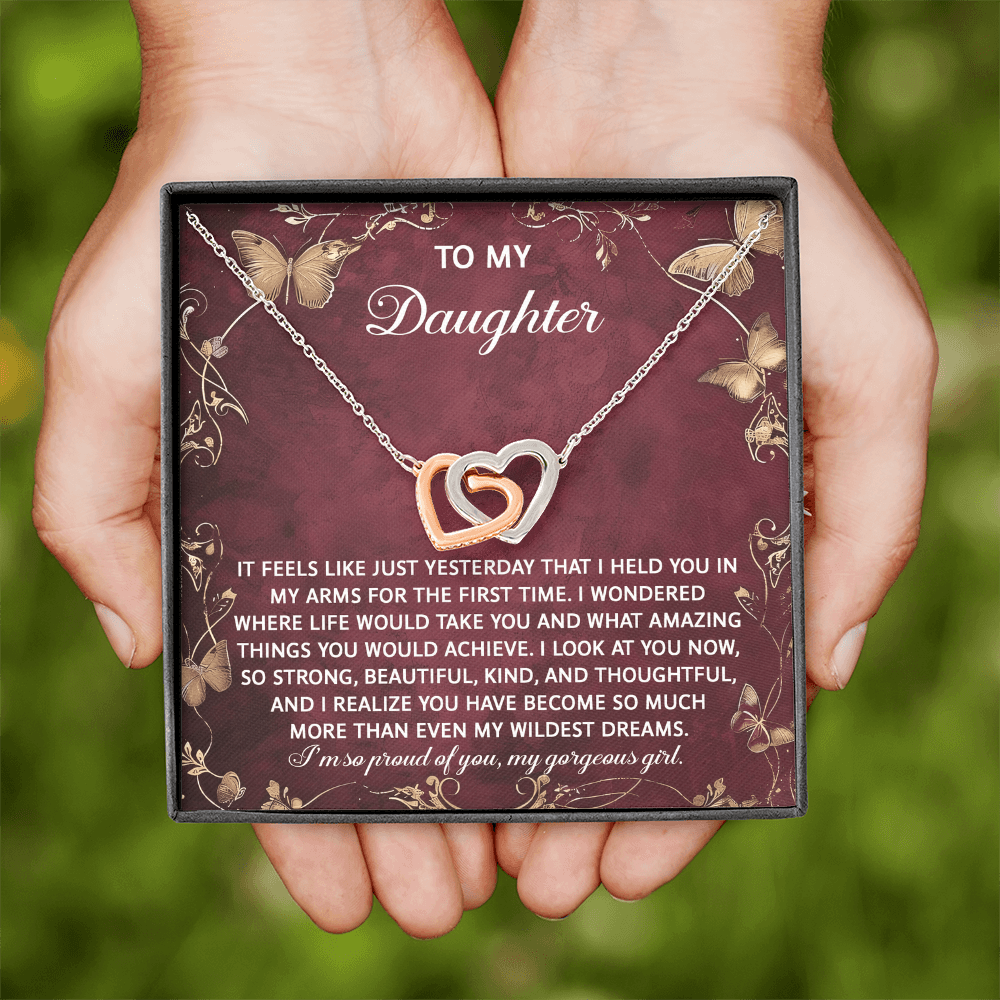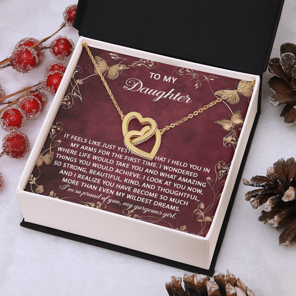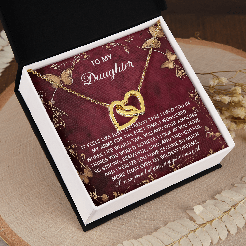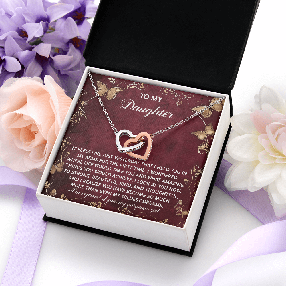 My Daughter - Feels Just Yesterday I Held You In My Arms - Look At You Now, So Strong, Beautiful, Kind & Thoughtful - Become So Much More Than Even My Wildest Dreams - So Proud Of You My Gorgeous Girl - Interlocking Hearts Necklace IH, DAU0000104IH