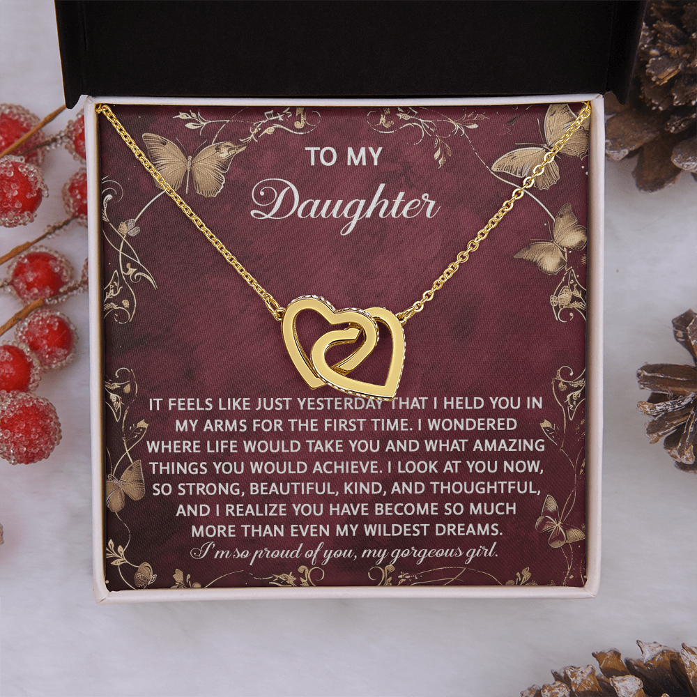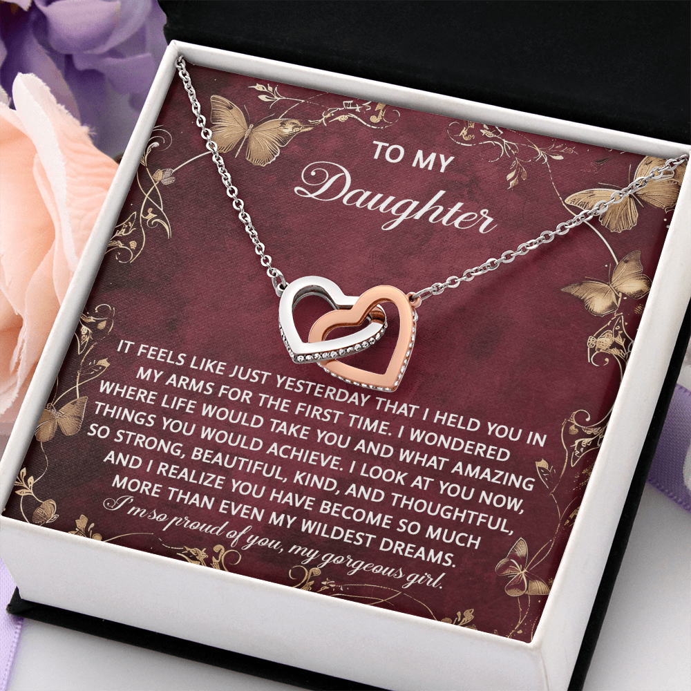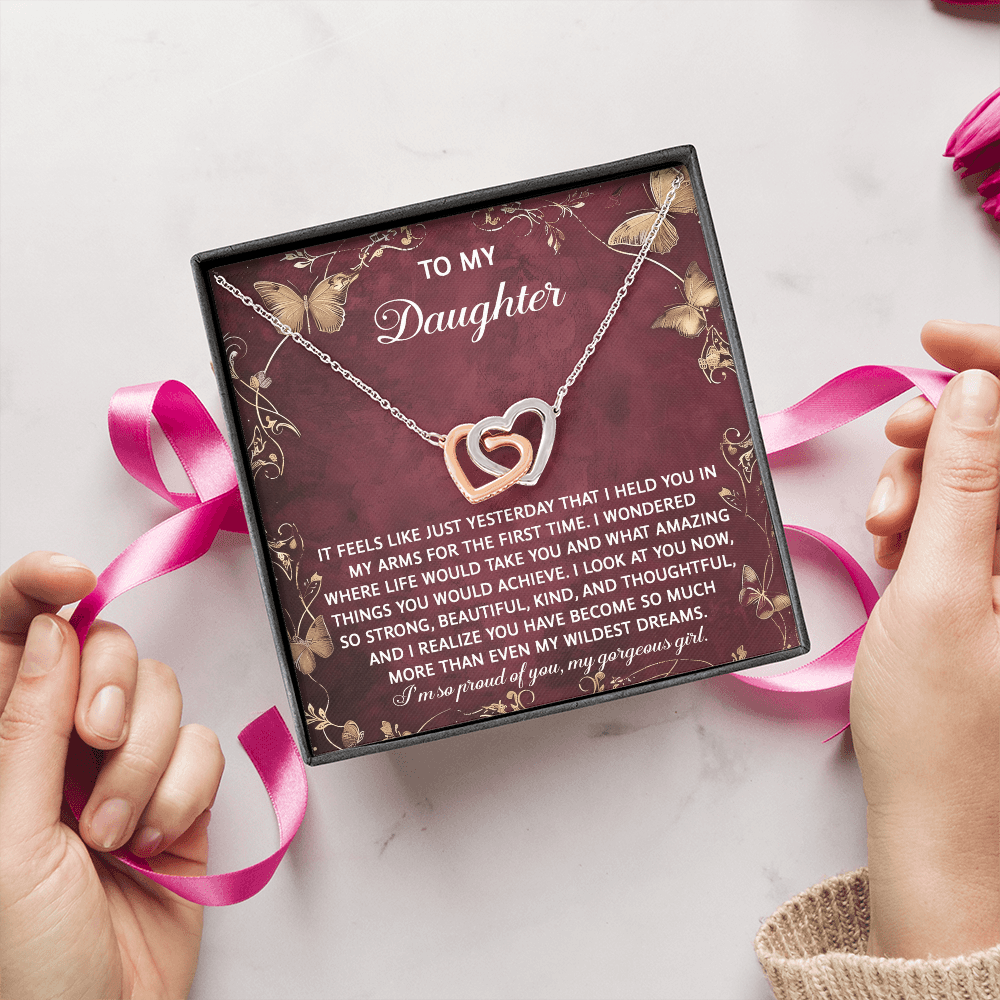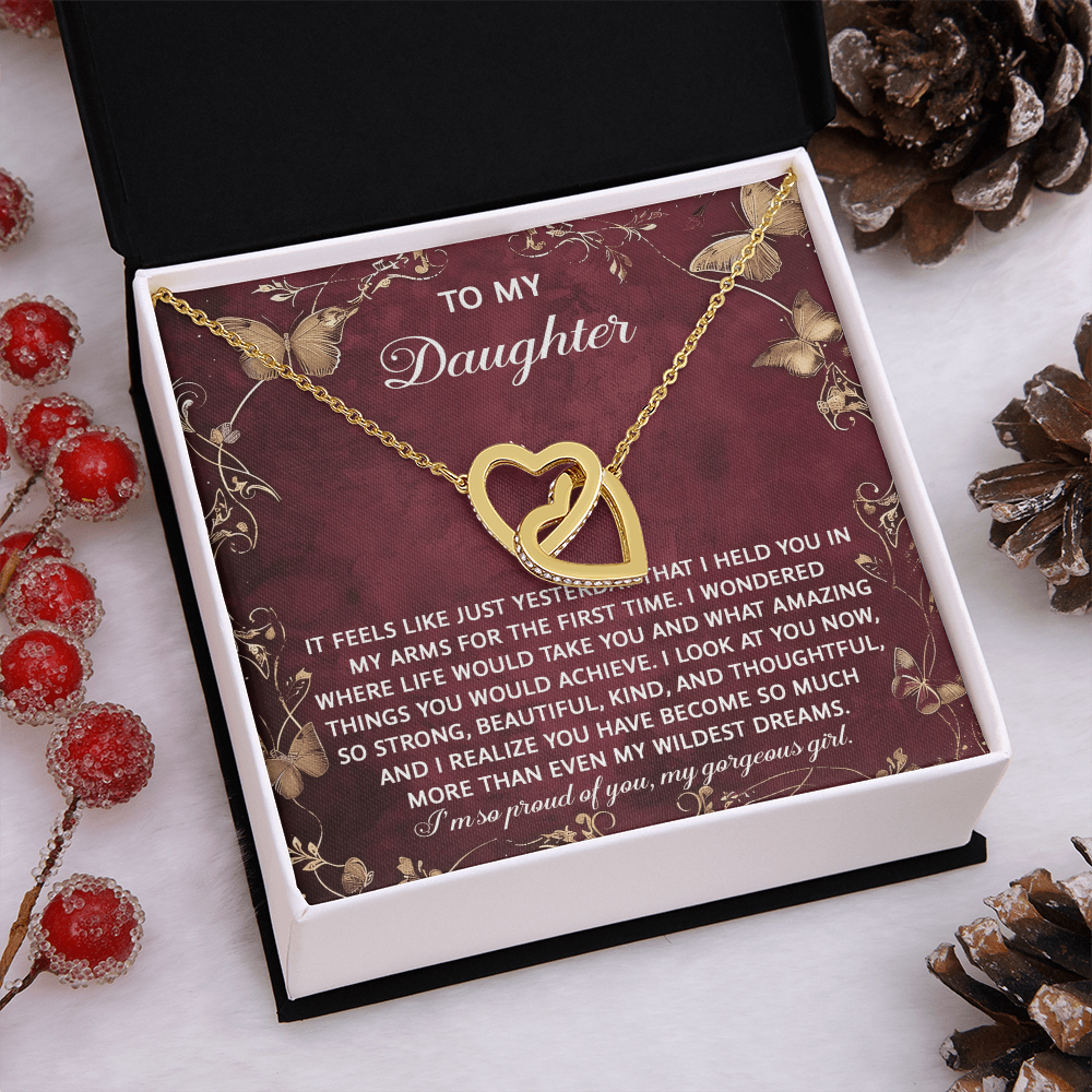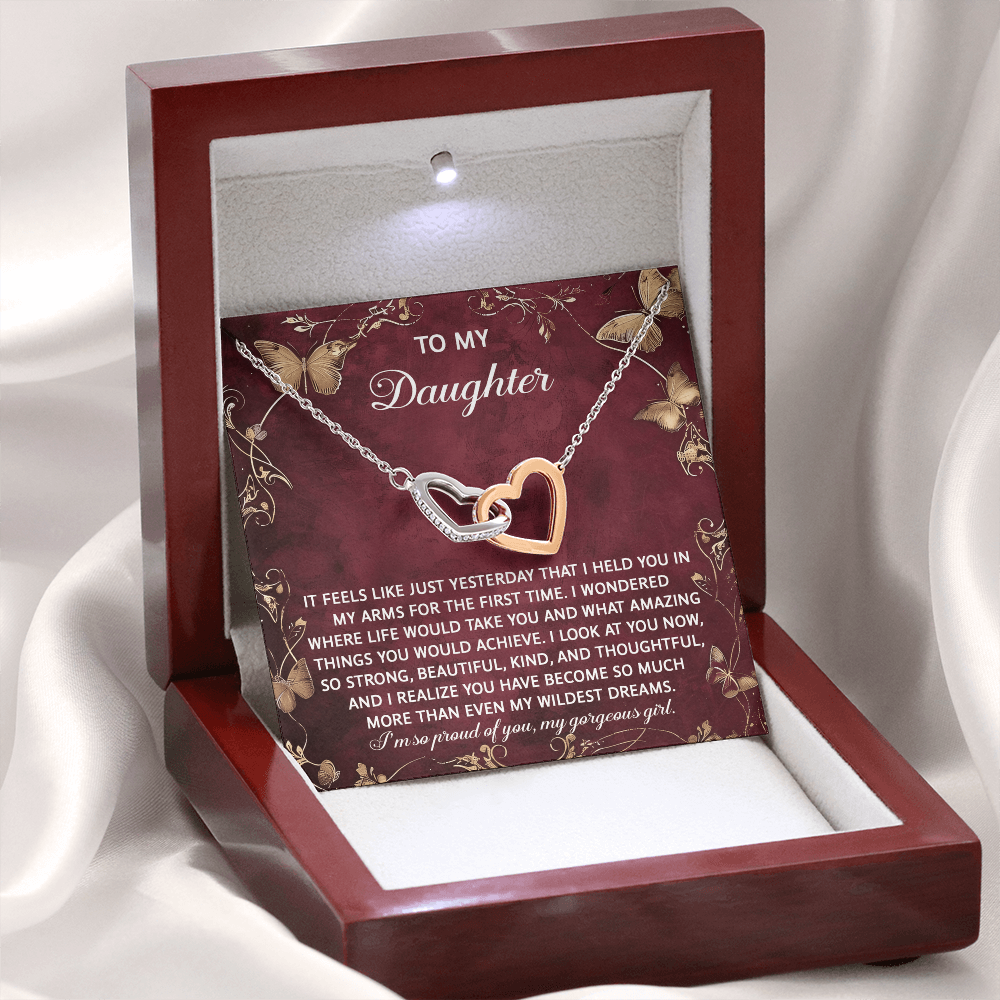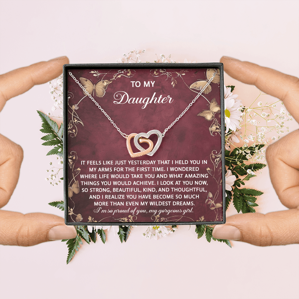 My Daughter - Feels Just Yesterday I Held You In My Arms - Look At You Now, So Strong, Beautiful, Kind & Thoughtful - Become So Much More Than Even My Wildest Dreams - So Proud Of You My Gorgeous Girl - Interlocking Hearts Necklace IH, DAU0000104IH