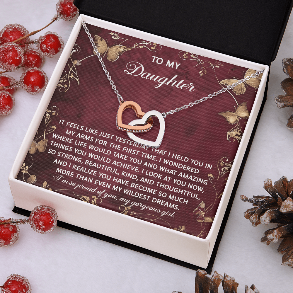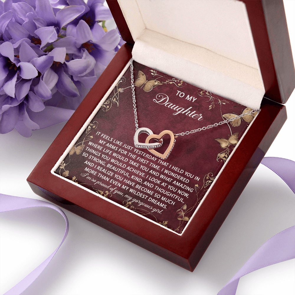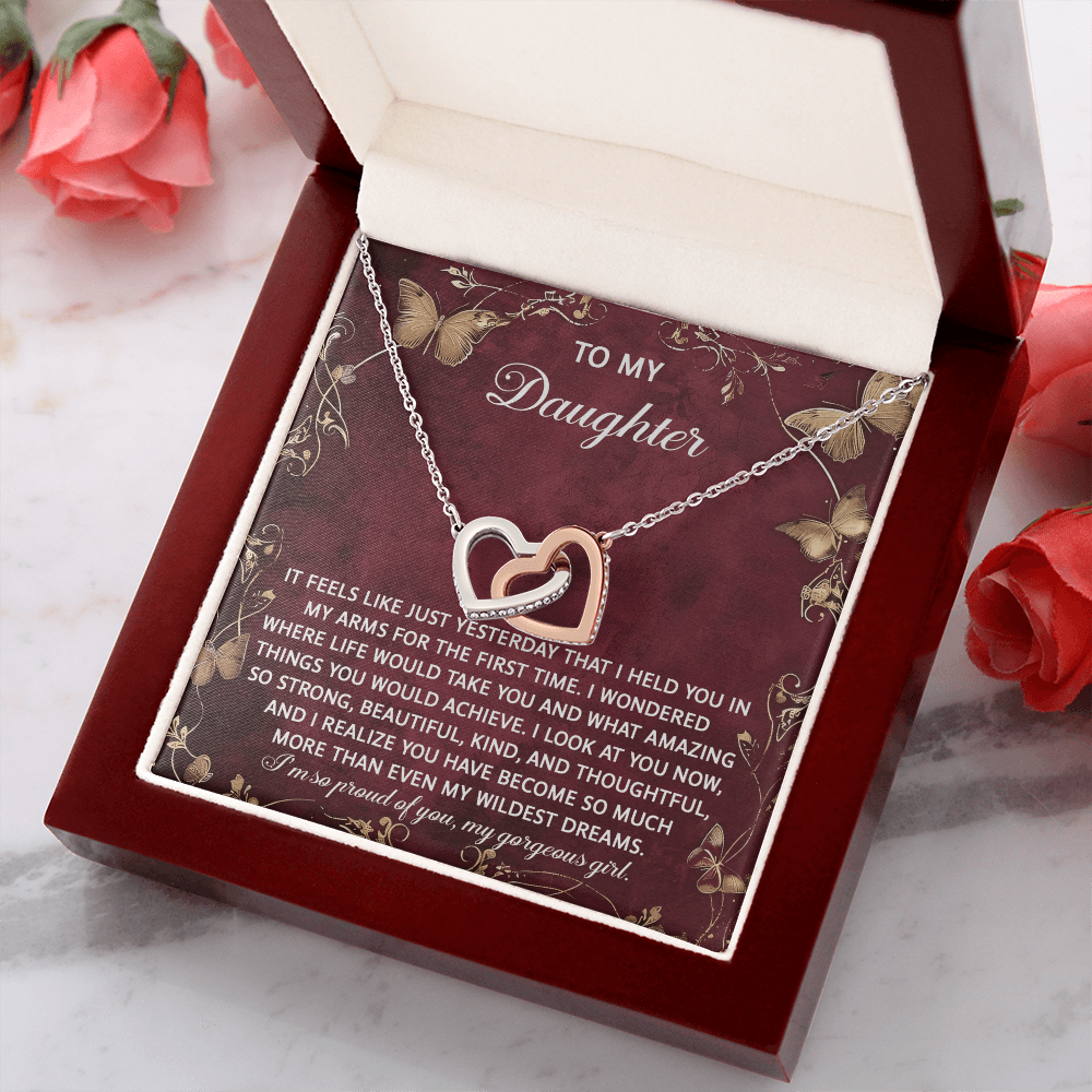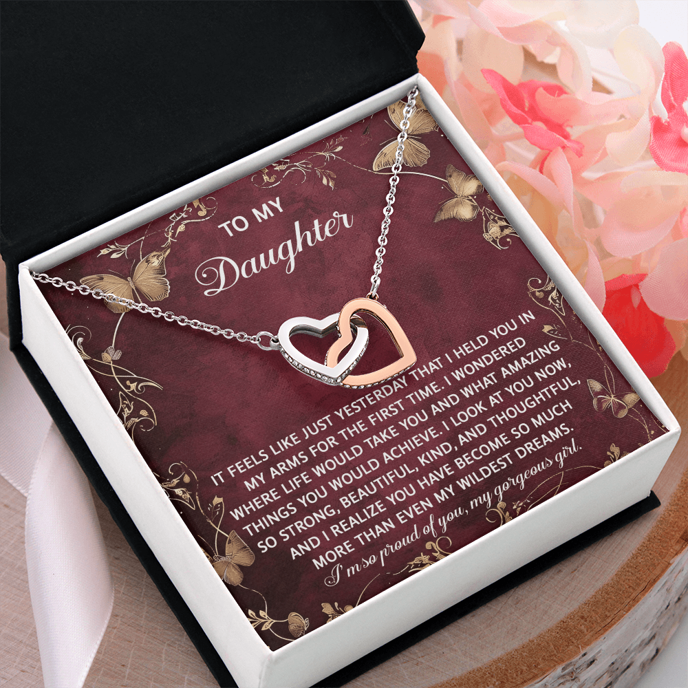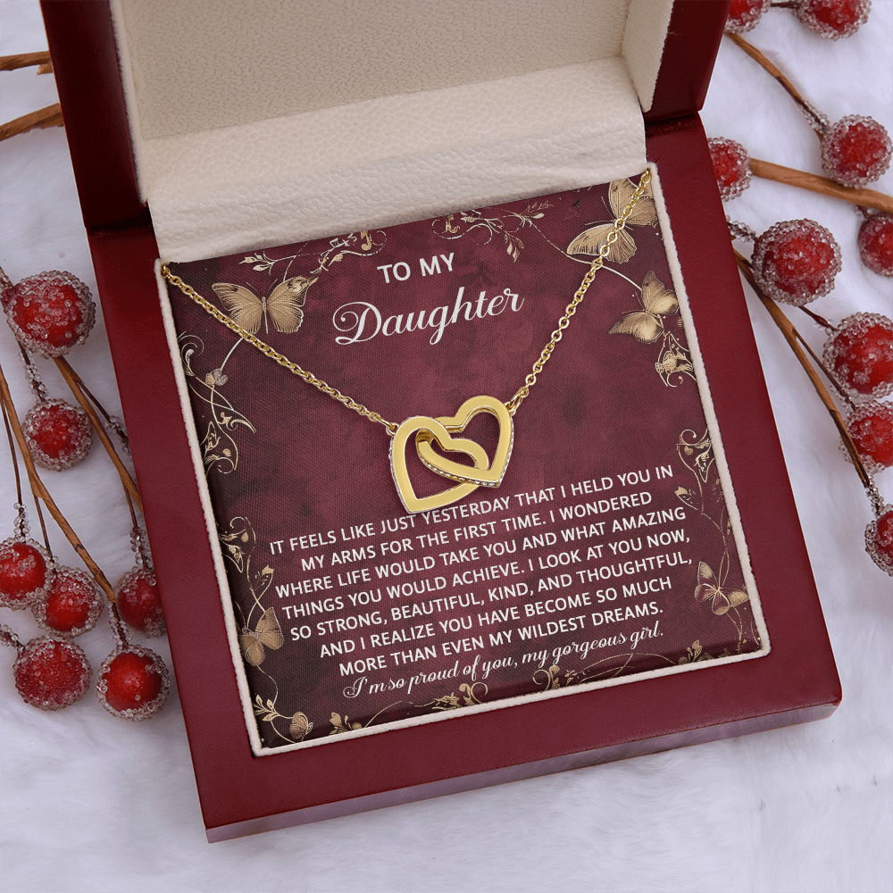 My Daughter - Feels Just Yesterday I Held You In My Arms - Look At You Now, So Strong, Beautiful, Kind & Thoughtful - Become So Much More Than Even My Wildest Dreams - So Proud Of You My Gorgeous Girl - Interlocking Hearts Necklace IH, DAU0000104IH
