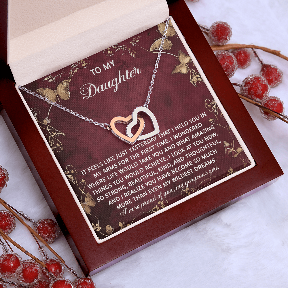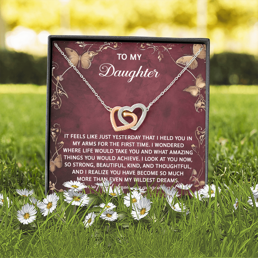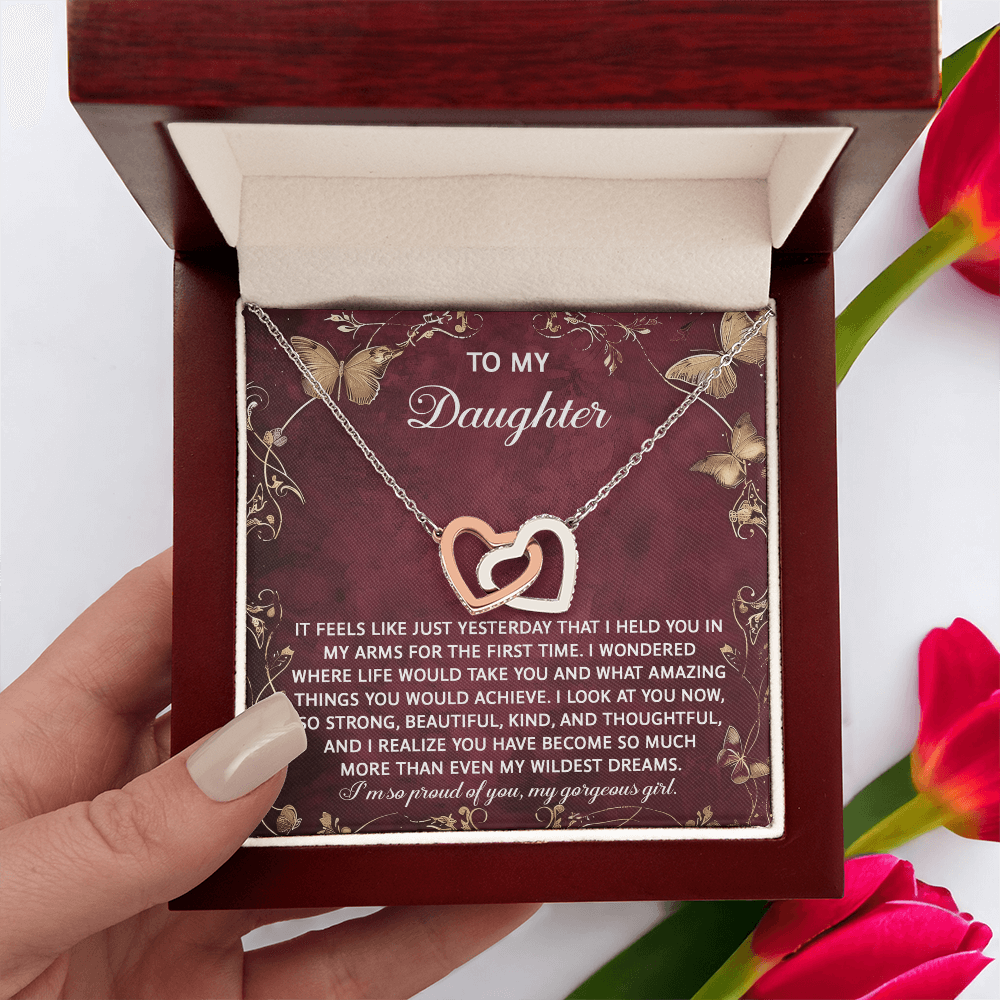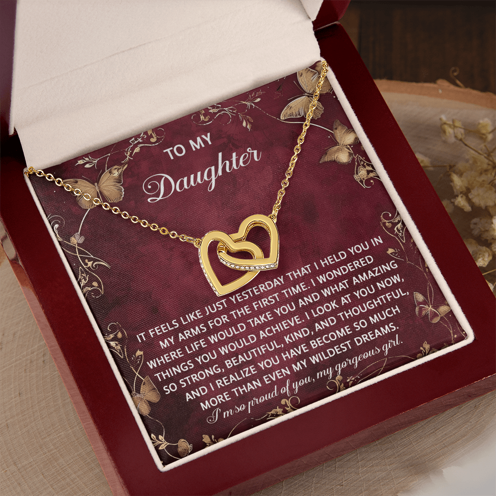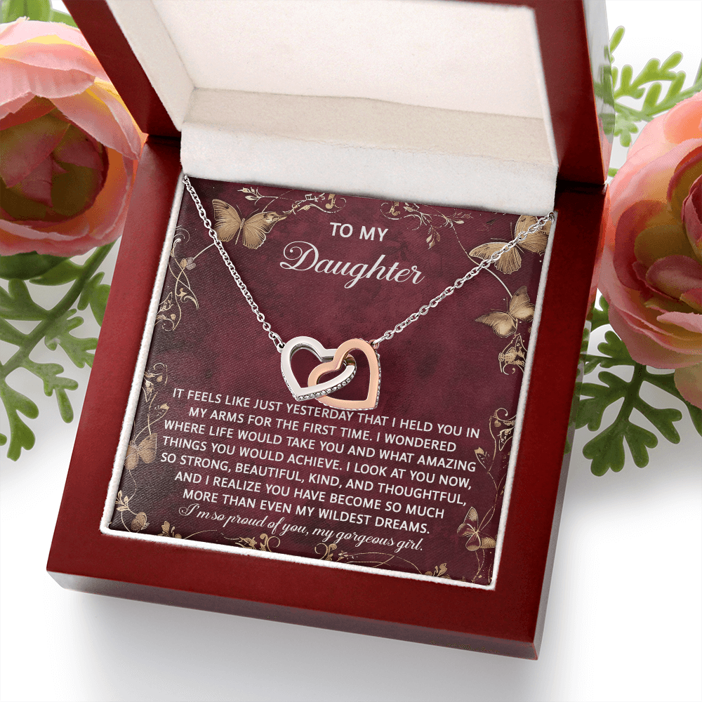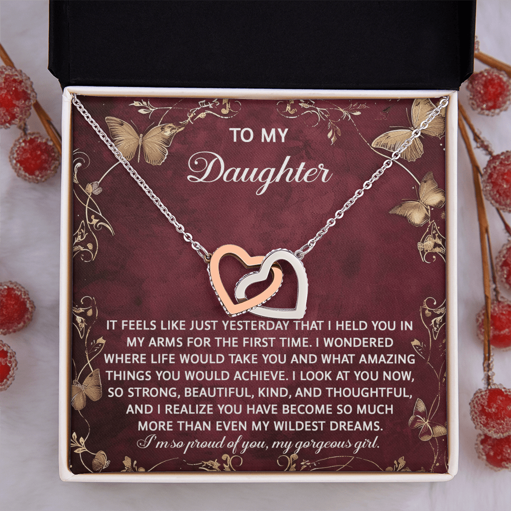 My Daughter - Feels Just Yesterday I Held You In My Arms - Look At You Now, So Strong, Beautiful, Kind & Thoughtful - Become So Much More Than Even My Wildest Dreams - So Proud Of You My Gorgeous Girl - Interlocking Hearts Necklace IH, DAU0000104IH