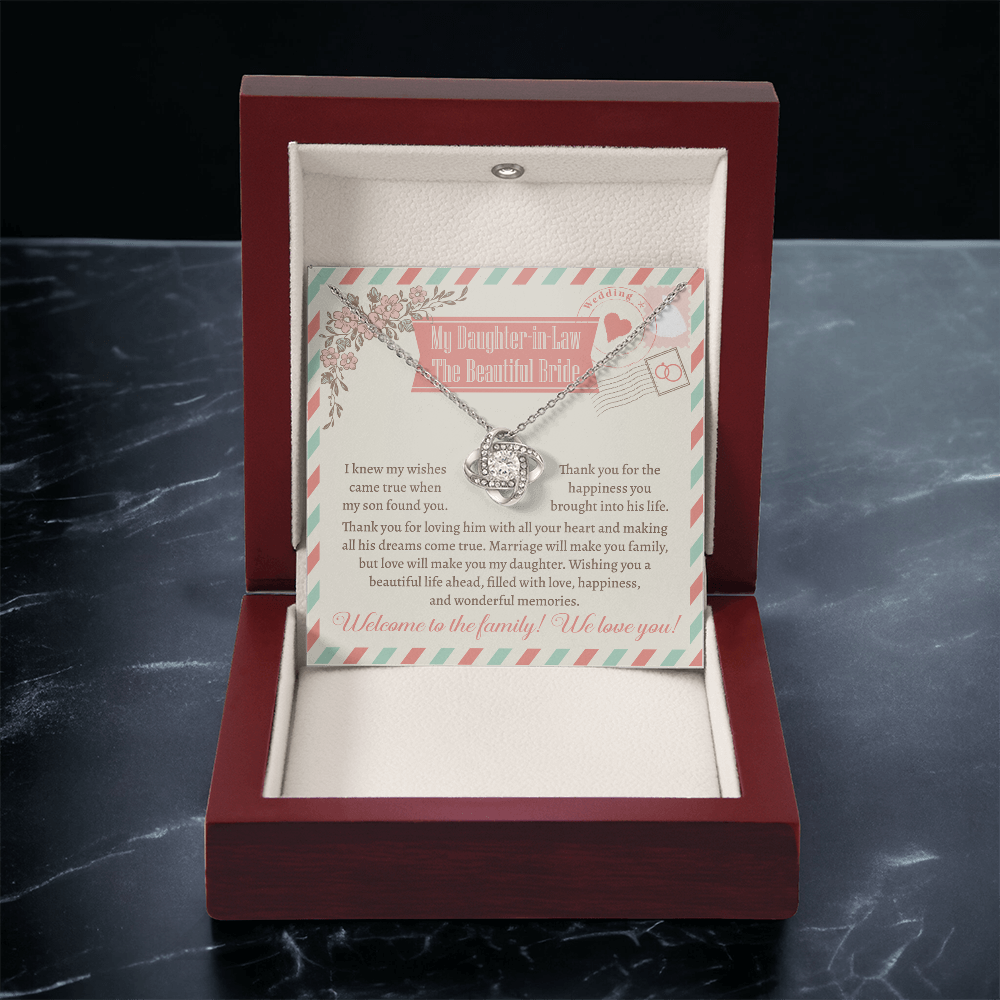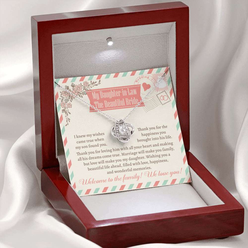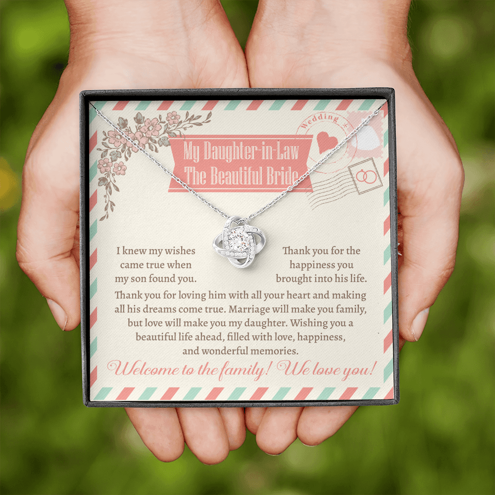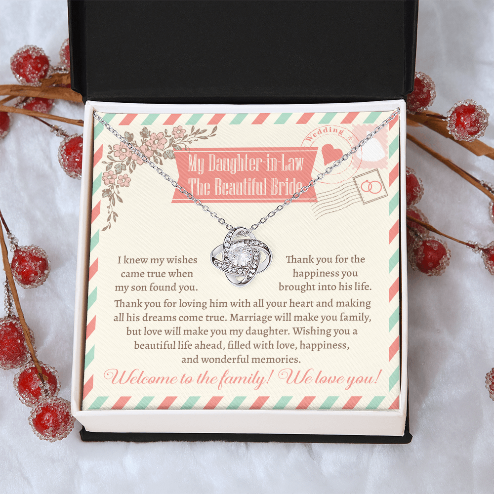 My Daughter-In-Law - The Beautiful Bride - Knew My Wishes Came True When My Son Found You - Marriage Will Make You Family, But Love Will Make You My Daughter - Welcome To The Family, We Love You - Love Knot Necklace LN, WED0000032LN