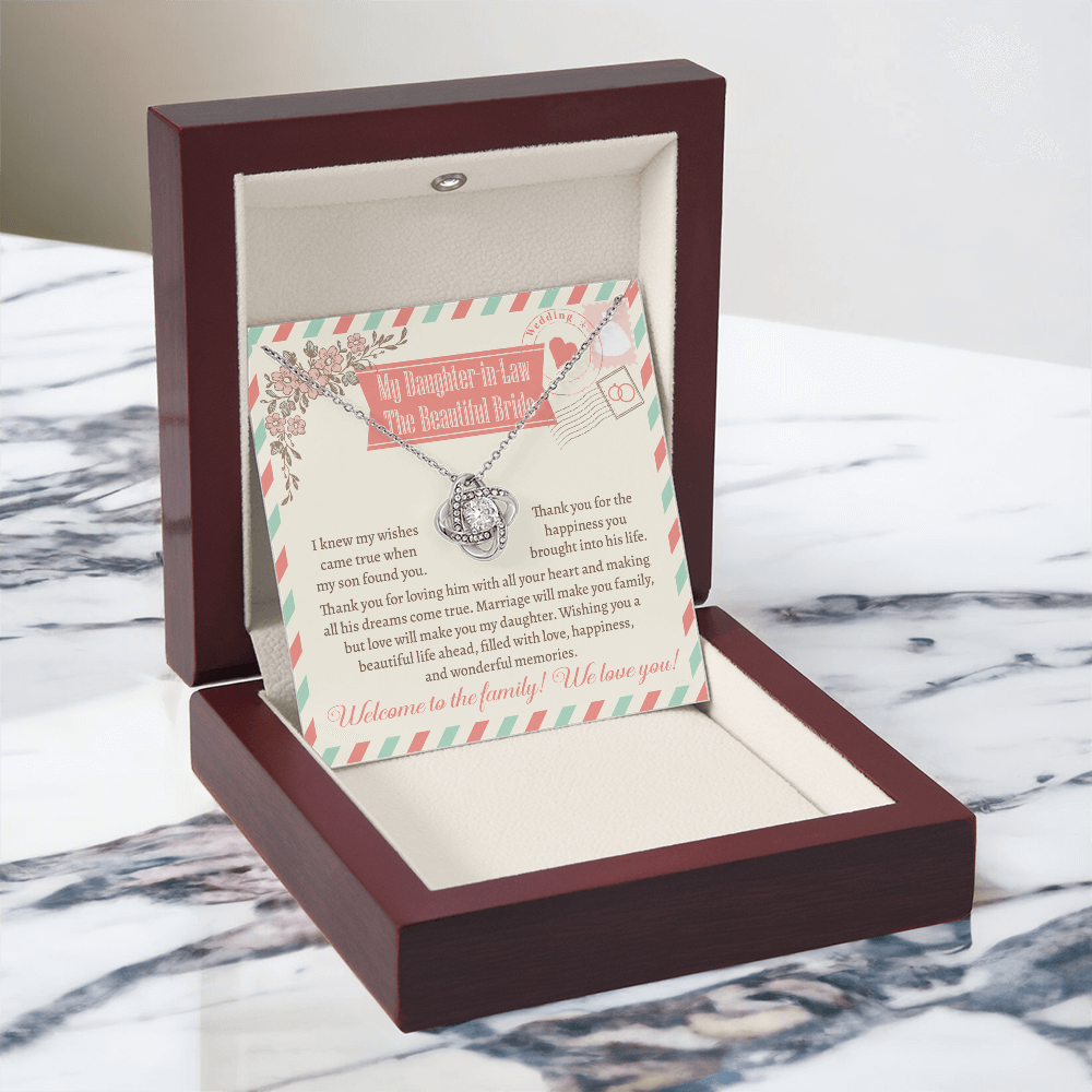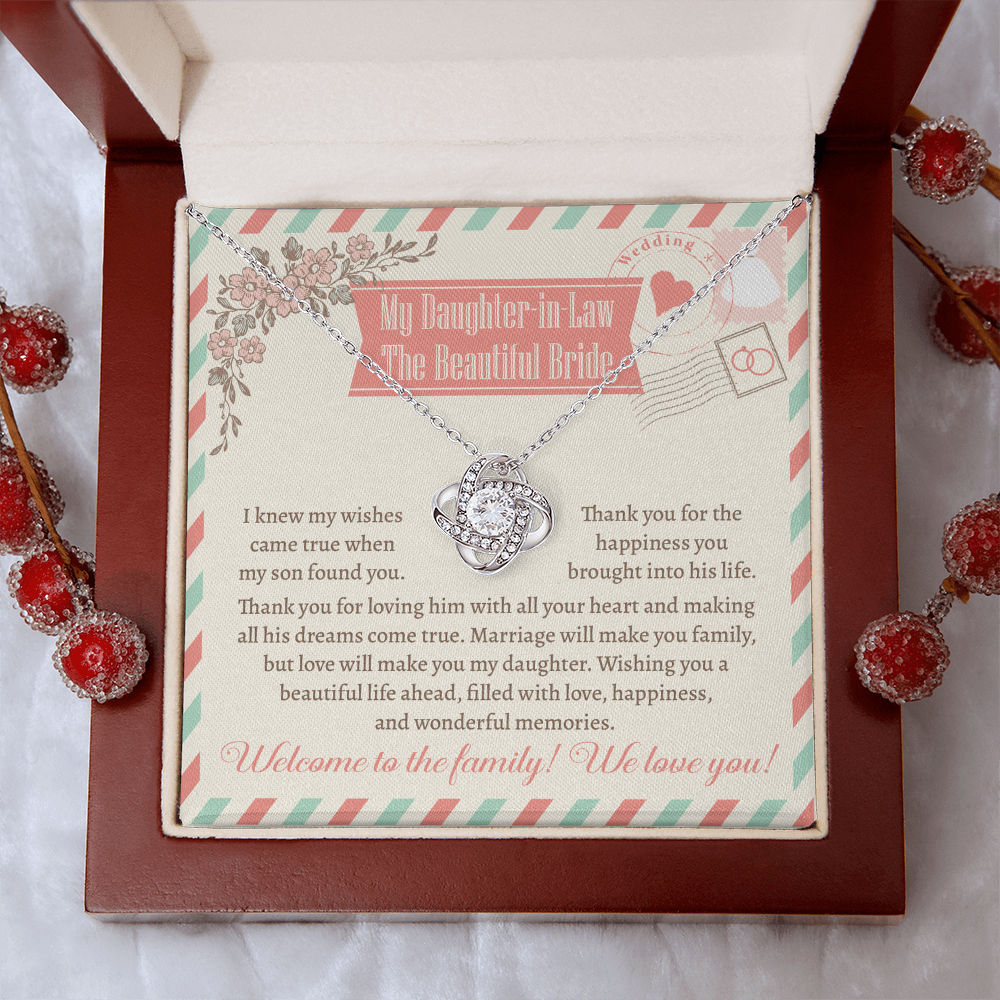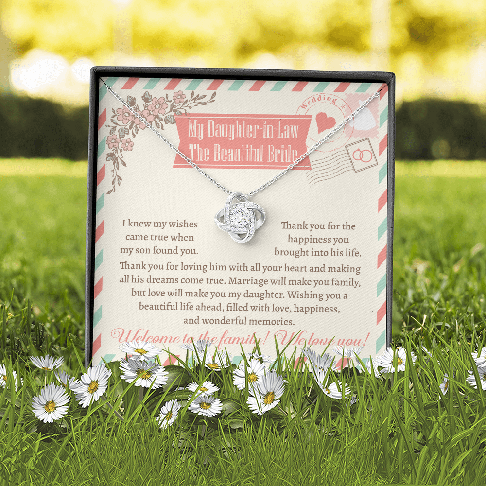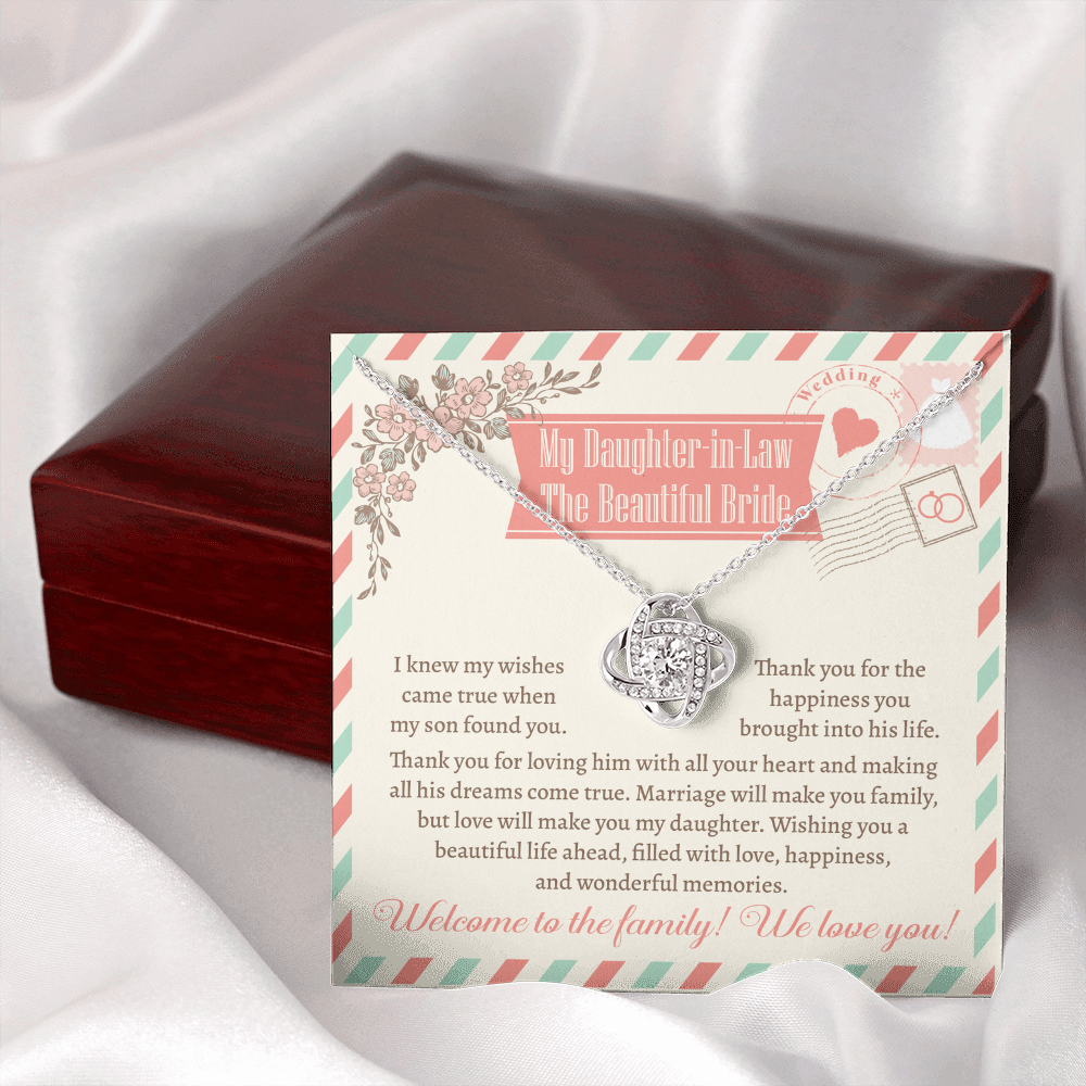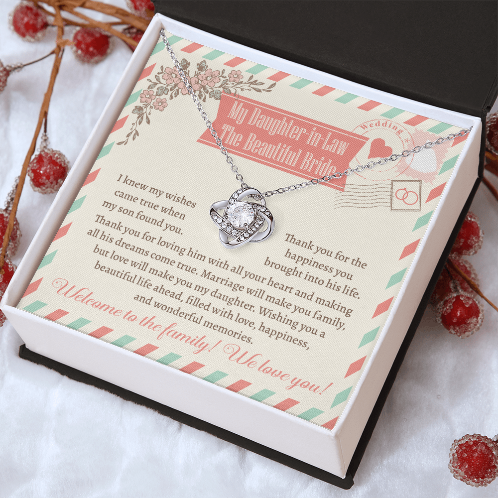 My Daughter-In-Law - The Beautiful Bride - Knew My Wishes Came True When My Son Found You - Marriage Will Make You Family, But Love Will Make You My Daughter - Welcome To The Family, We Love You - Love Knot Necklace LN, WED0000032LN