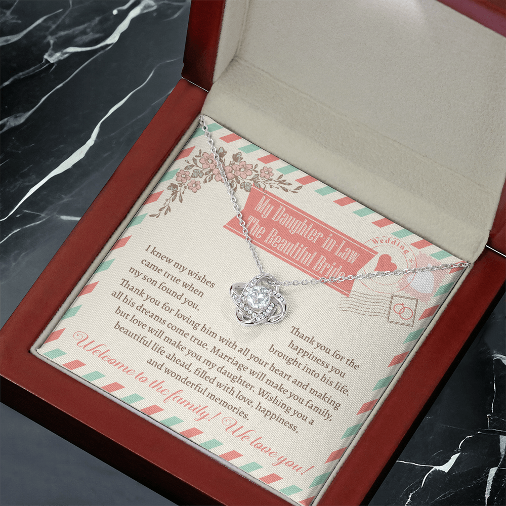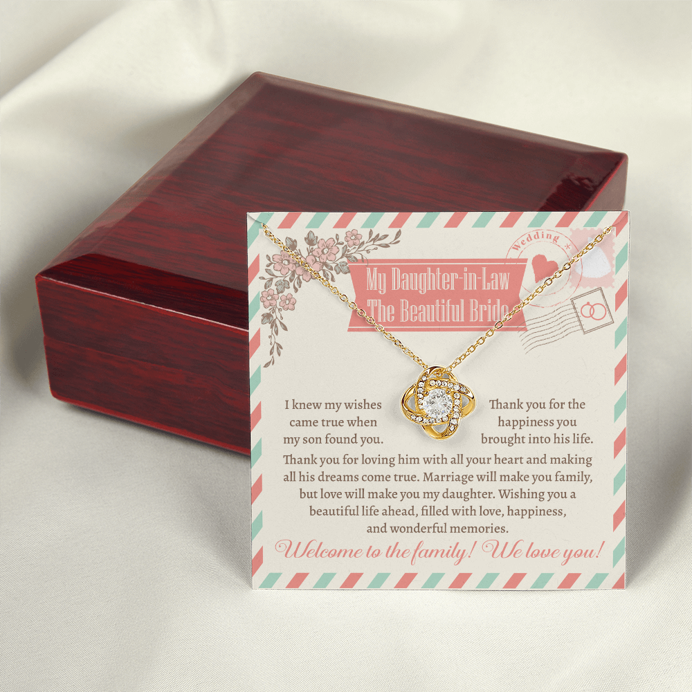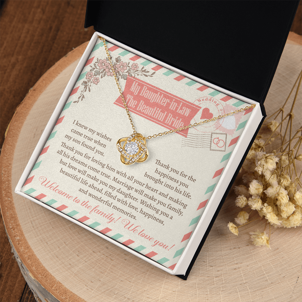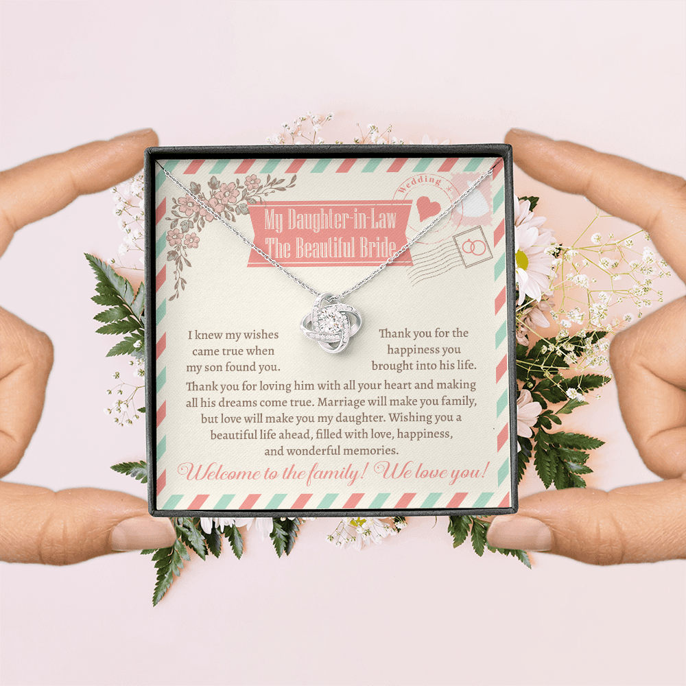 My Daughter-In-Law - The Beautiful Bride - Knew My Wishes Came True When My Son Found You - Marriage Will Make You Family, But Love Will Make You My Daughter - Welcome To The Family, We Love You - Love Knot Necklace LN, WED0000032LN