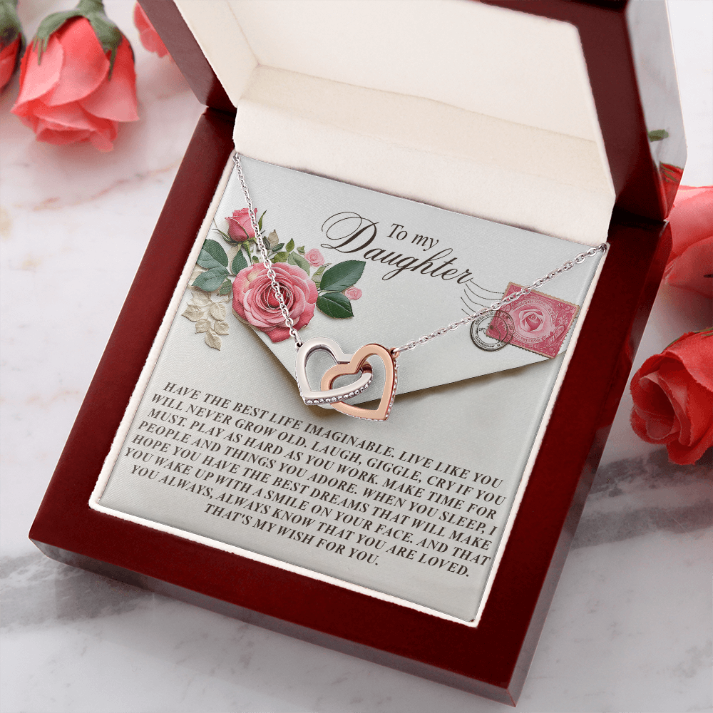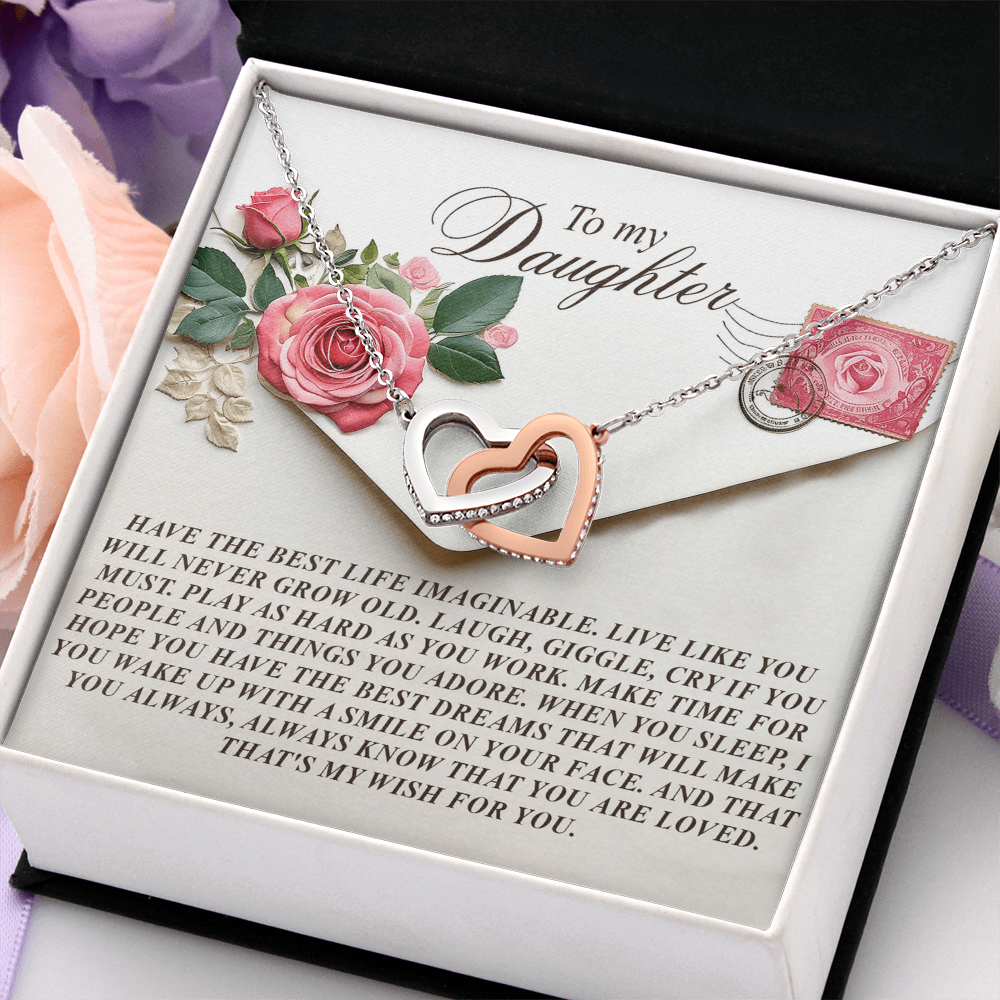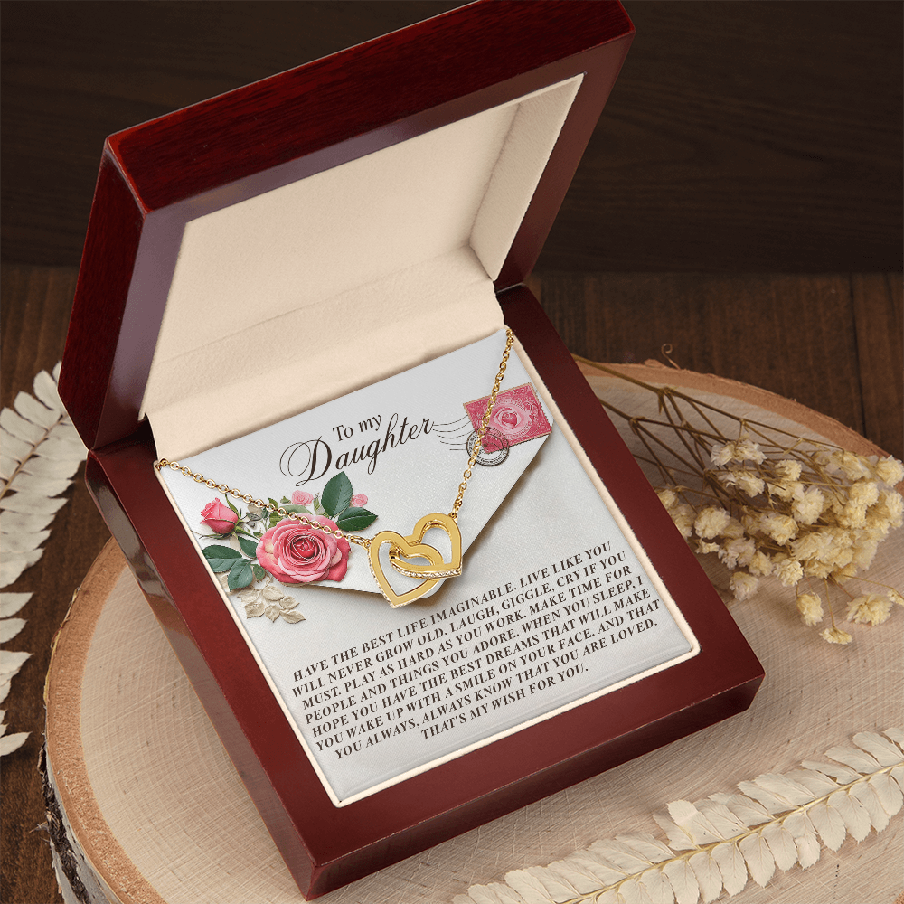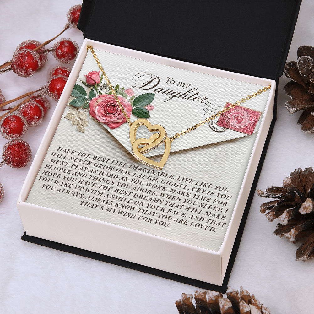My Daughter - Live Like You Will Never Get Old - Laugh, Giggle & Cry If You Must - Play As Hard As You Work - Make Time For People & Things You Adore - Always Know That You Are Loved - Interlocking Hearts Necklace IH, DAU0000127IH