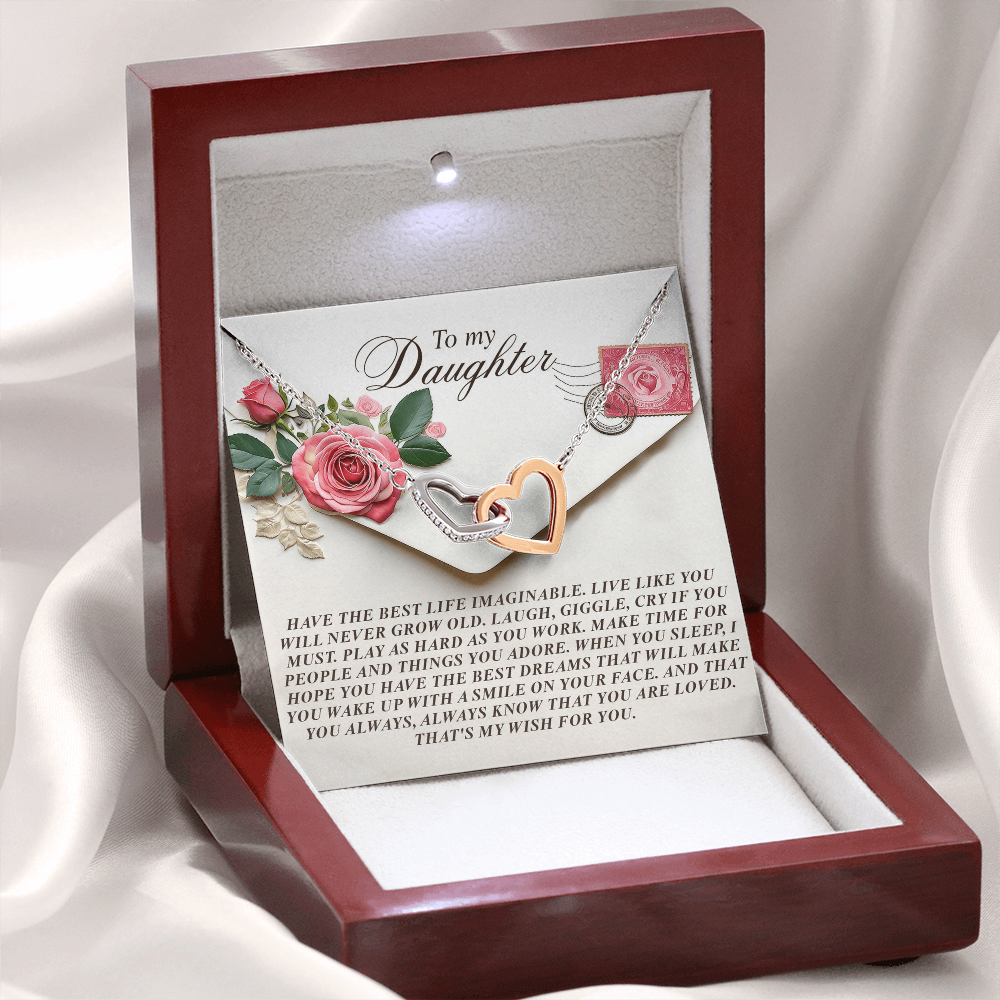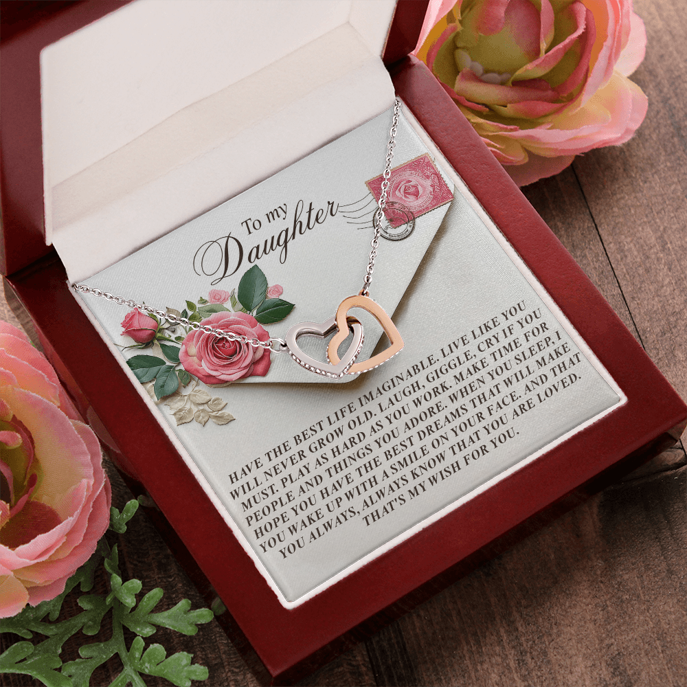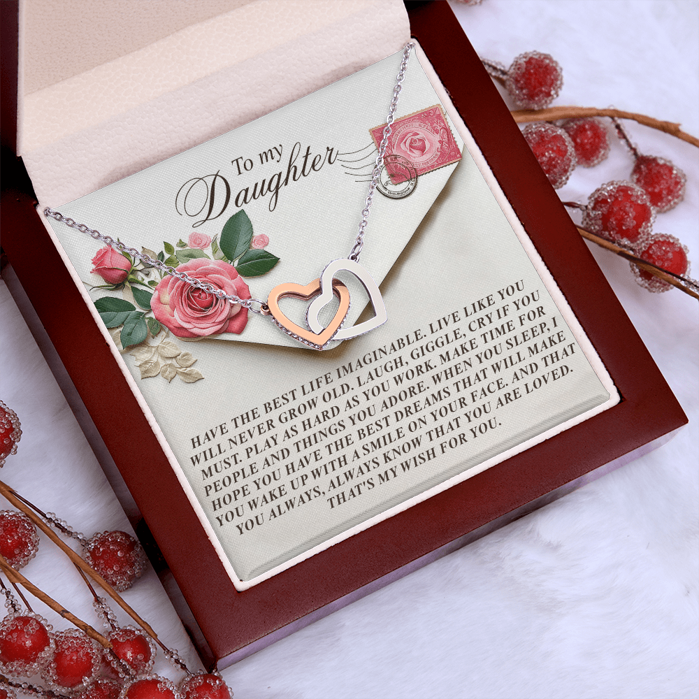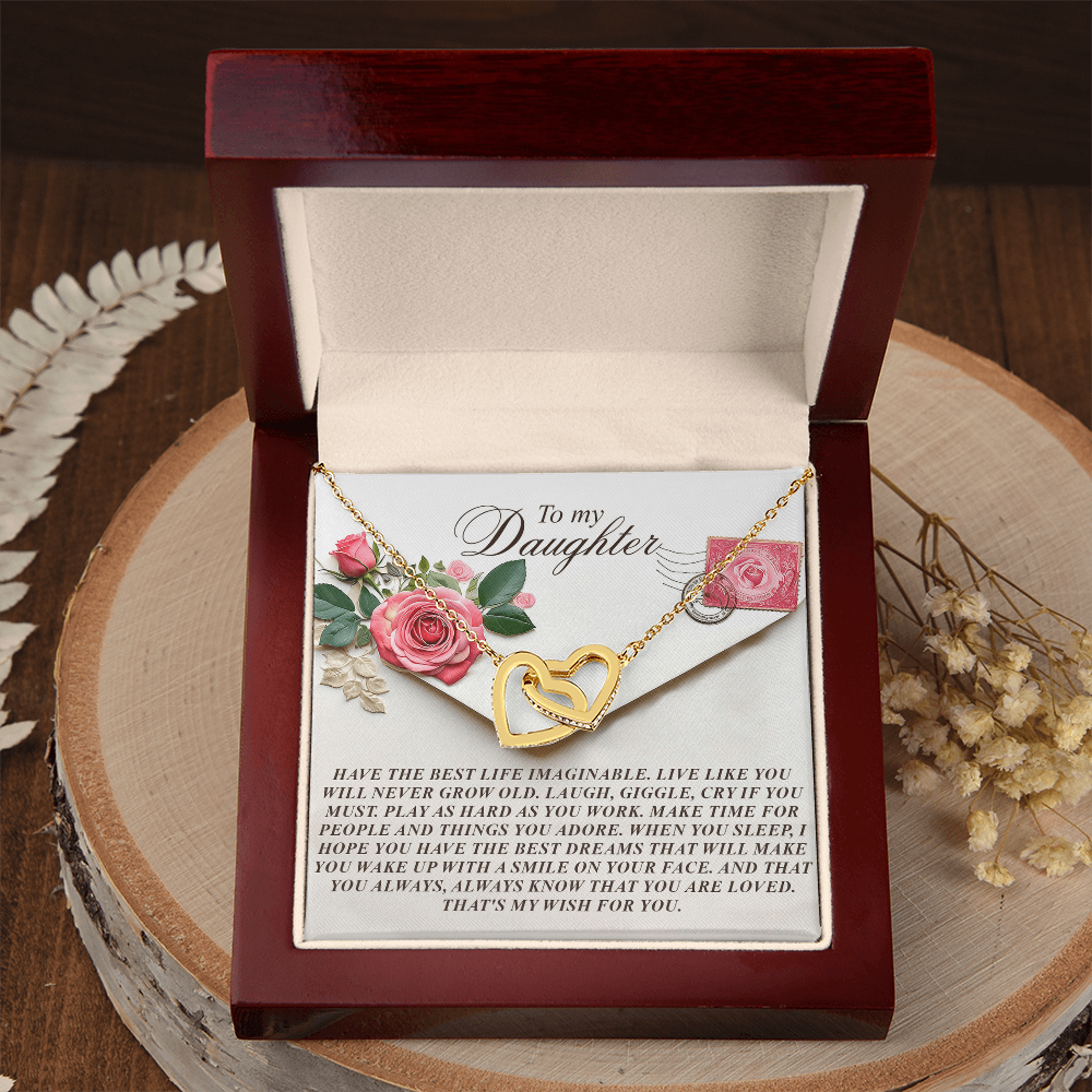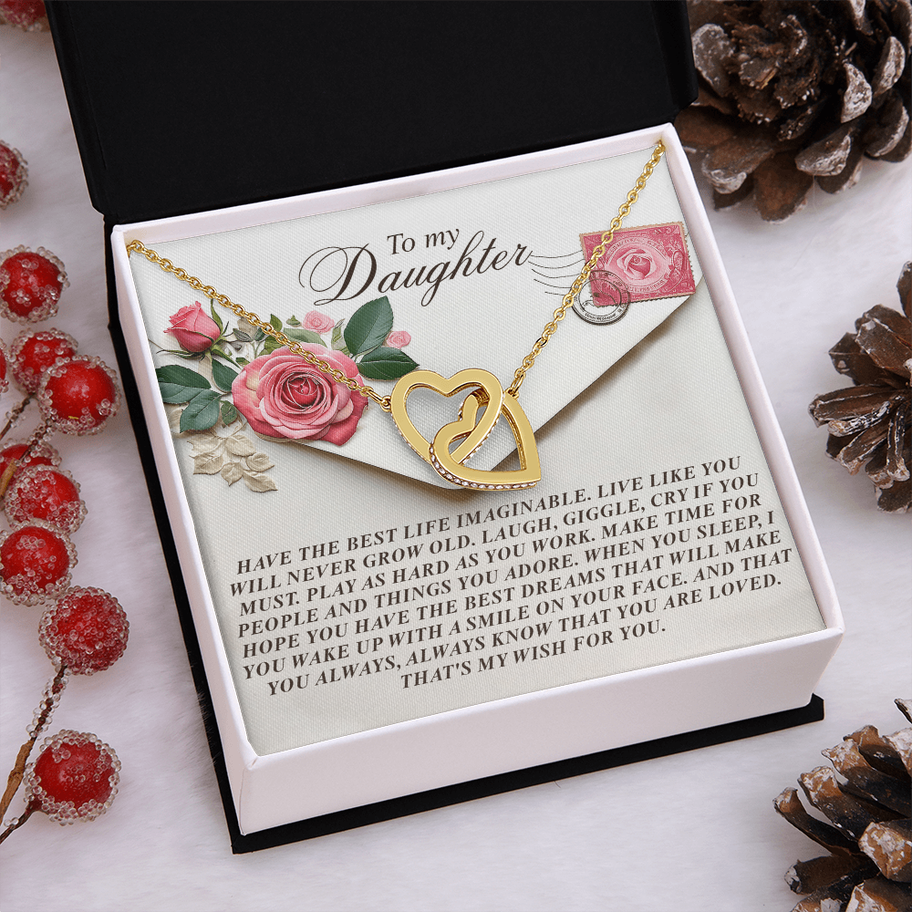 My Daughter - Live Like You Will Never Get Old - Laugh, Giggle & Cry If You Must - Play As Hard As You Work - Make Time For People & Things You Adore - Always Know That You Are Loved - Interlocking Hearts Necklace IH, DAU0000127IH