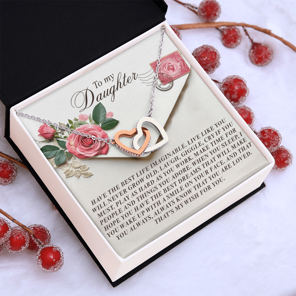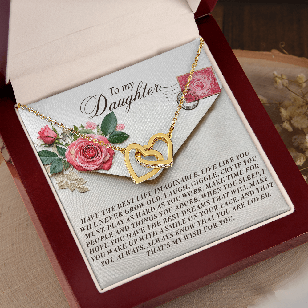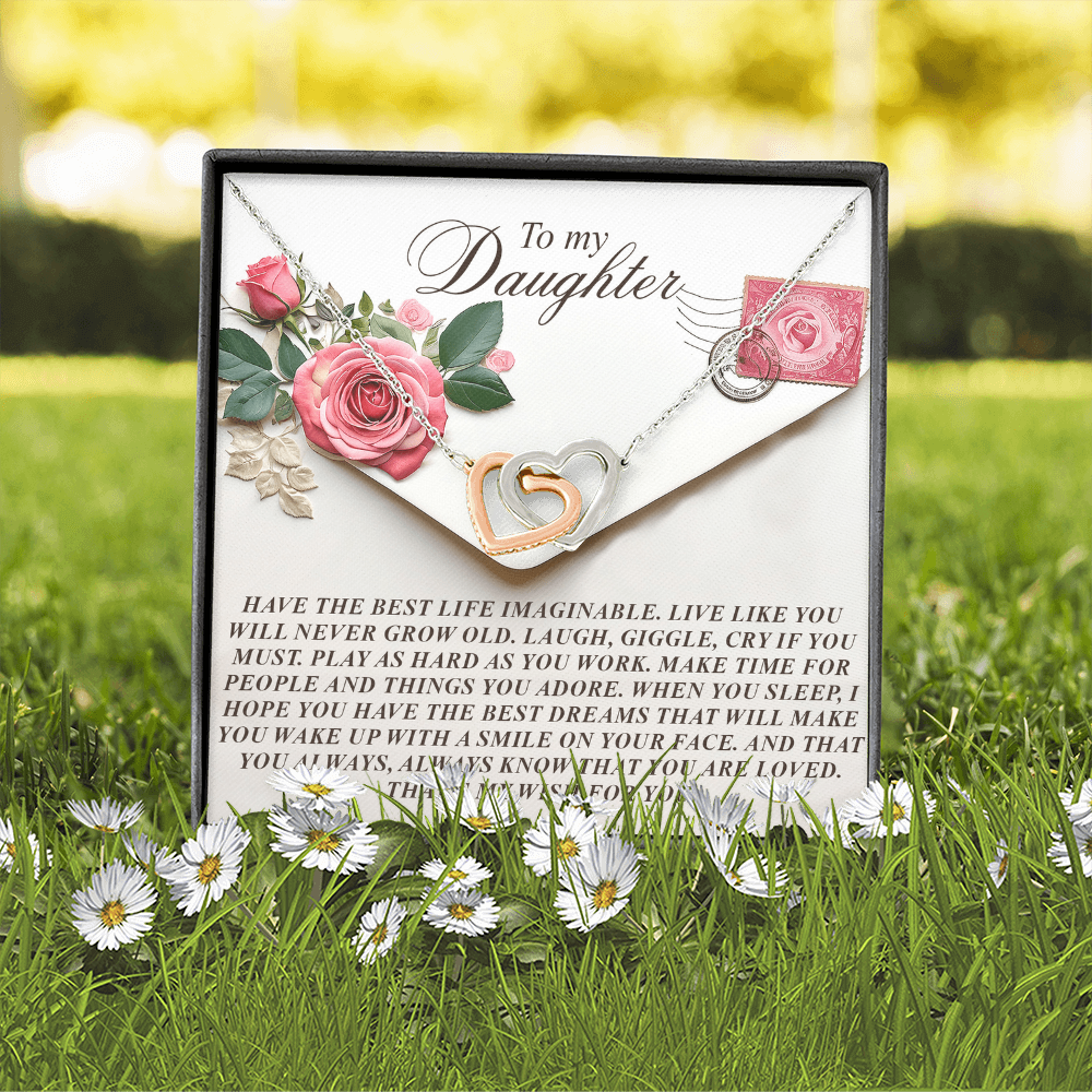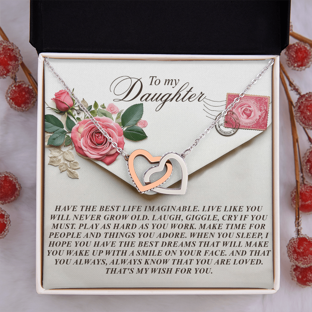My Daughter - Live Like You Will Never Get Old - Laugh, Giggle & Cry If You Must - Play As Hard As You Work - Make Time For People & Things You Adore - Always Know That You Are Loved - Interlocking Hearts Necklace IH, DAU0000127IH