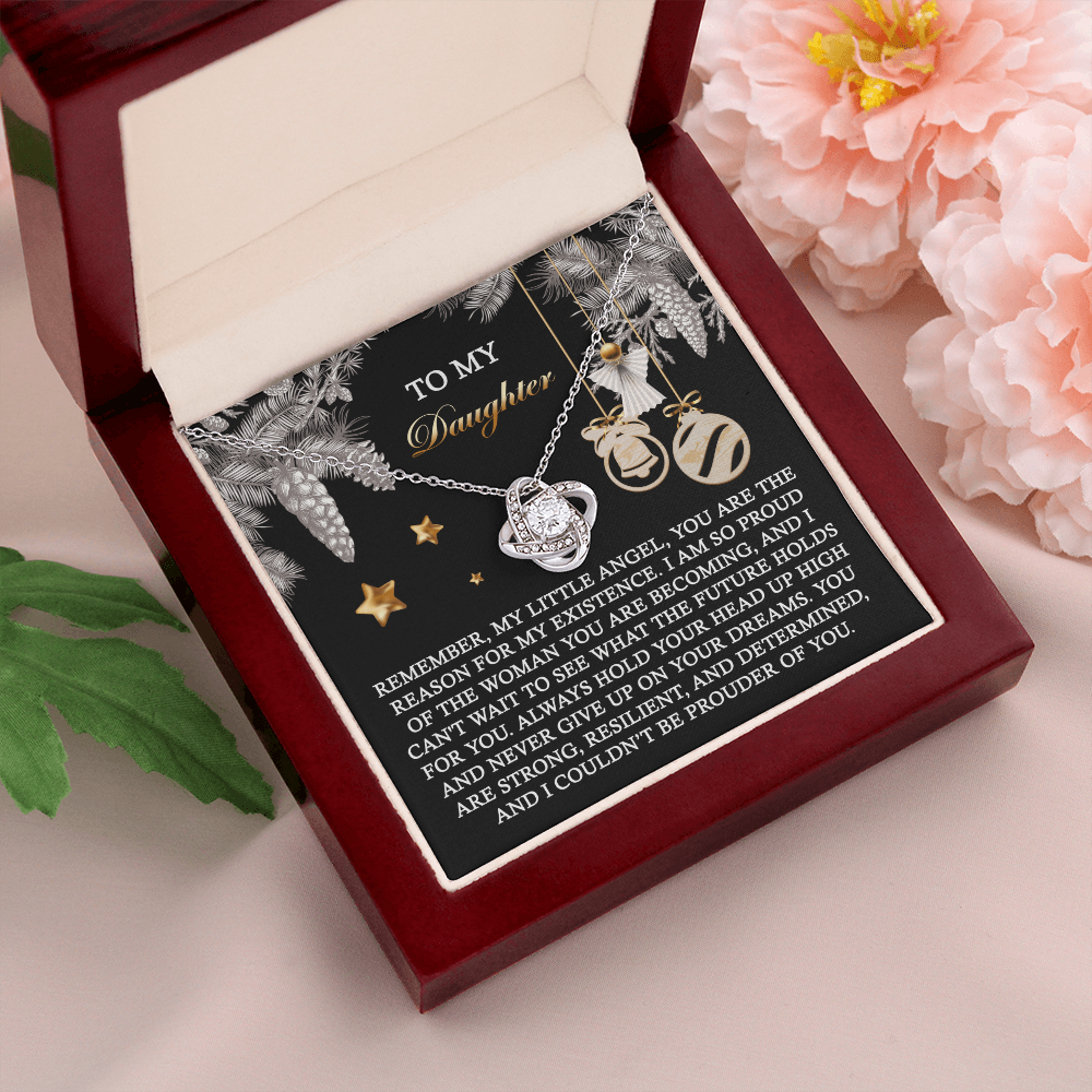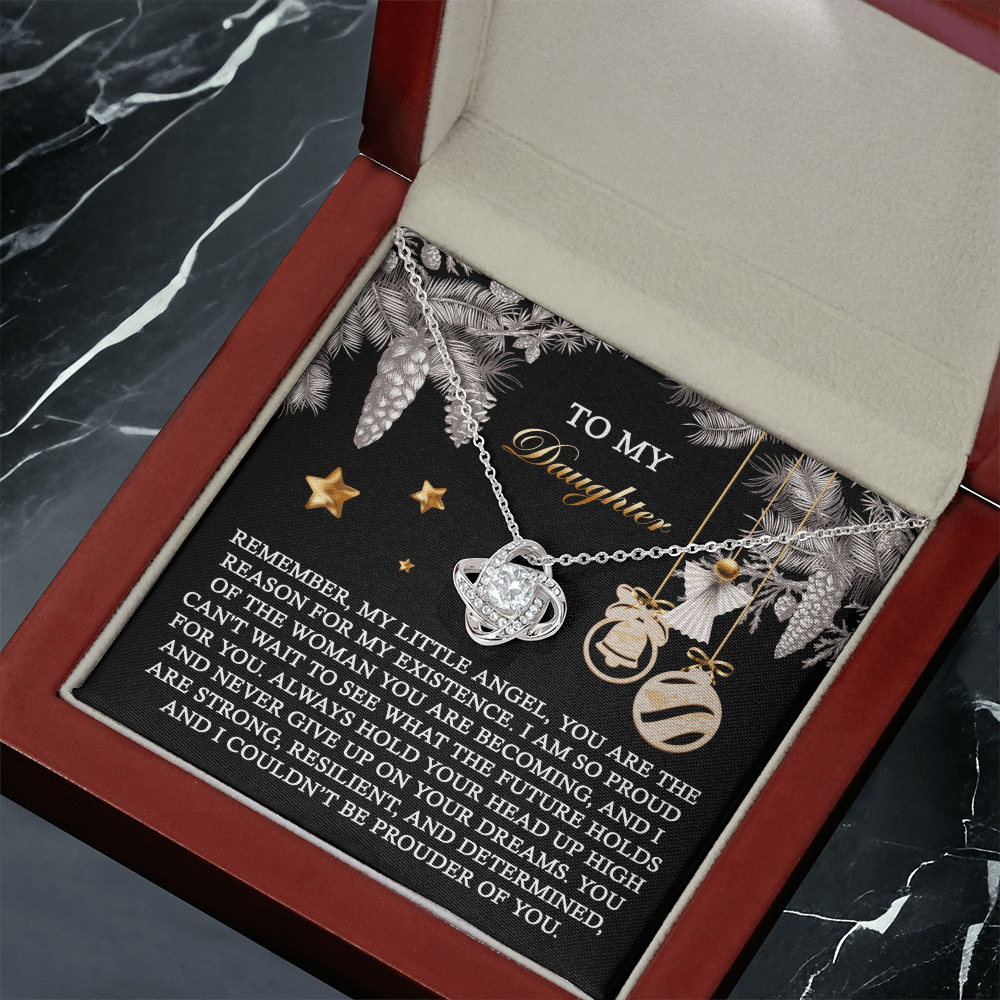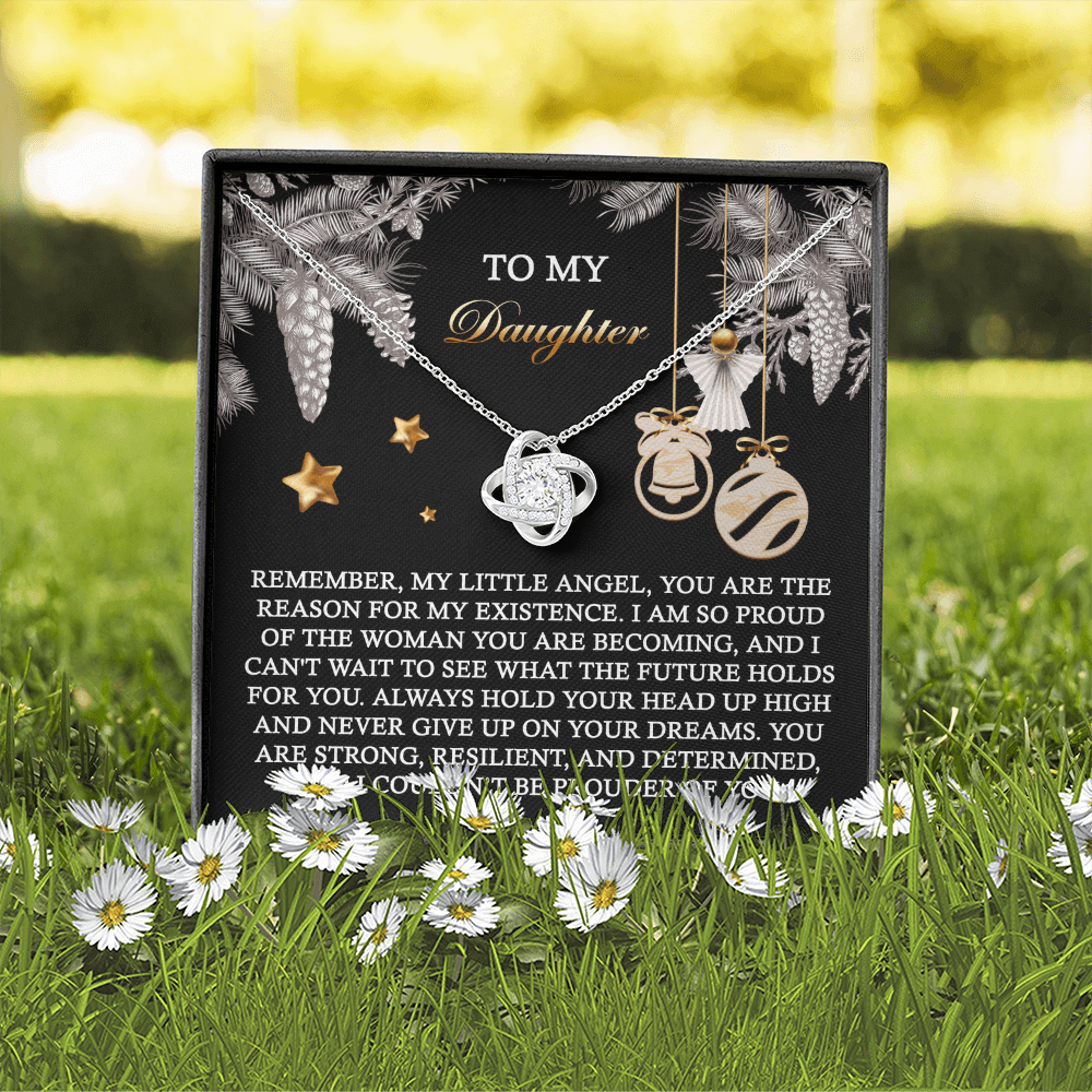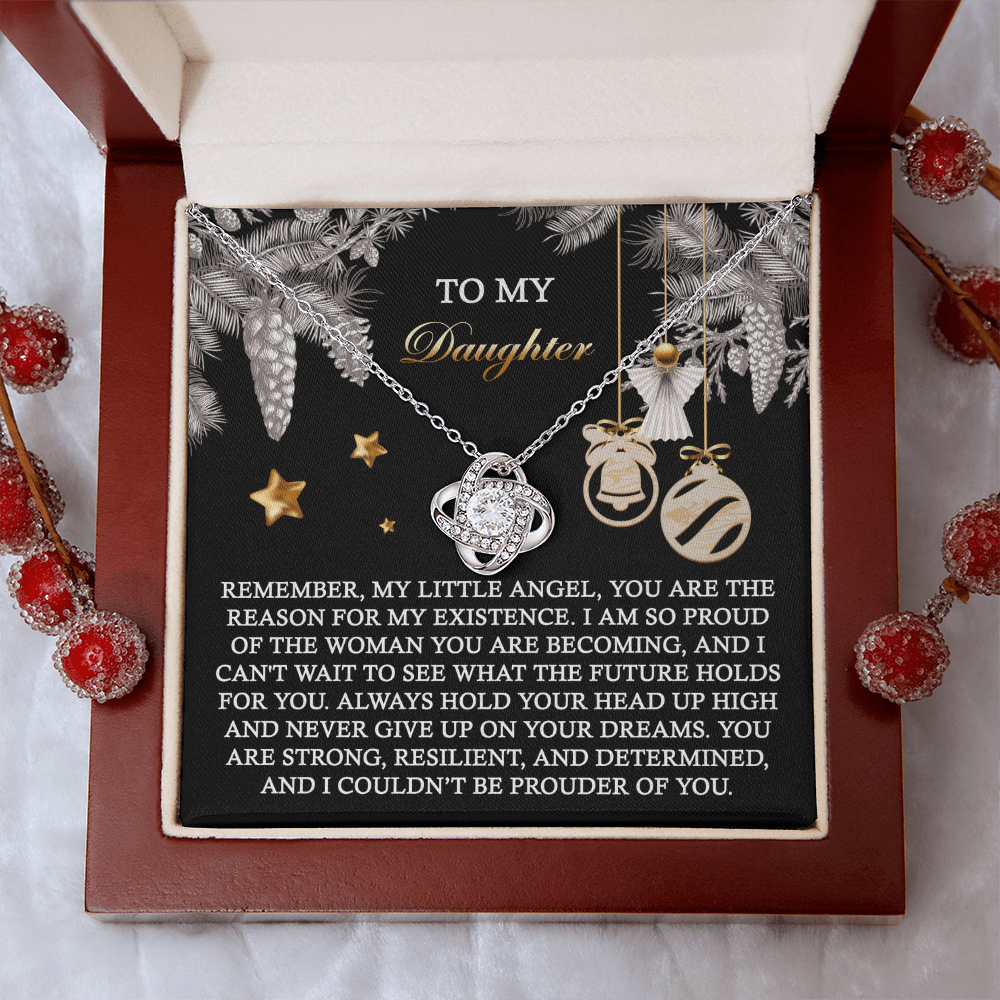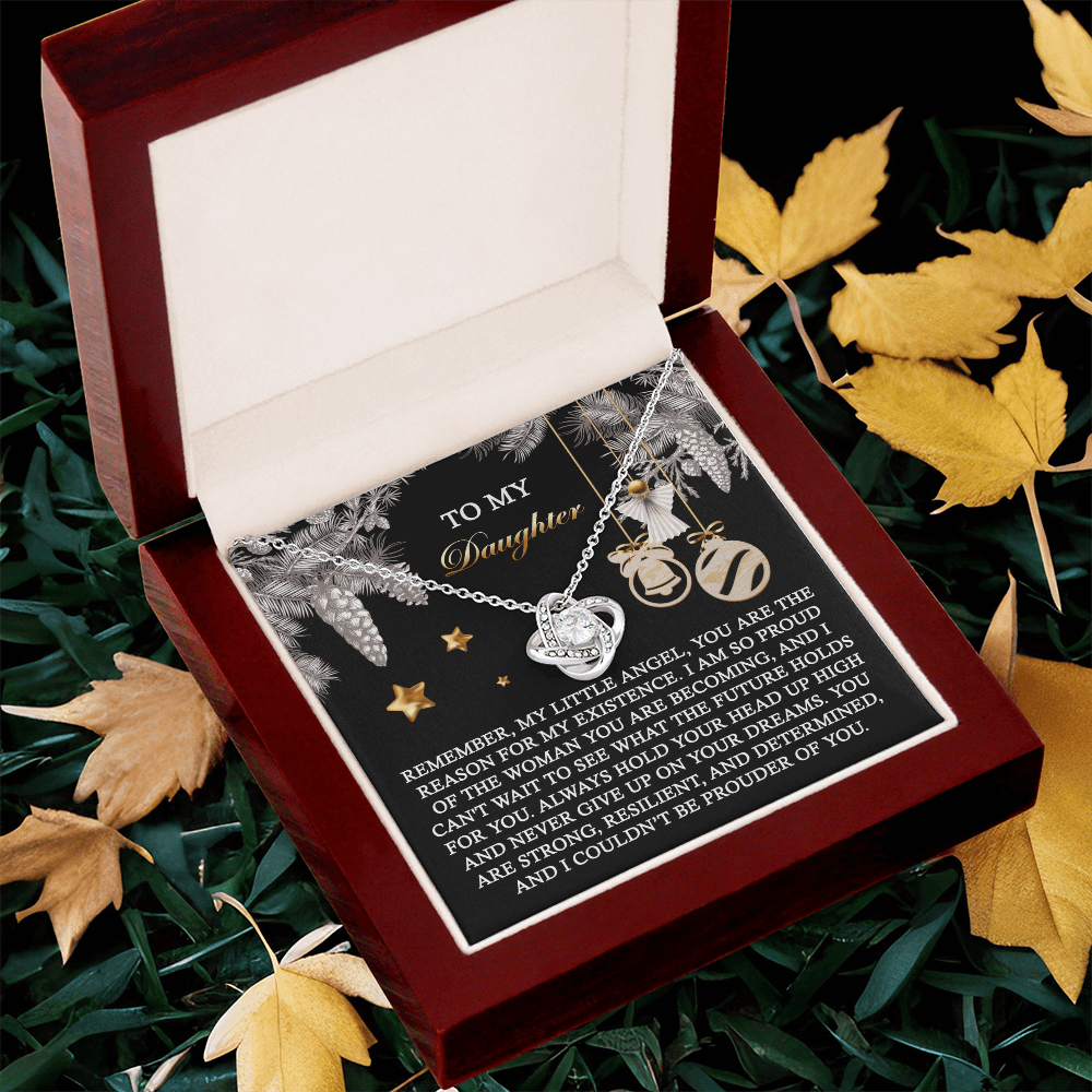 My Daughter - My Little Angel, The Reason For My Existence - So Proud Of The Woman You Are Becoming - Never Give Up On Your Dreams - Strong, Resilient & Determined - Love Knot Necklace LN, DAU0000200LN
