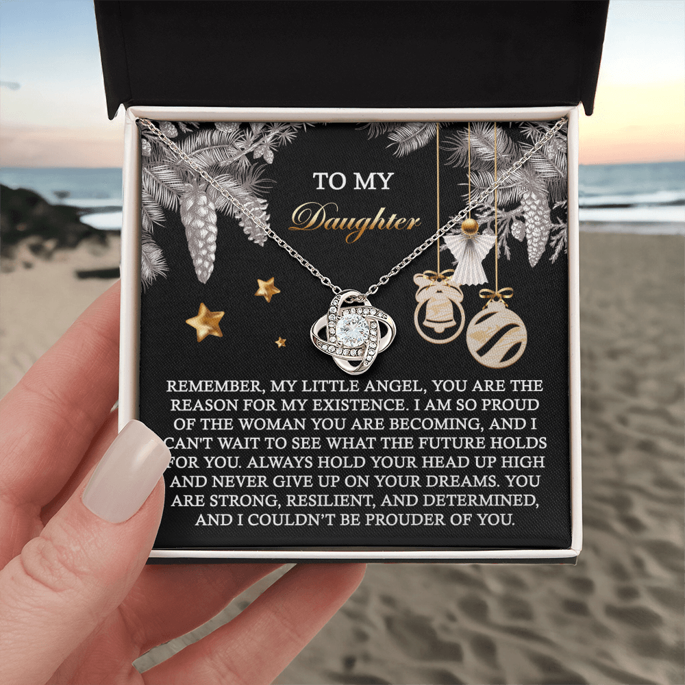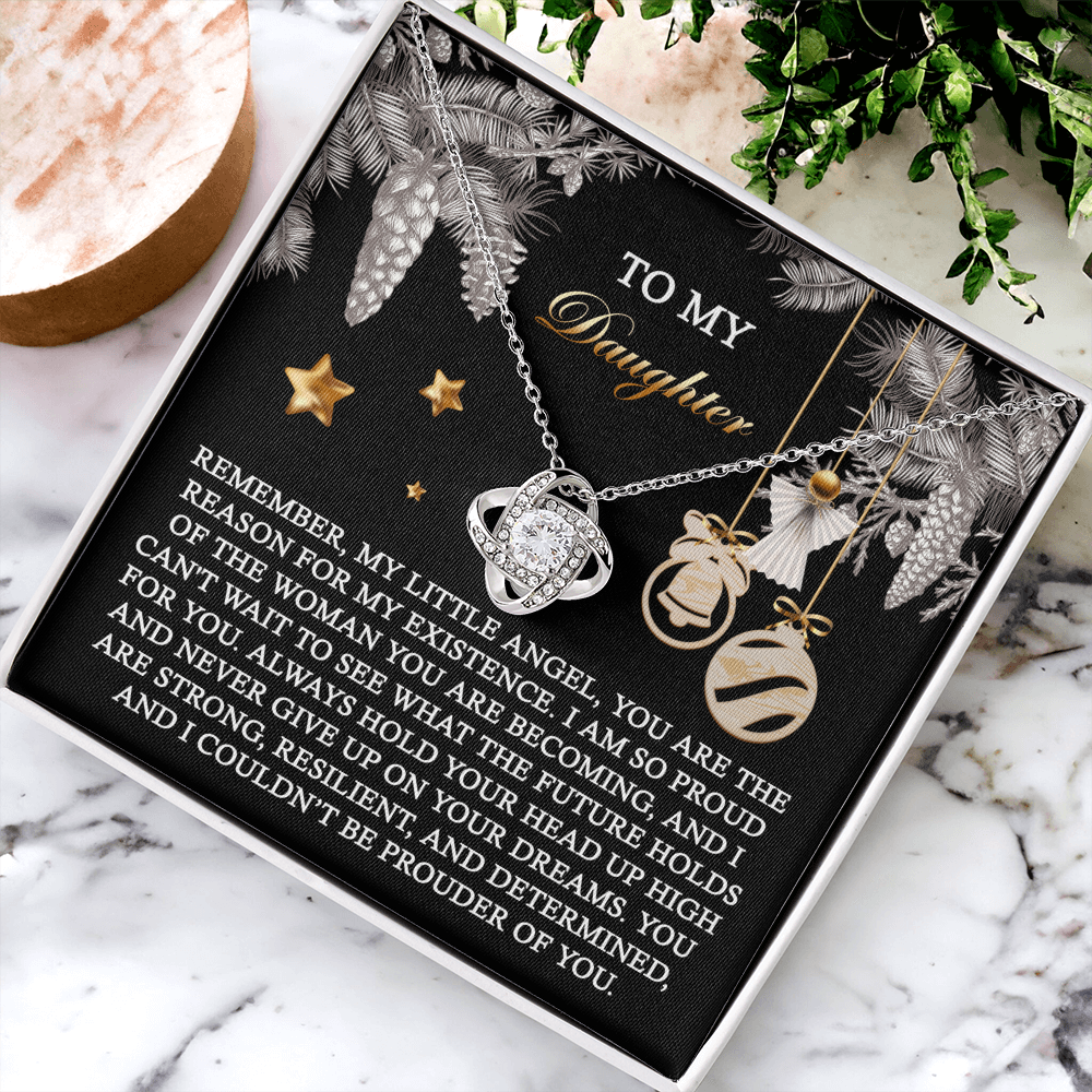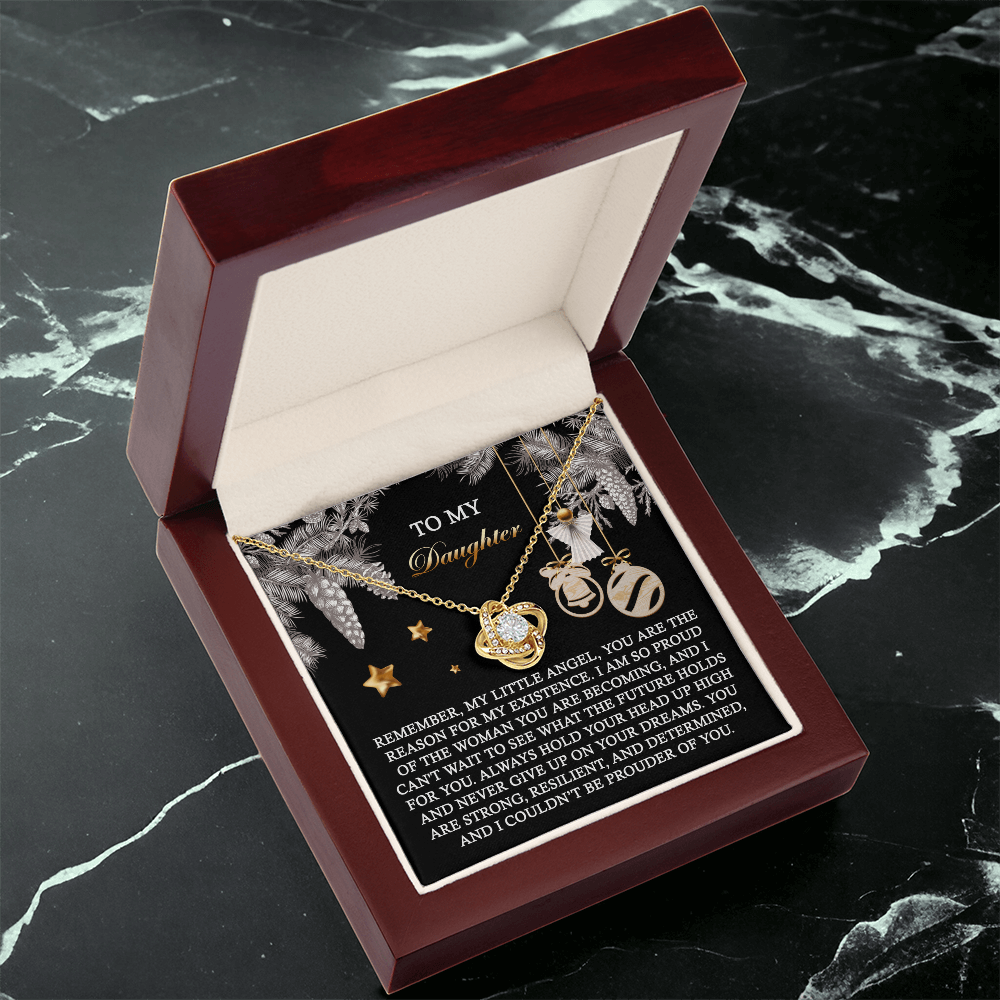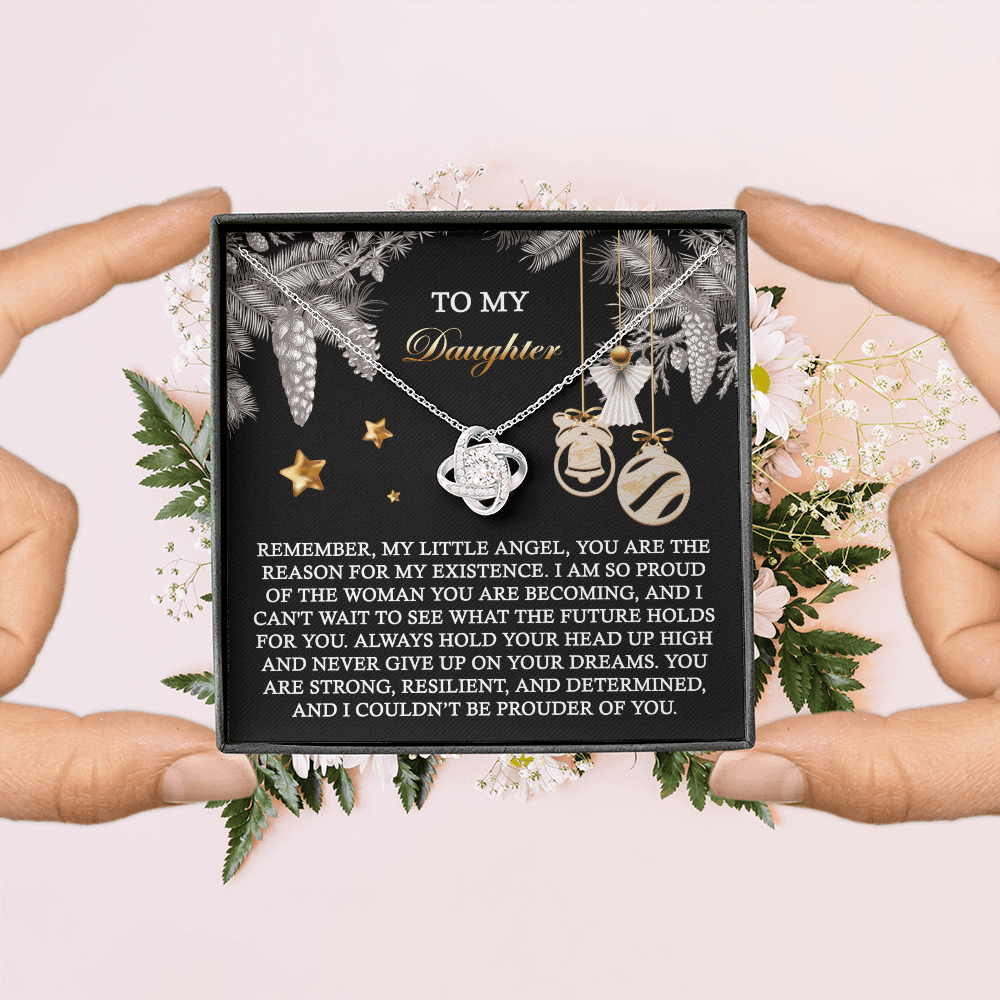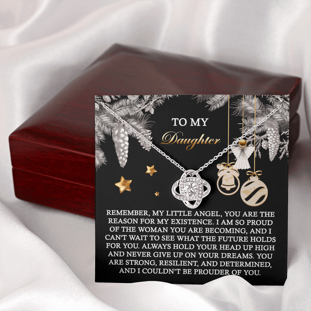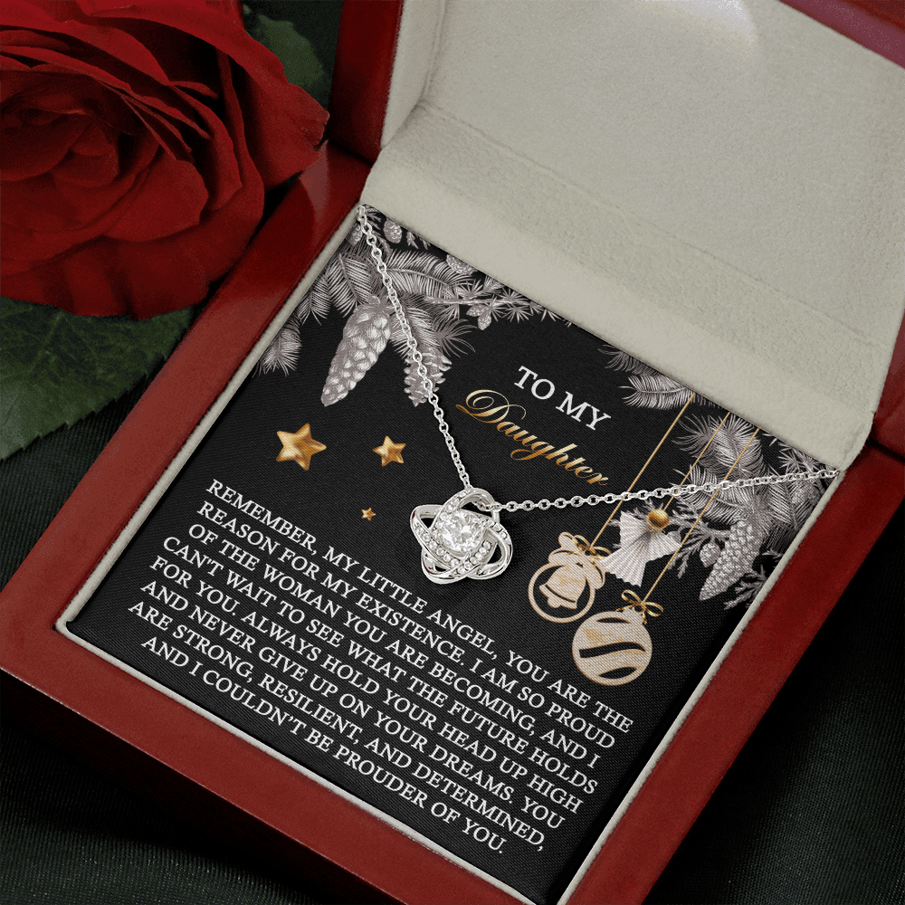 My Daughter - My Little Angel, The Reason For My Existence - So Proud Of The Woman You Are Becoming - Never Give Up On Your Dreams - Strong, Resilient & Determined - Love Knot Necklace LN, DAU0000200LN