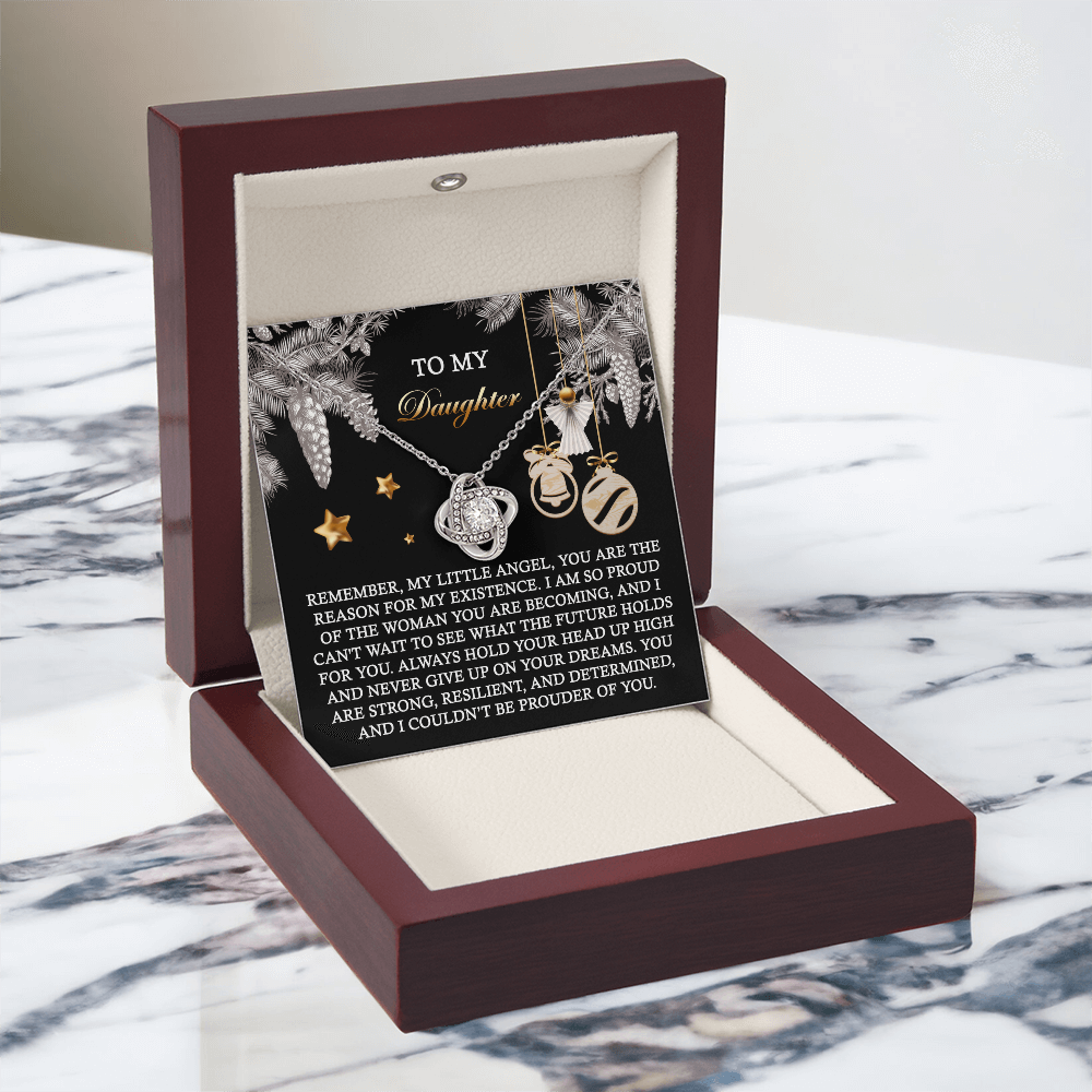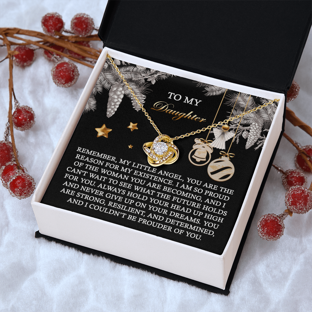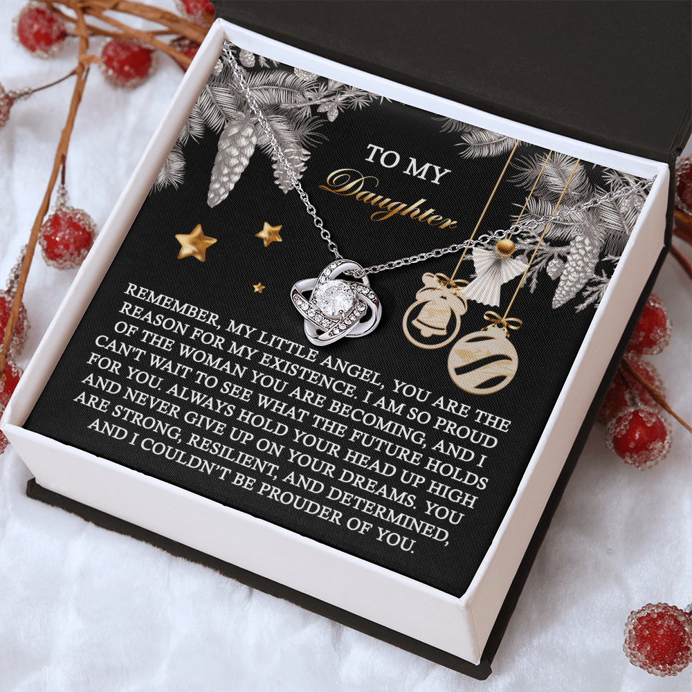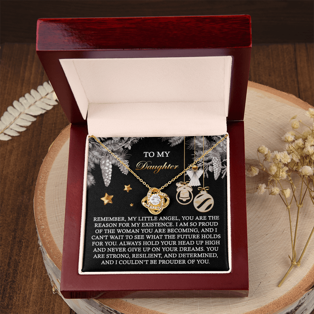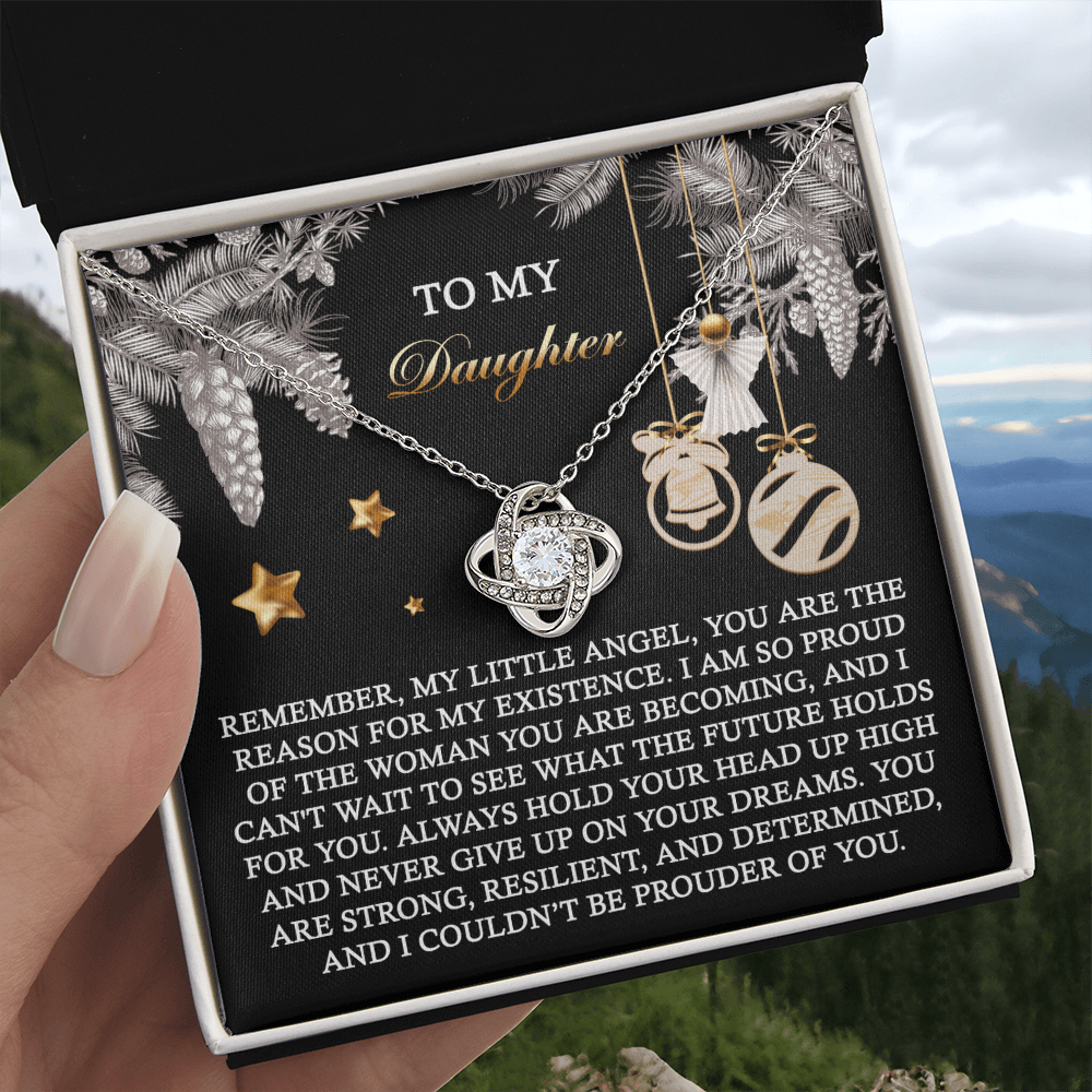 My Daughter - My Little Angel, The Reason For My Existence - So Proud Of The Woman You Are Becoming - Never Give Up On Your Dreams - Strong, Resilient & Determined - Love Knot Necklace LN, DAU0000200LN