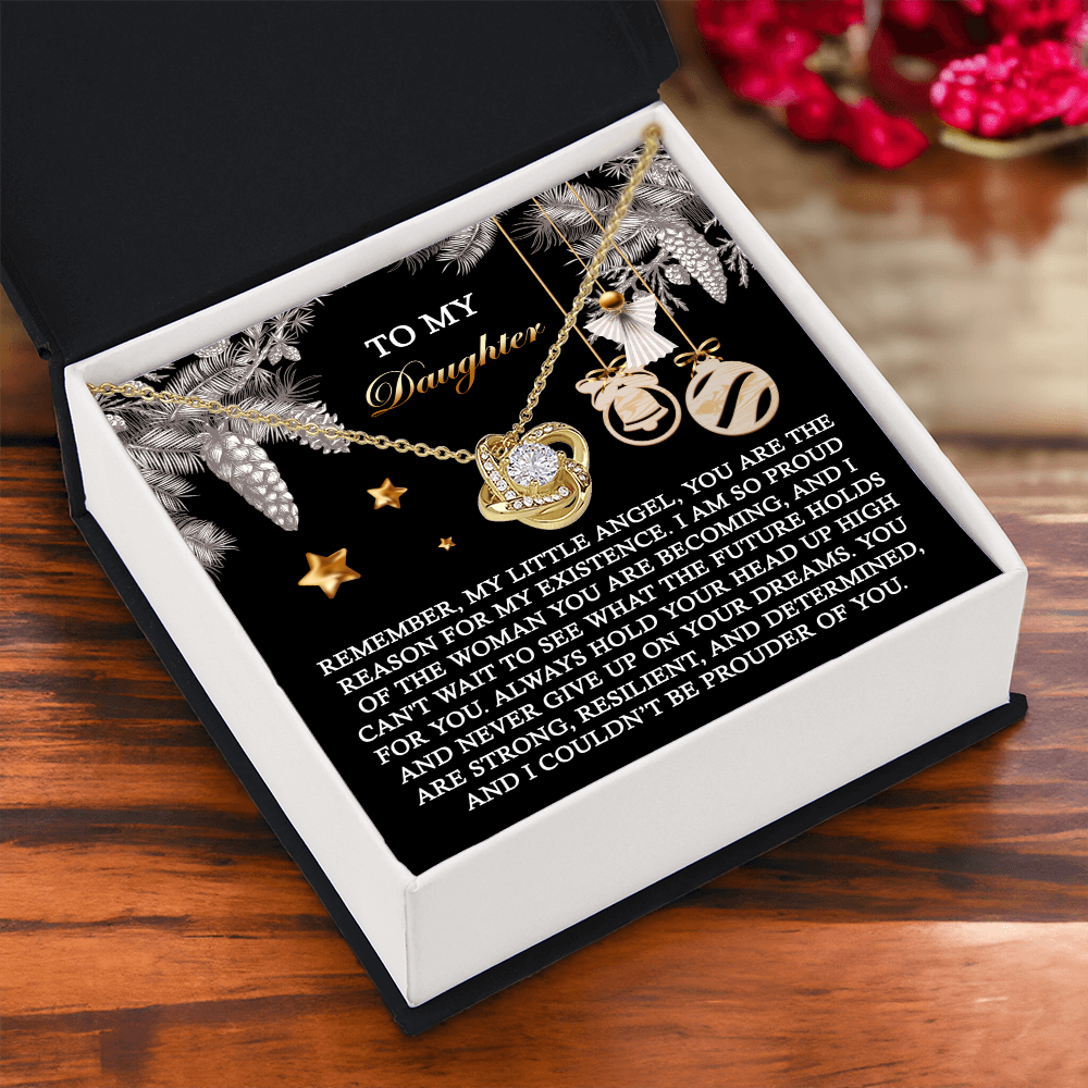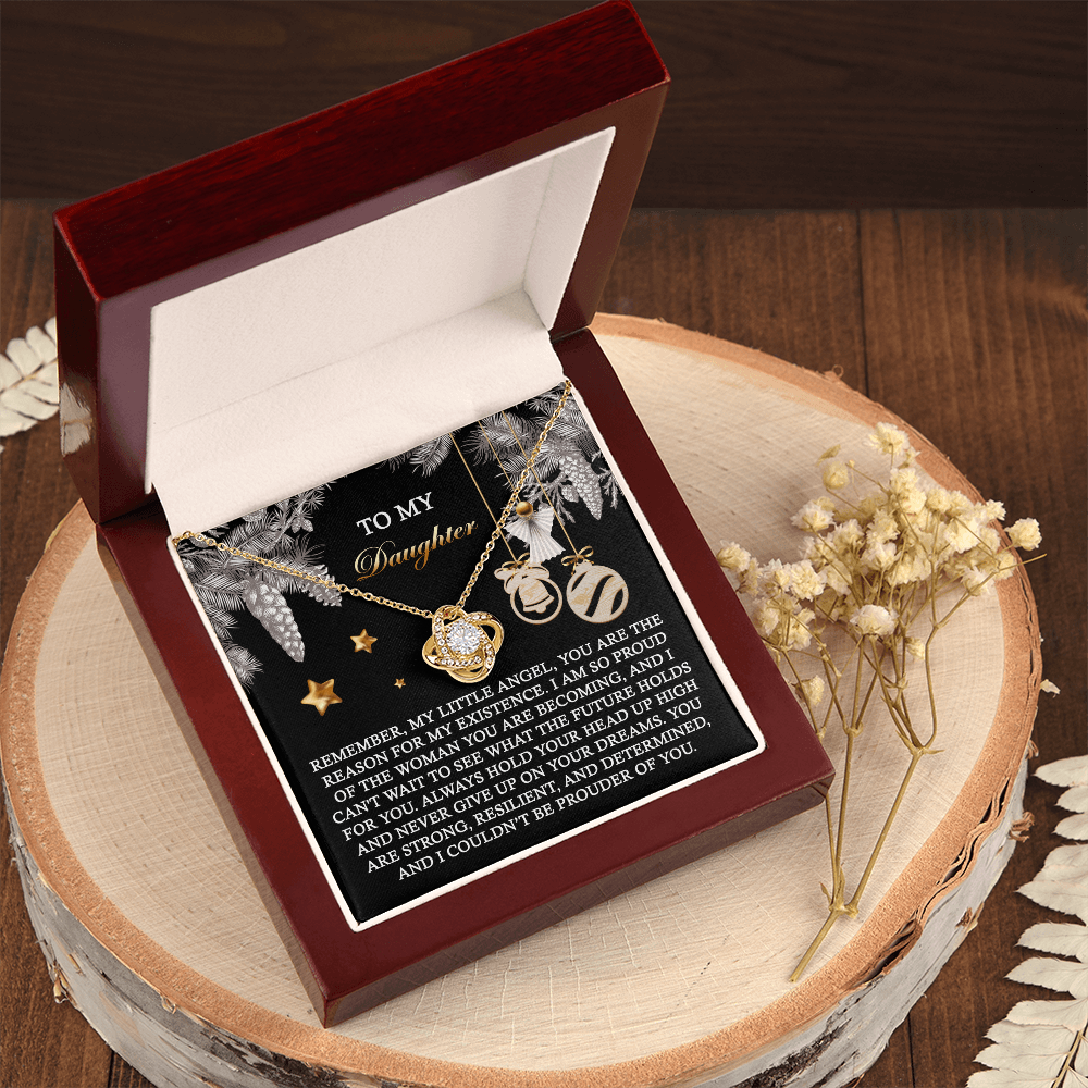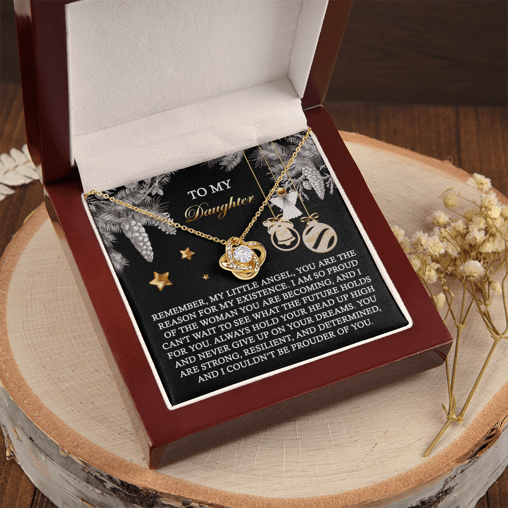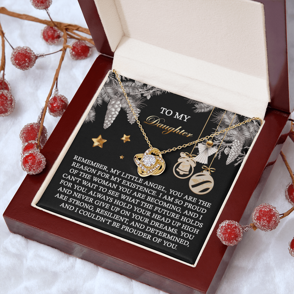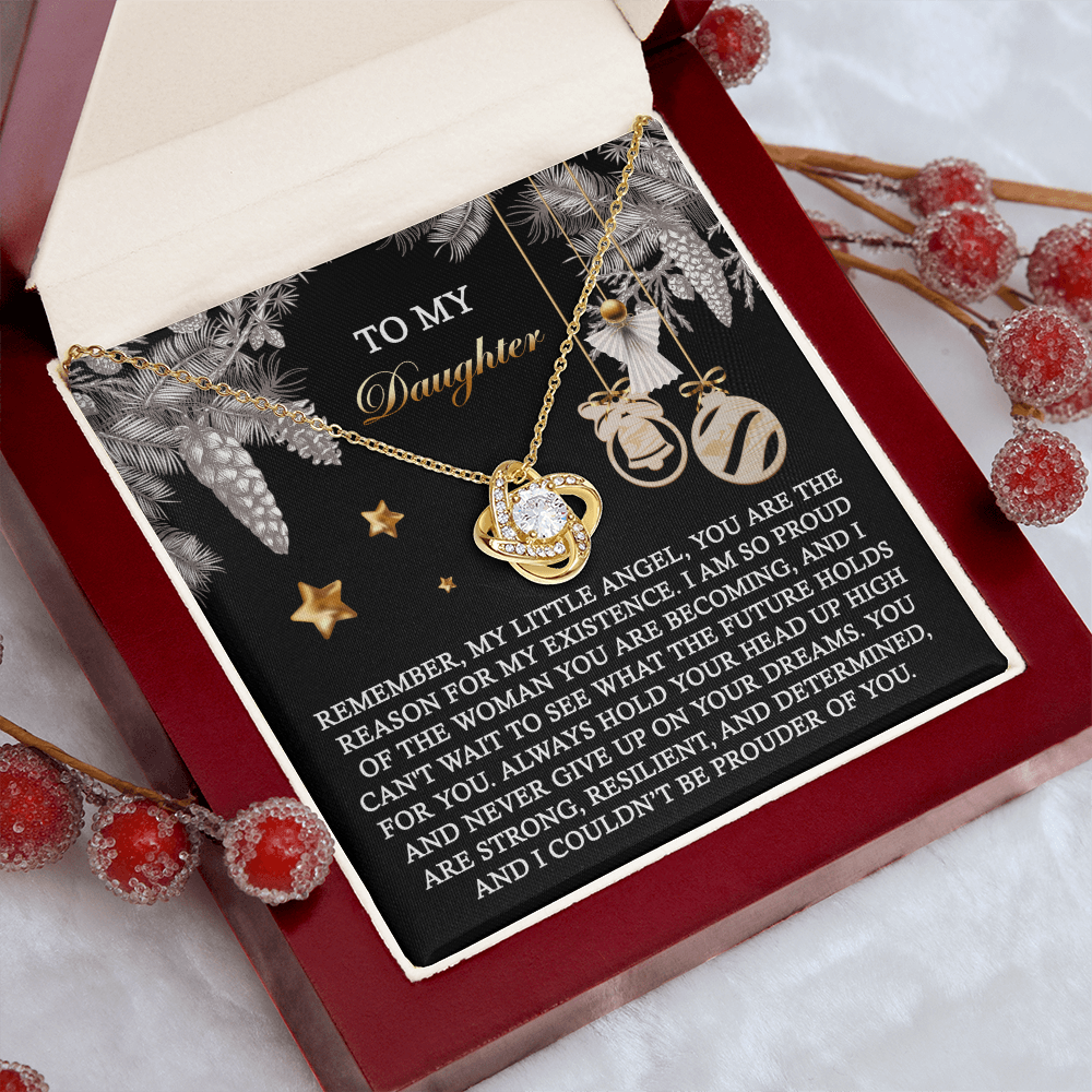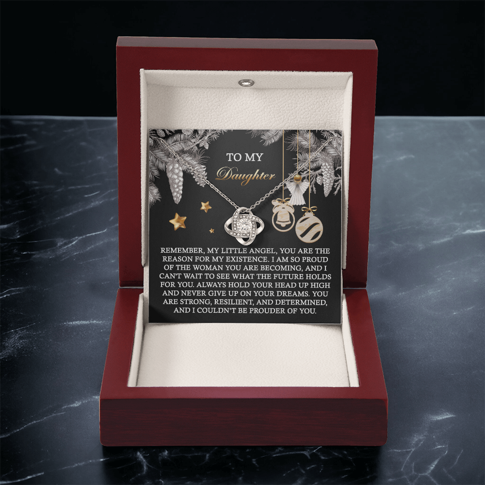 My Daughter - My Little Angel, The Reason For My Existence - So Proud Of The Woman You Are Becoming - Never Give Up On Your Dreams - Strong, Resilient & Determined - Love Knot Necklace LN, DAU0000200LN