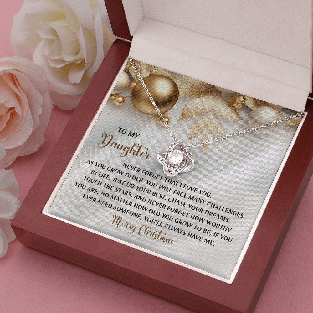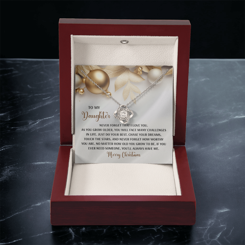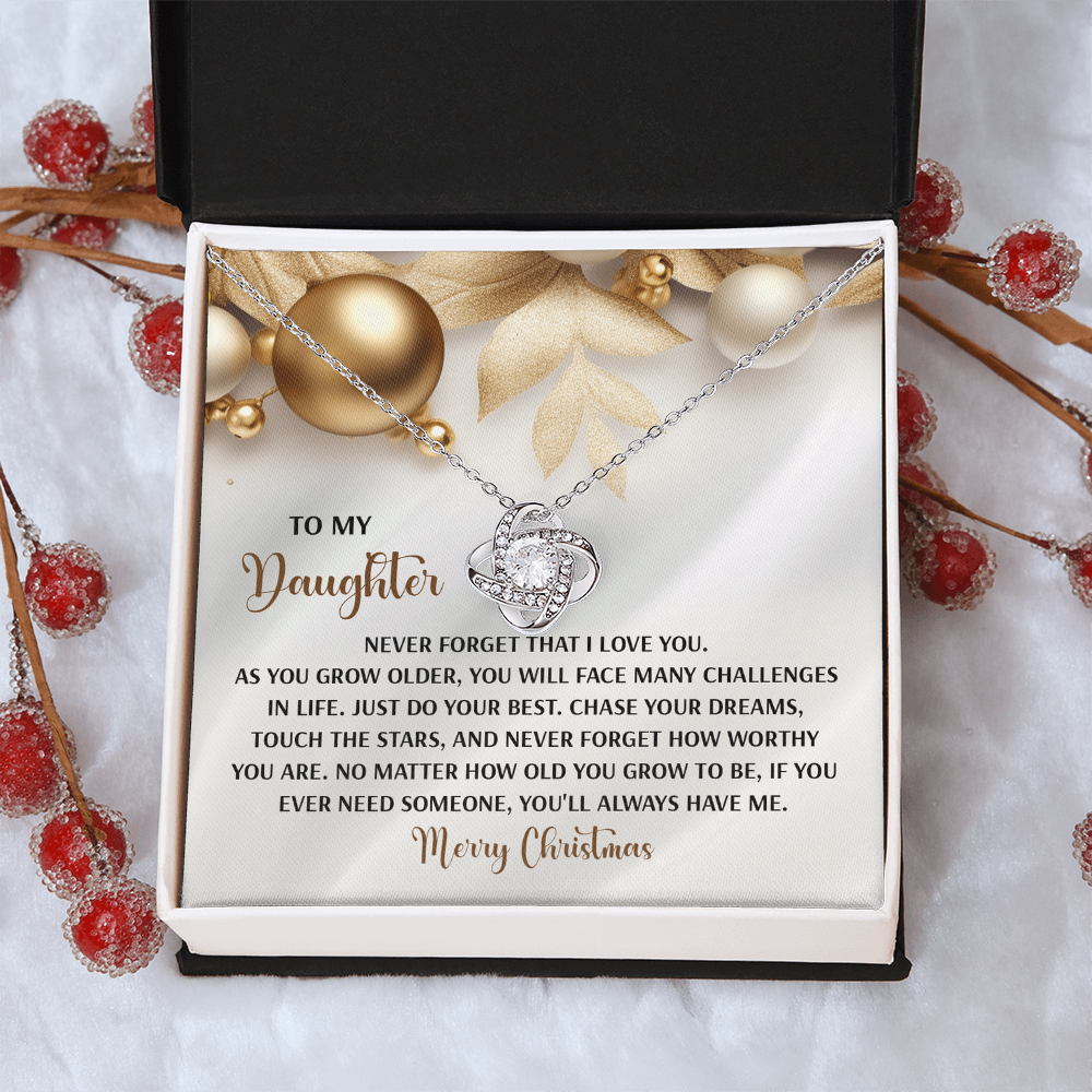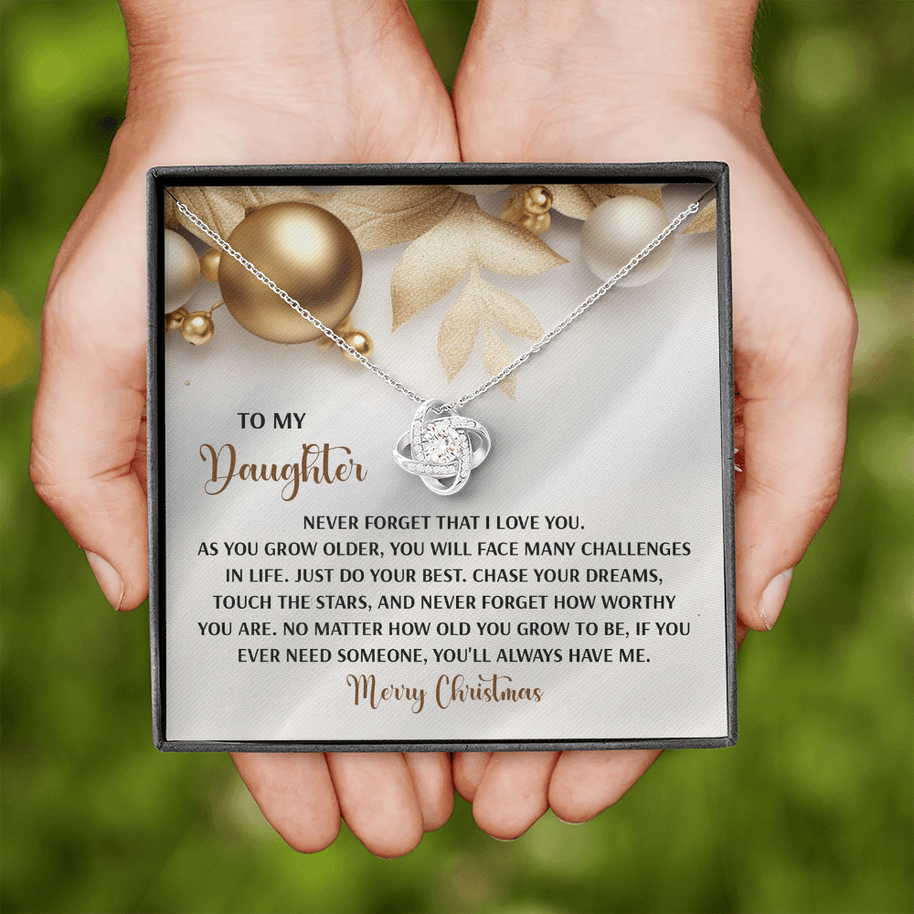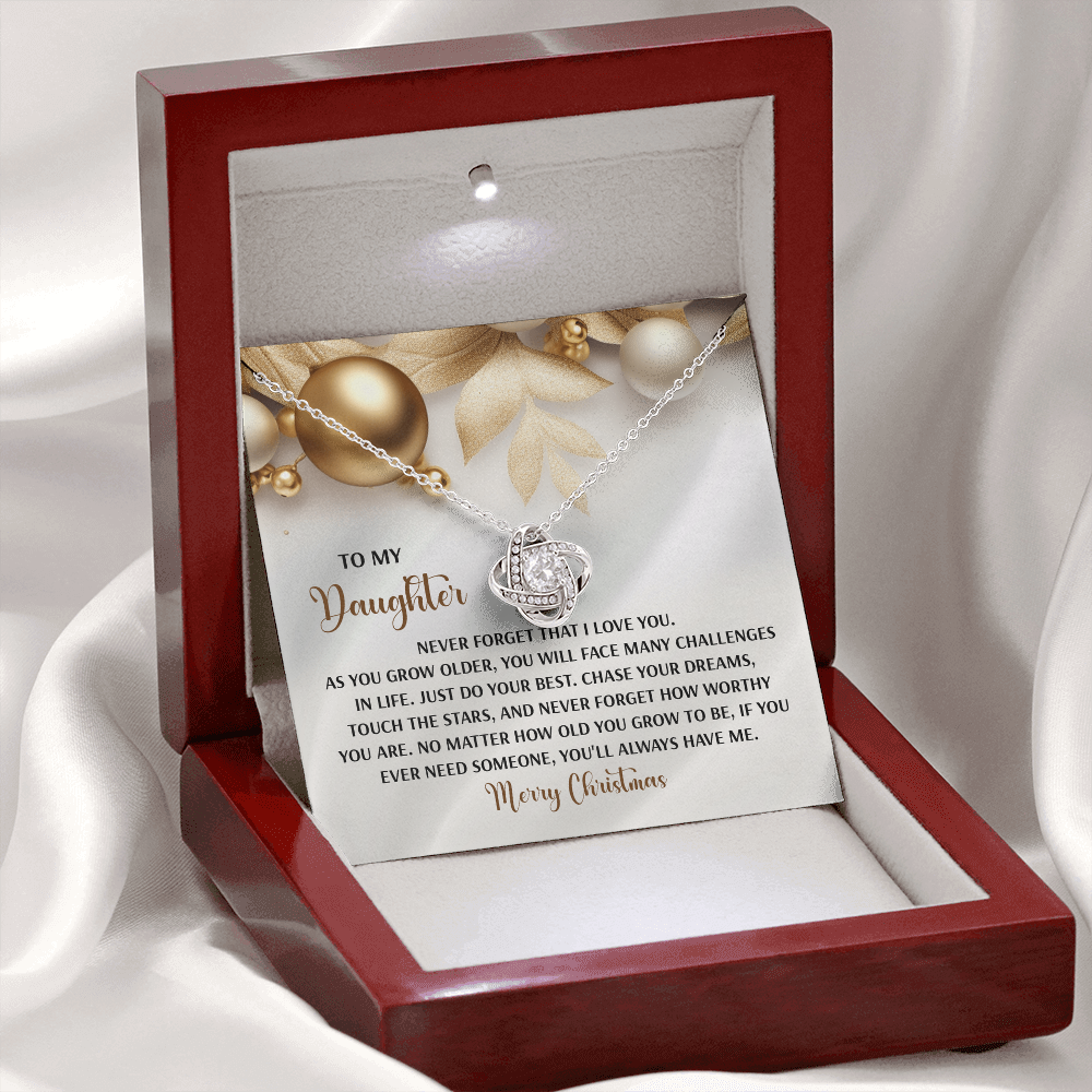 My Daughter - Never Forget That I Love You - Do Your Best, Chase Your Dreams, Touch The Stars & How Worthy You Are - You'll Always Have Me - Merry Christmas - Love Knot Necklace LN, DAU0000196LN