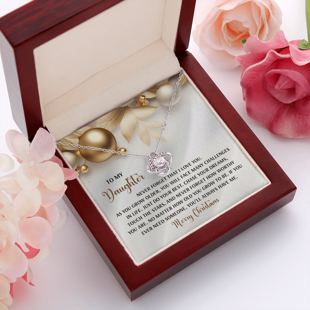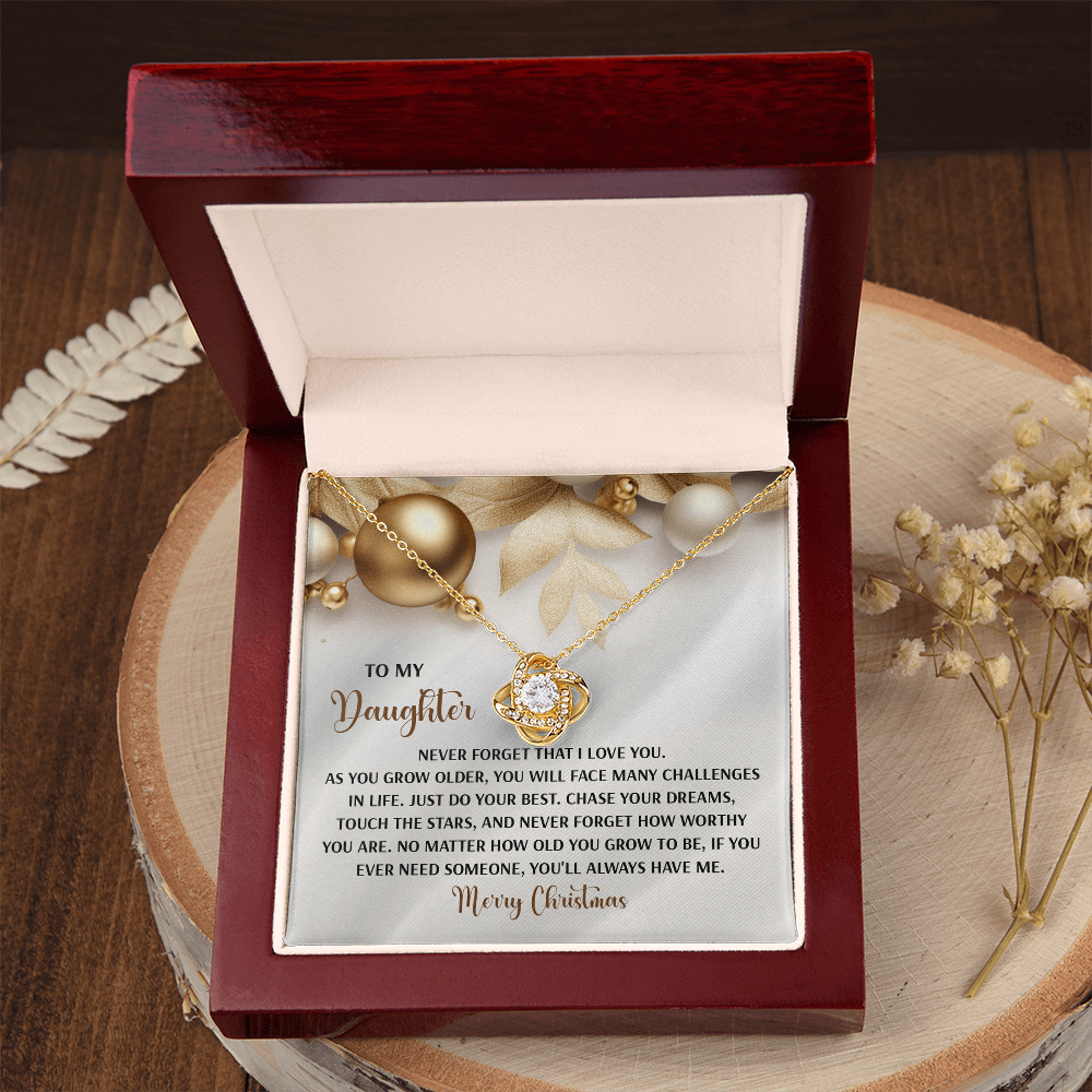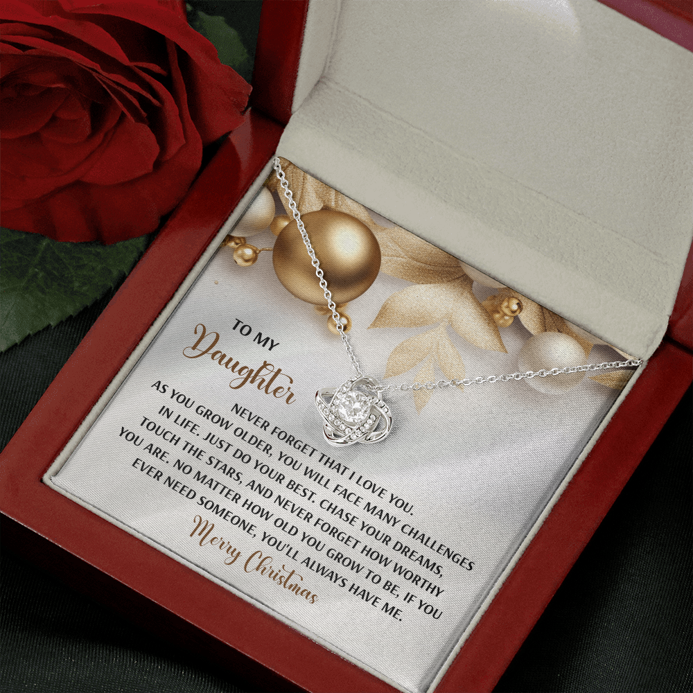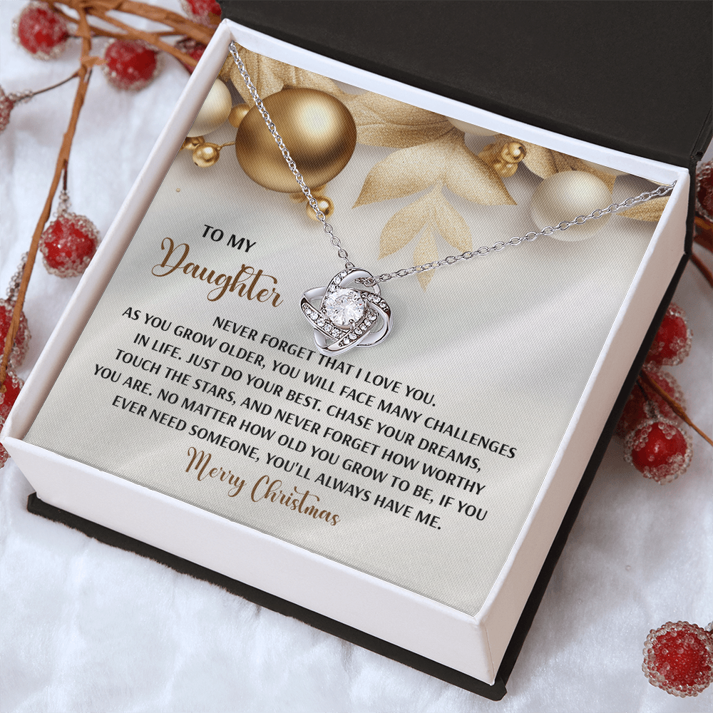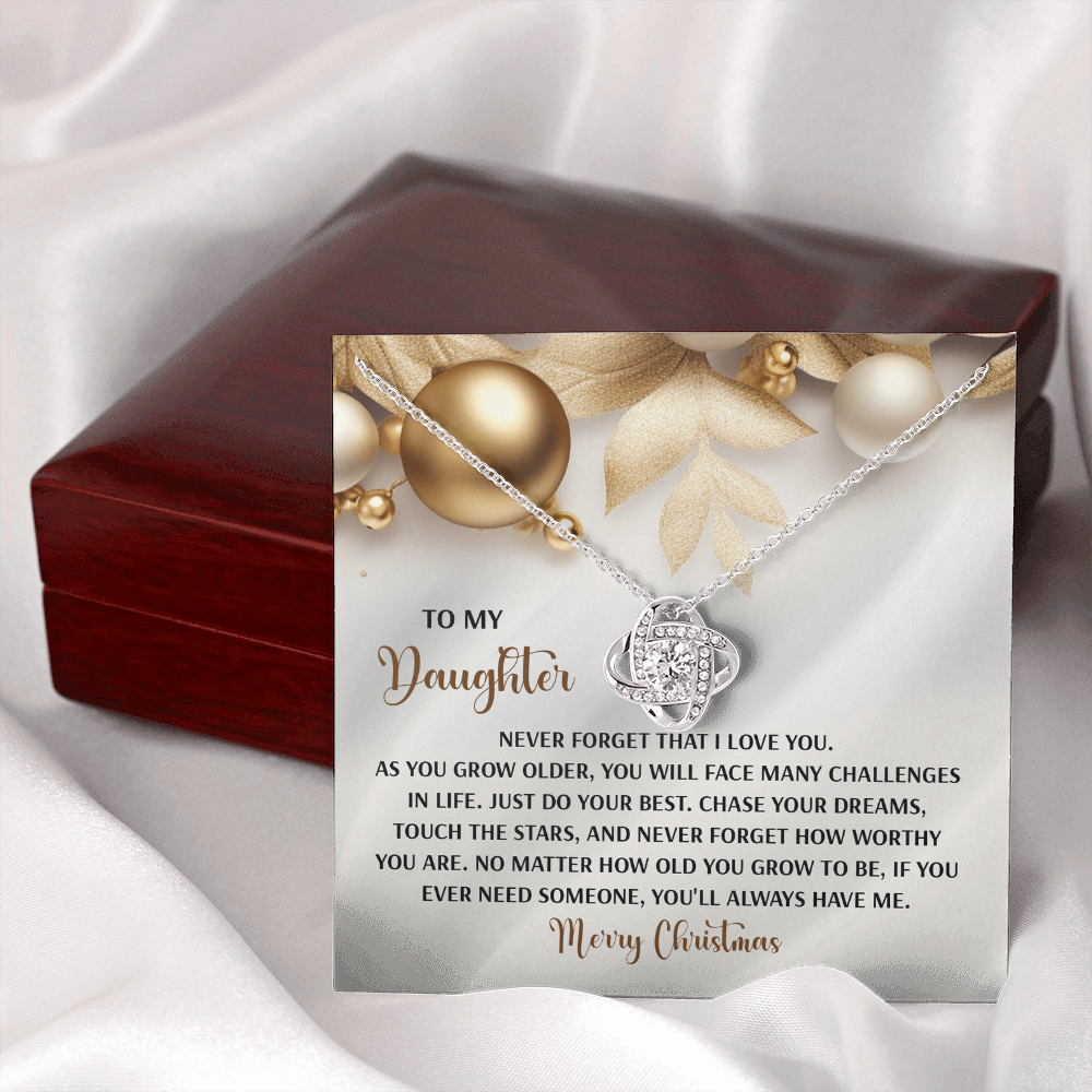 My Daughter - Never Forget That I Love You - Do Your Best, Chase Your Dreams, Touch The Stars & How Worthy You Are - You'll Always Have Me - Merry Christmas - Love Knot Necklace LN, DAU0000196LN