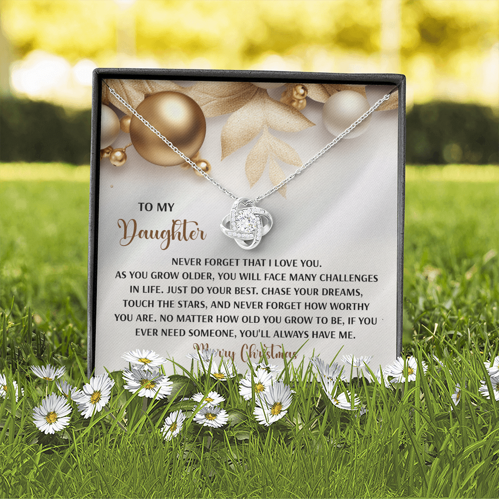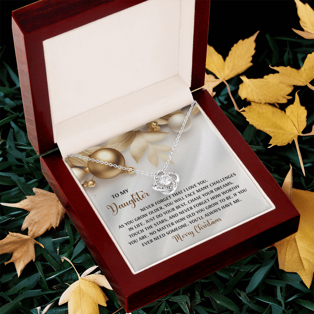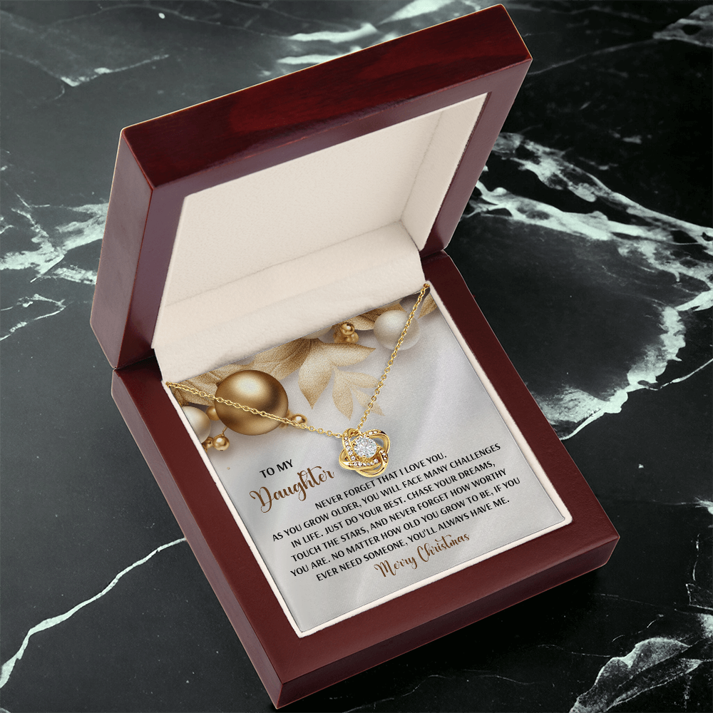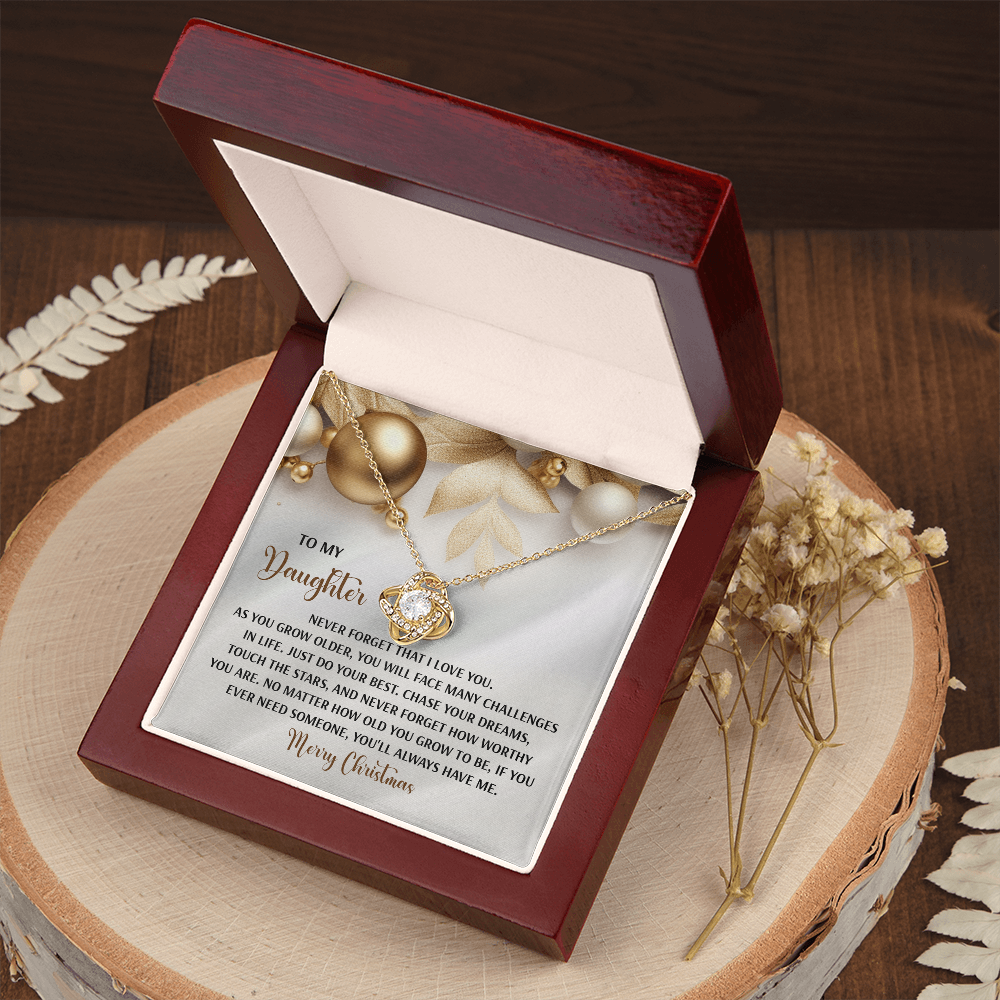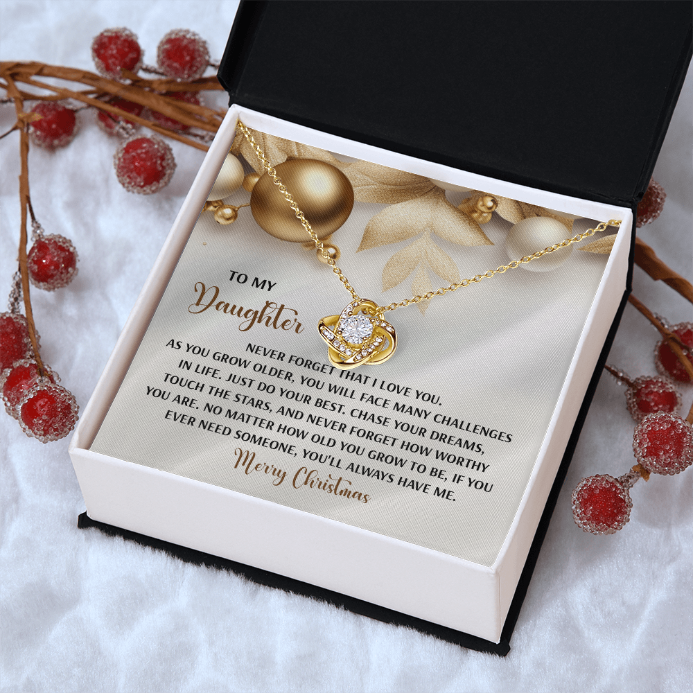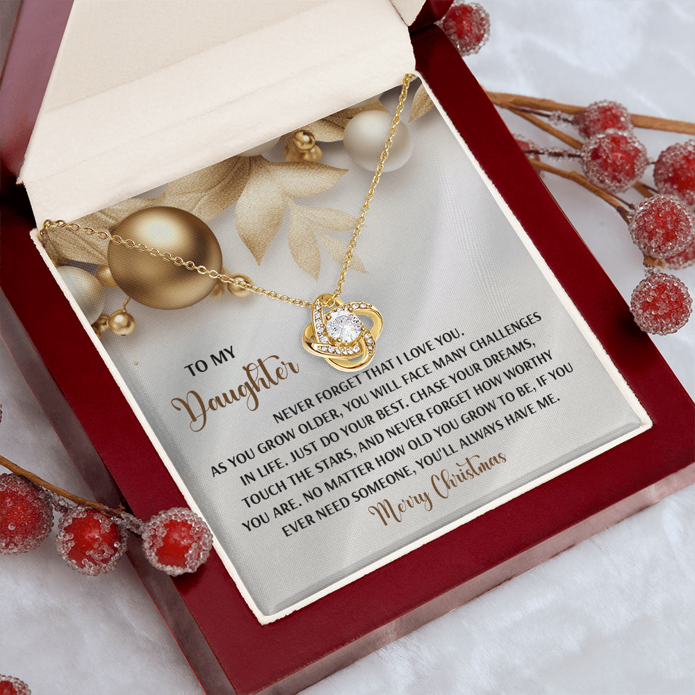 My Daughter - Never Forget That I Love You - Do Your Best, Chase Your Dreams, Touch The Stars & How Worthy You Are - You'll Always Have Me - Merry Christmas - Love Knot Necklace LN, DAU0000196LN