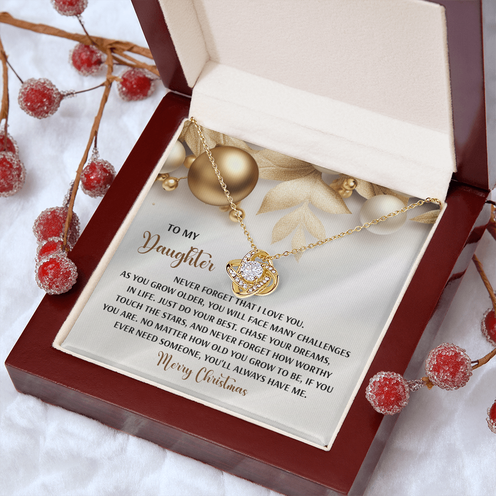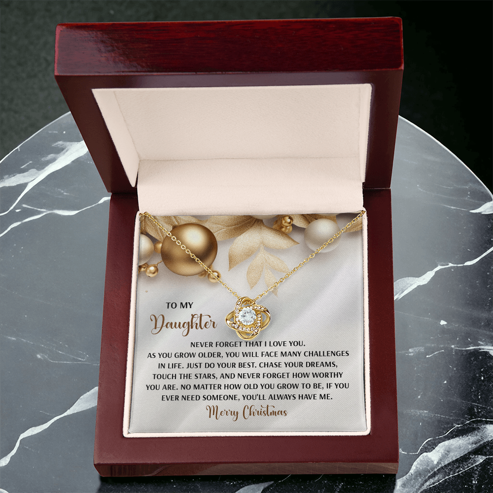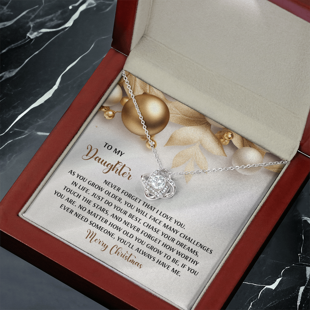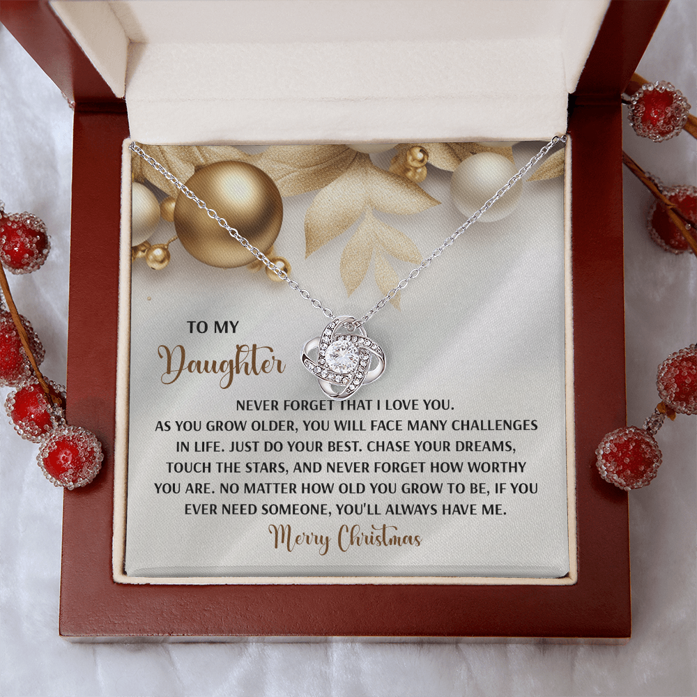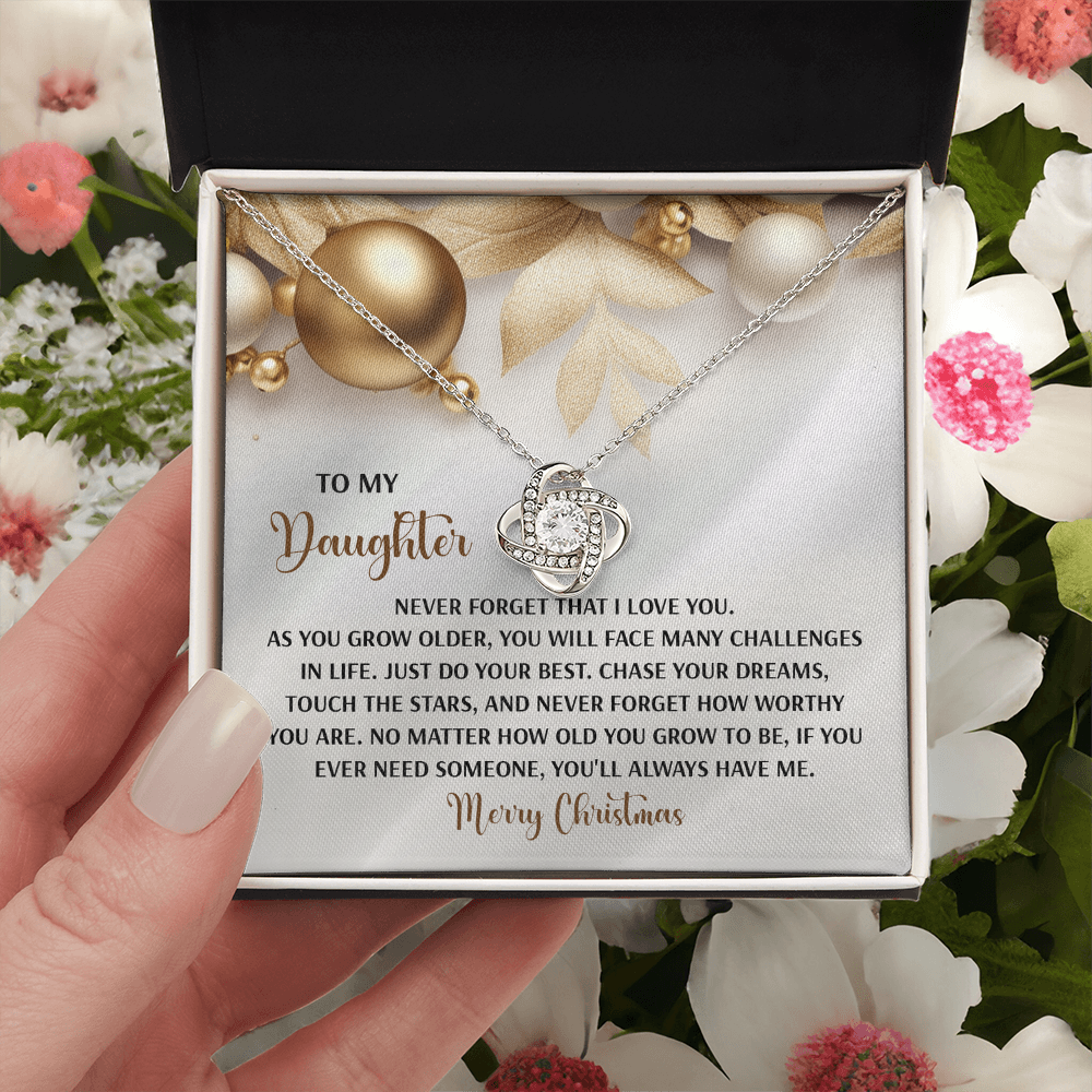 My Daughter - Never Forget That I Love You - Do Your Best, Chase Your Dreams, Touch The Stars & How Worthy You Are - You'll Always Have Me - Merry Christmas - Love Knot Necklace LN, DAU0000196LN