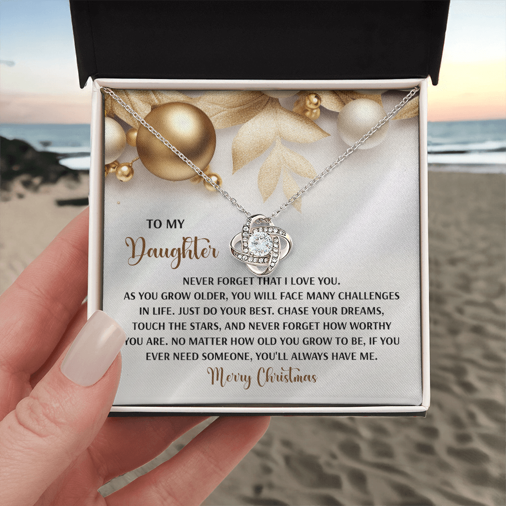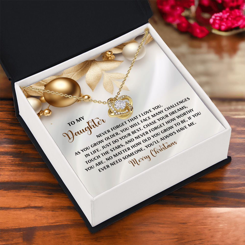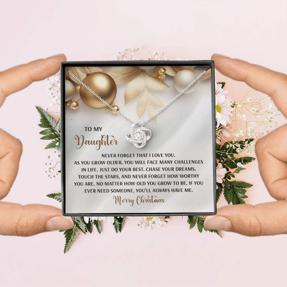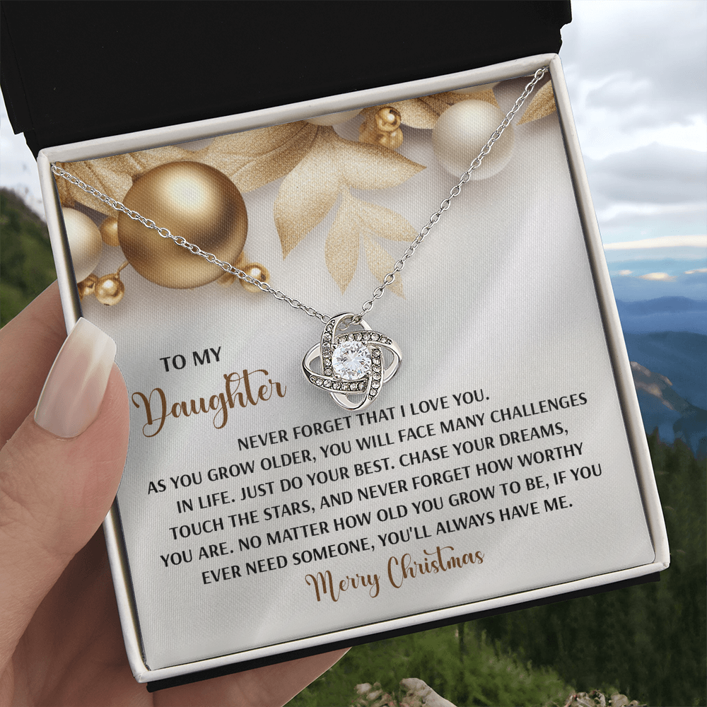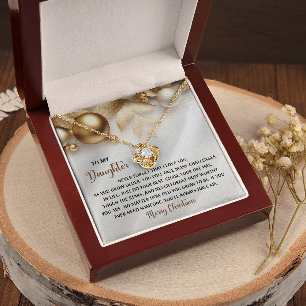 My Daughter - Never Forget That I Love You - Do Your Best, Chase Your Dreams, Touch The Stars & How Worthy You Are - You'll Always Have Me - Merry Christmas - Love Knot Necklace LN, DAU0000196LN