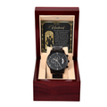 A handsome gift that can withstand constant use, this Black Chronograph Watch is perfect for all the special men in your life. A thoughtful present to your groomsmen, an anniversary memento, or a long-lasting keepsake for Father’s Day - it's a versatile piece sure to warm hearts and create smiles. Featuring a three-dial face, calendar function, and luxury pointer in a water-resistant and scratch-proof vessel.