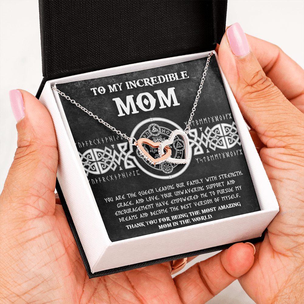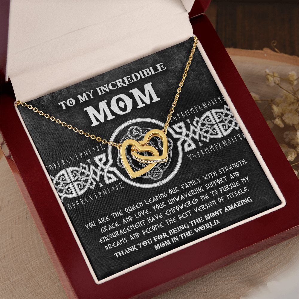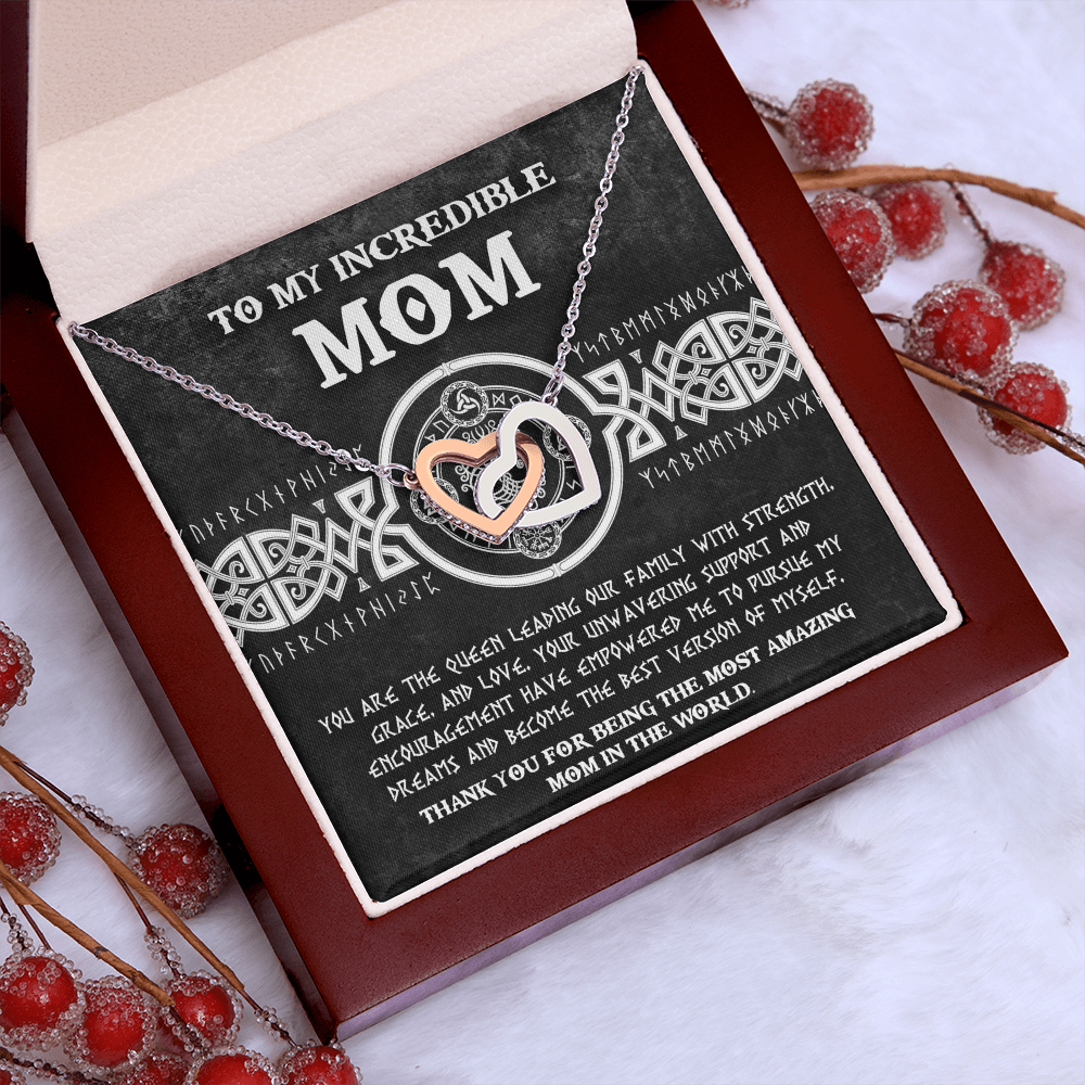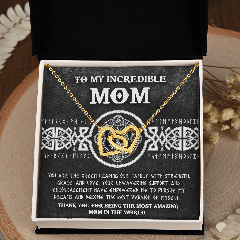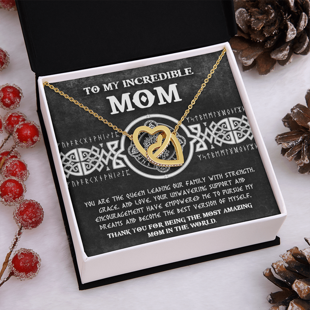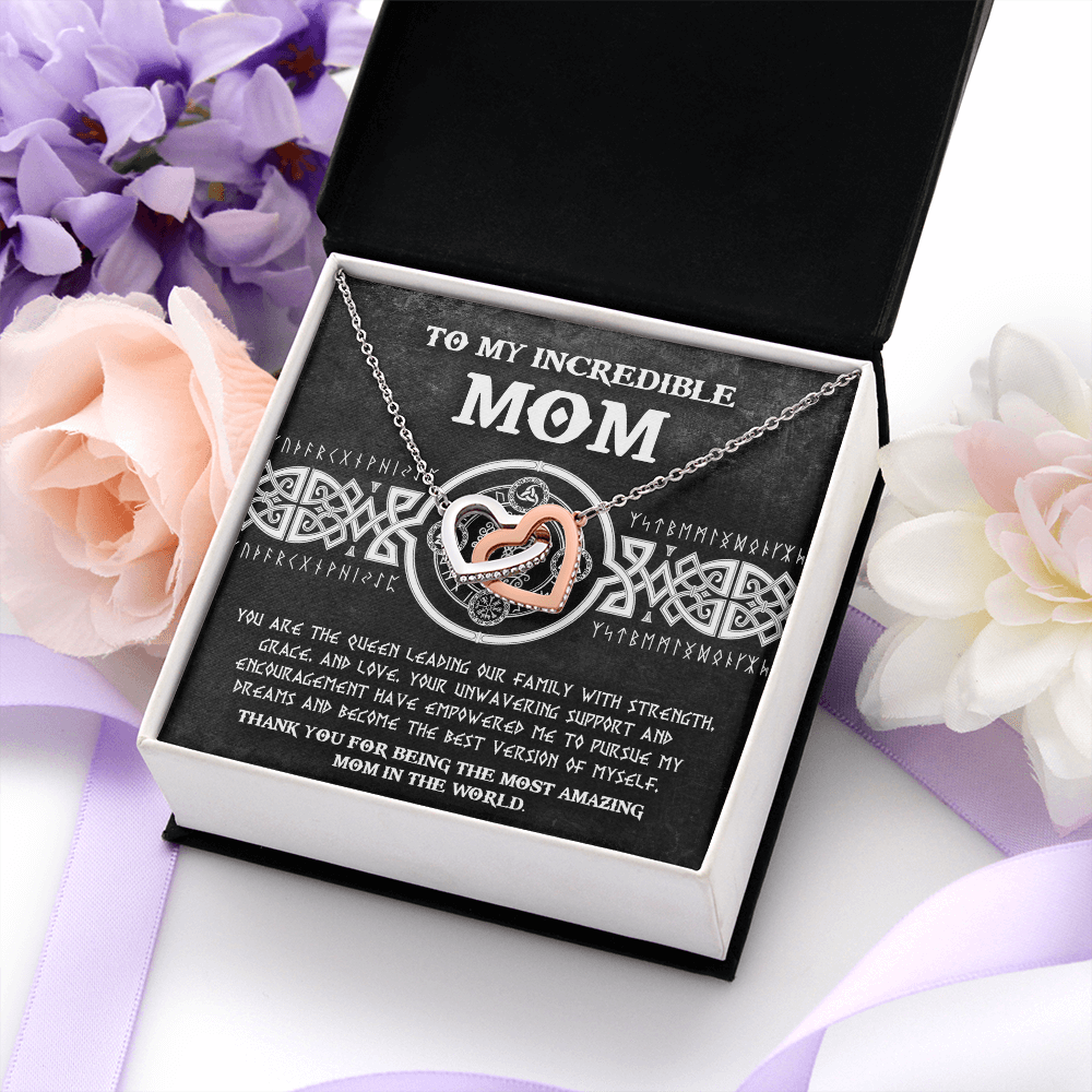 My Incredible Mom - The Queen Leading Our Family With Strength, Grace & Love - Thank You For Being The Most Amazing Mom In The World - Interlocking Hearts Necklace IH, MOM0000067IH