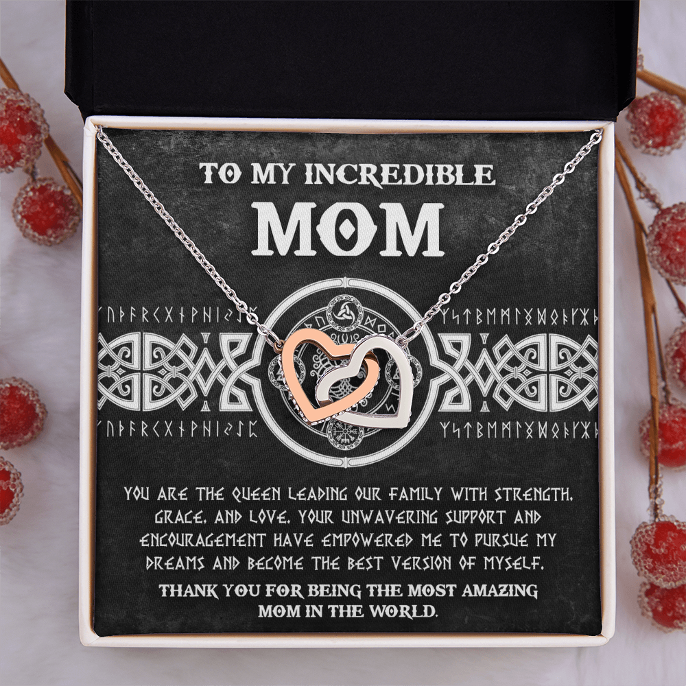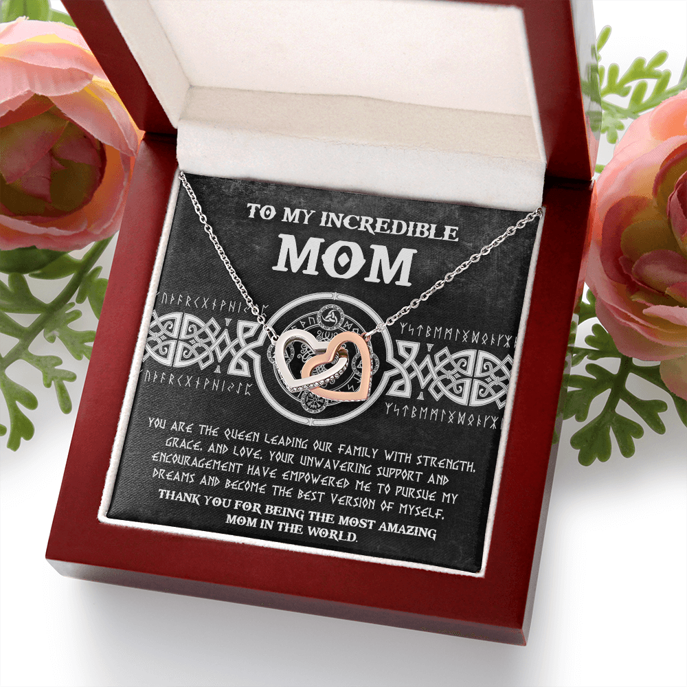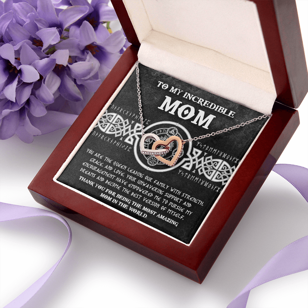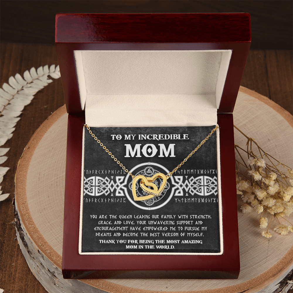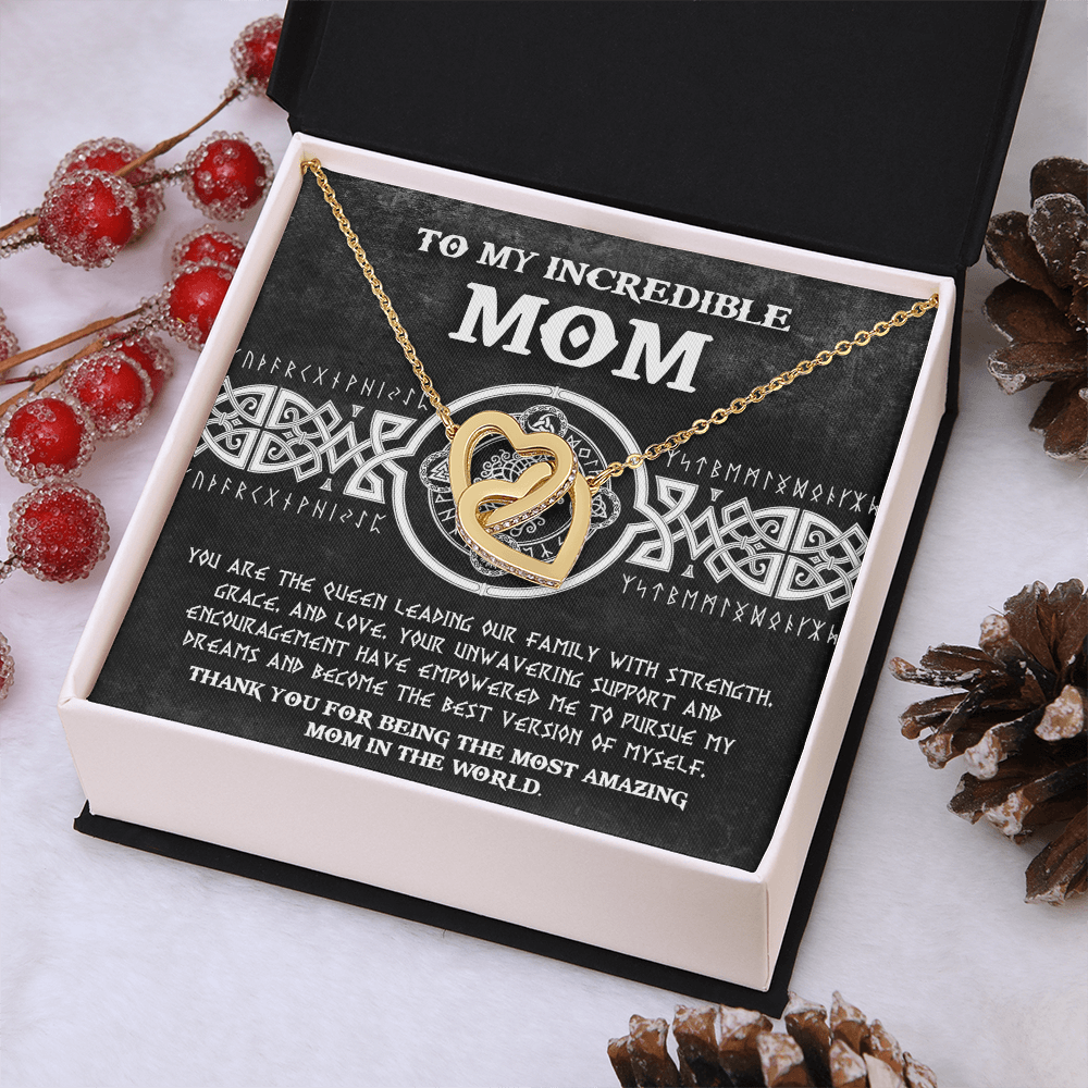 My Incredible Mom - The Queen Leading Our Family With Strength, Grace & Love - Thank You For Being The Most Amazing Mom In The World - Interlocking Hearts Necklace IH, MOM0000067IH