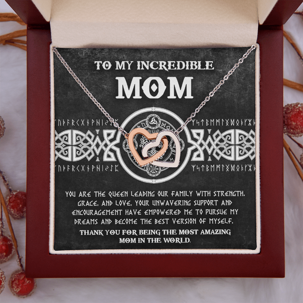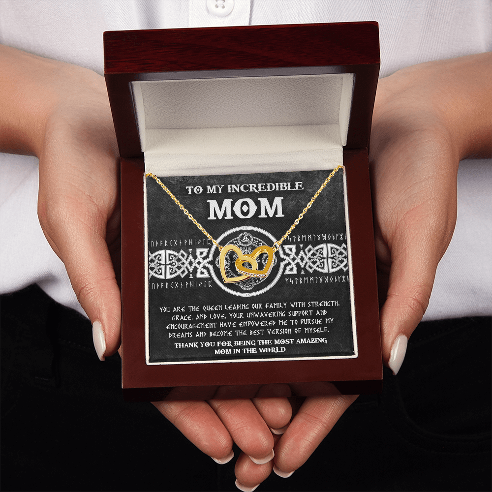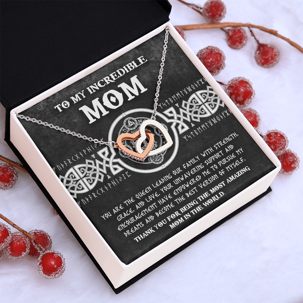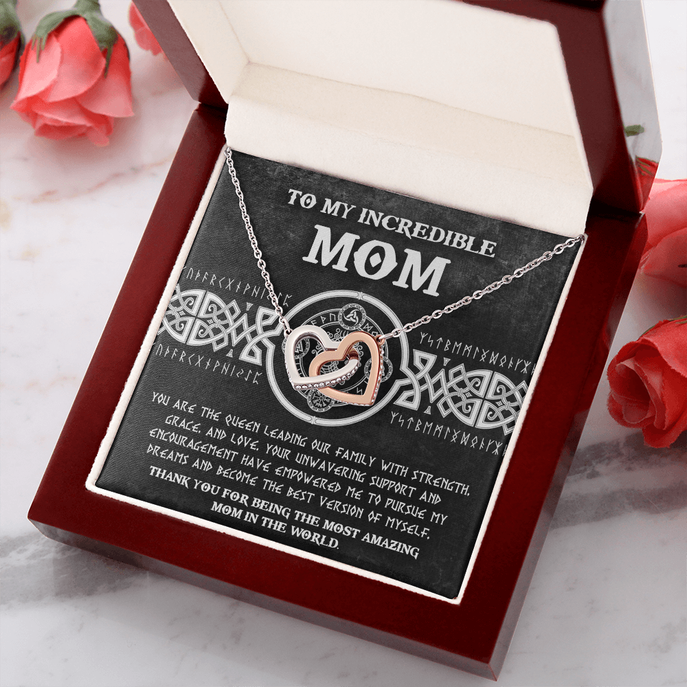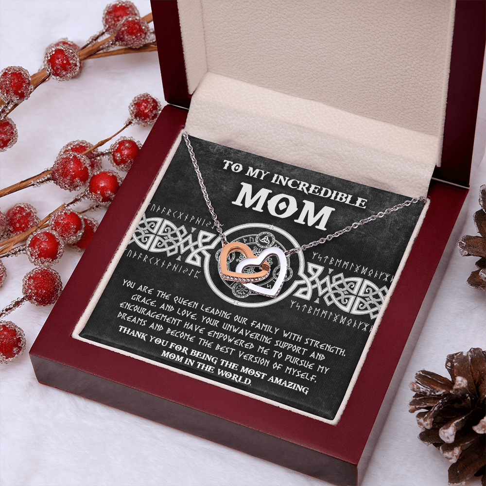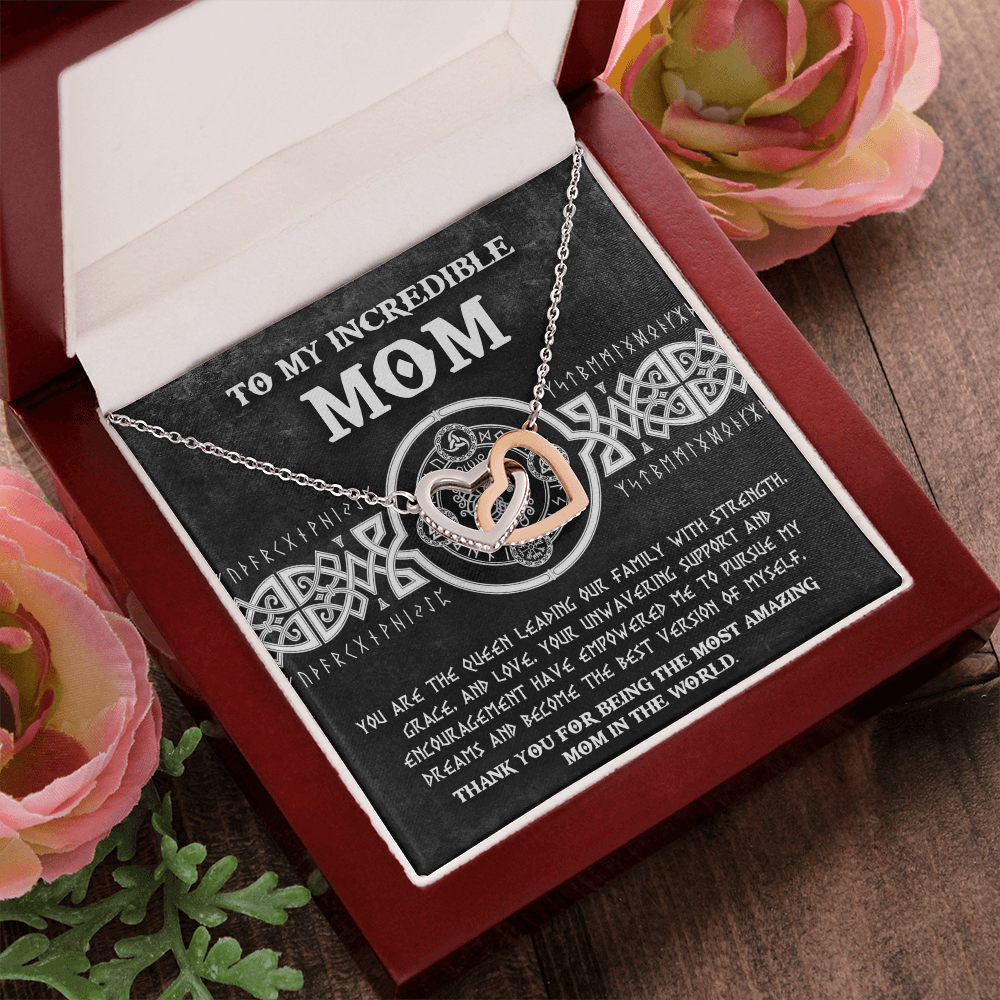 My Incredible Mom - The Queen Leading Our Family With Strength, Grace & Love - Thank You For Being The Most Amazing Mom In The World - Interlocking Hearts Necklace IH, MOM0000067IH