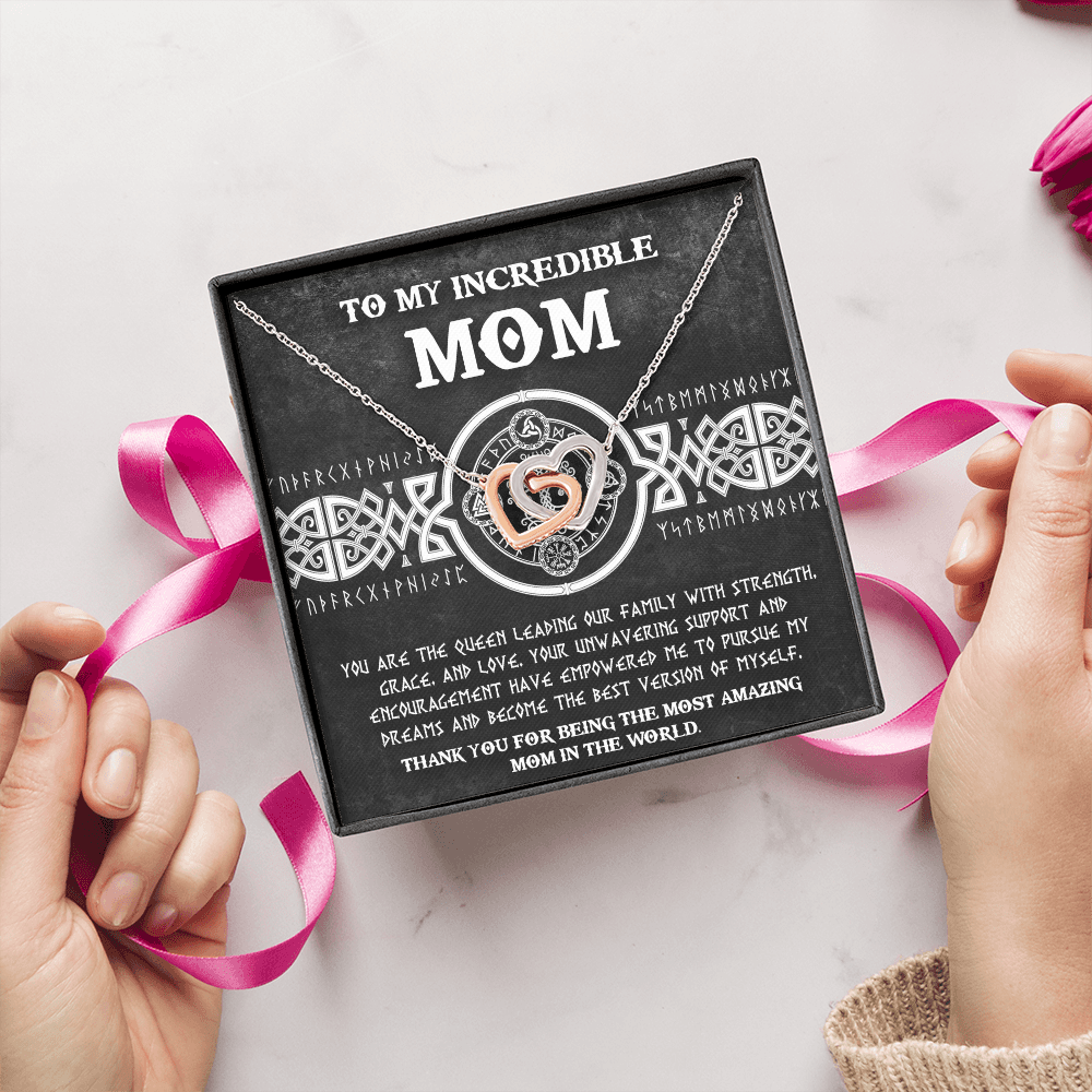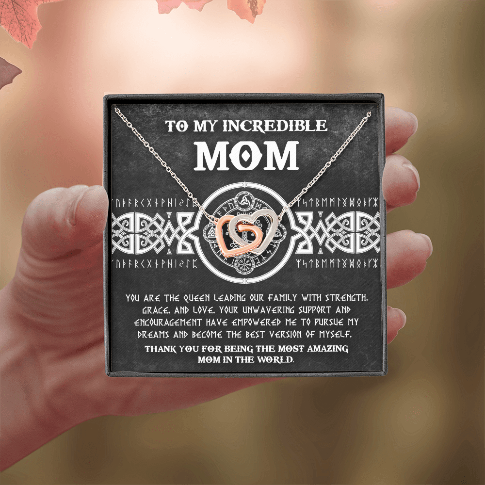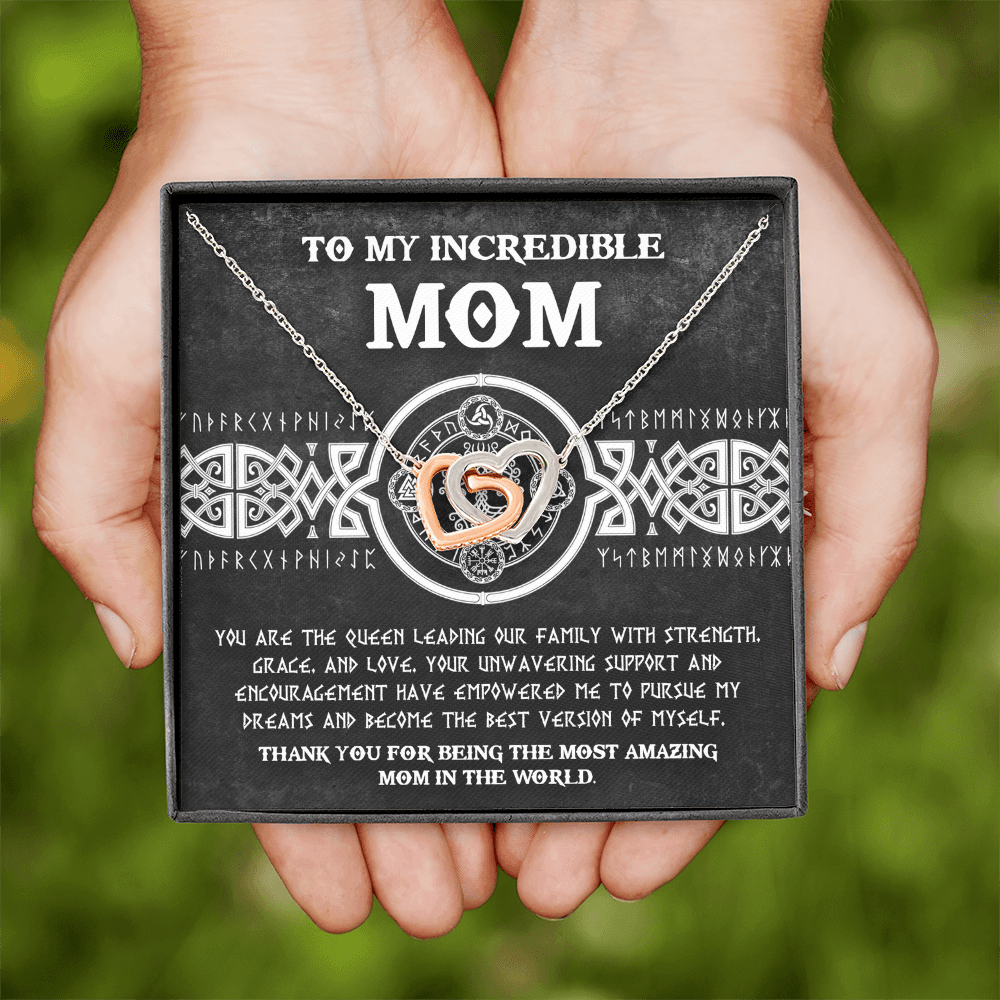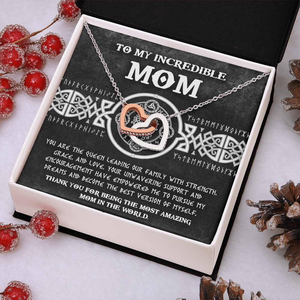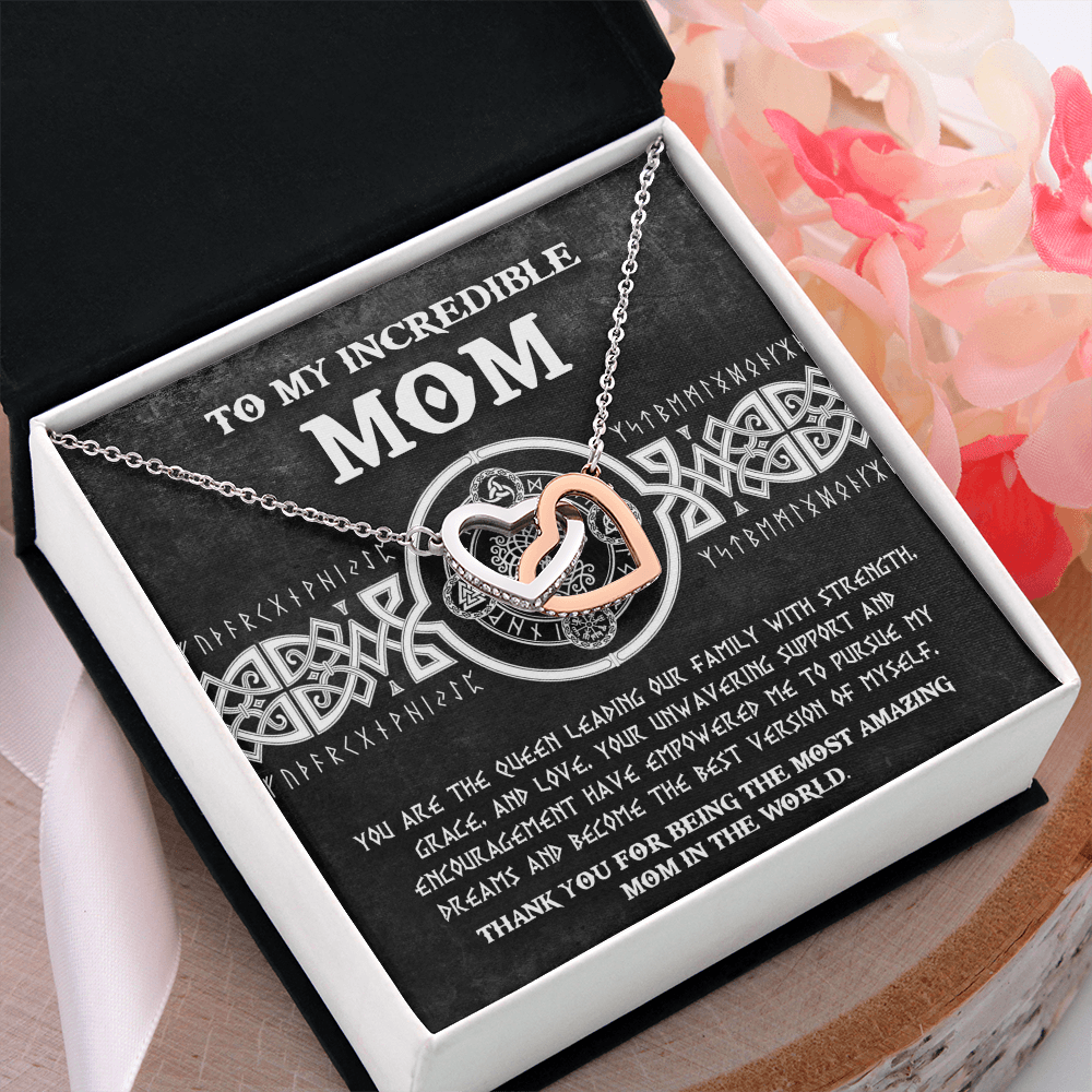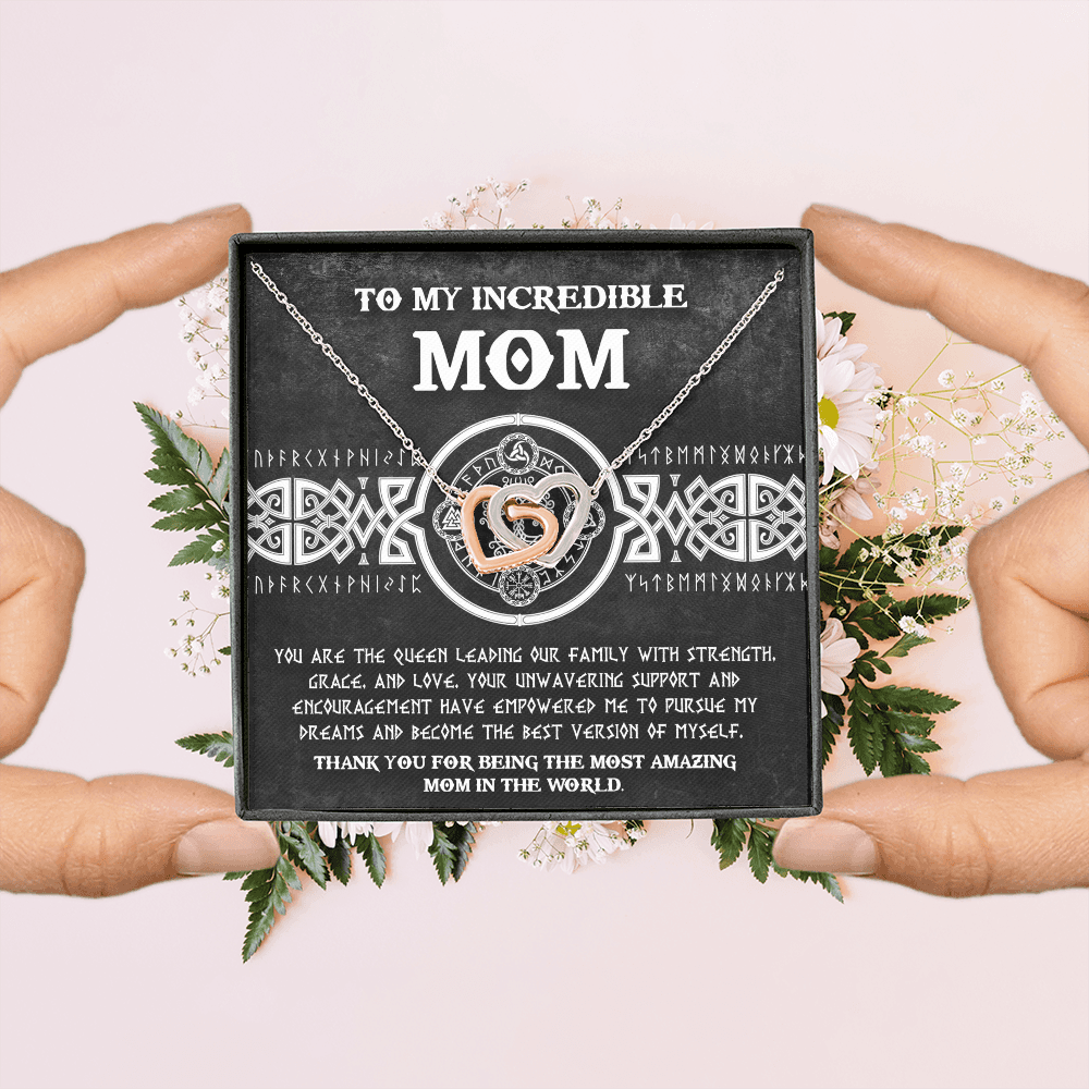 My Incredible Mom - The Queen Leading Our Family With Strength, Grace & Love - Thank You For Being The Most Amazing Mom In The World - Interlocking Hearts Necklace IH, MOM0000067IH