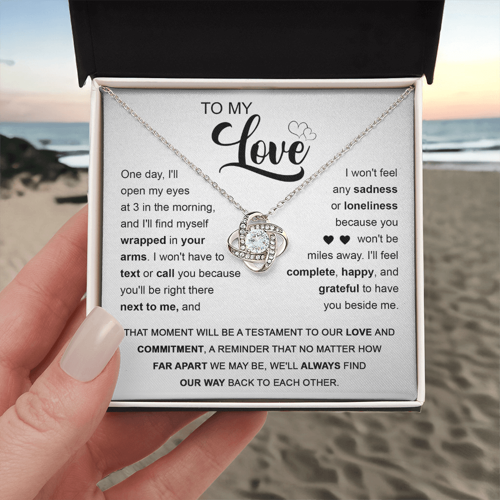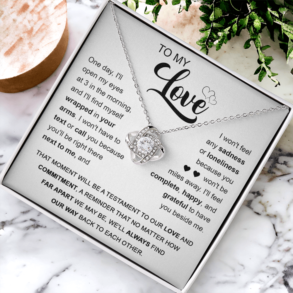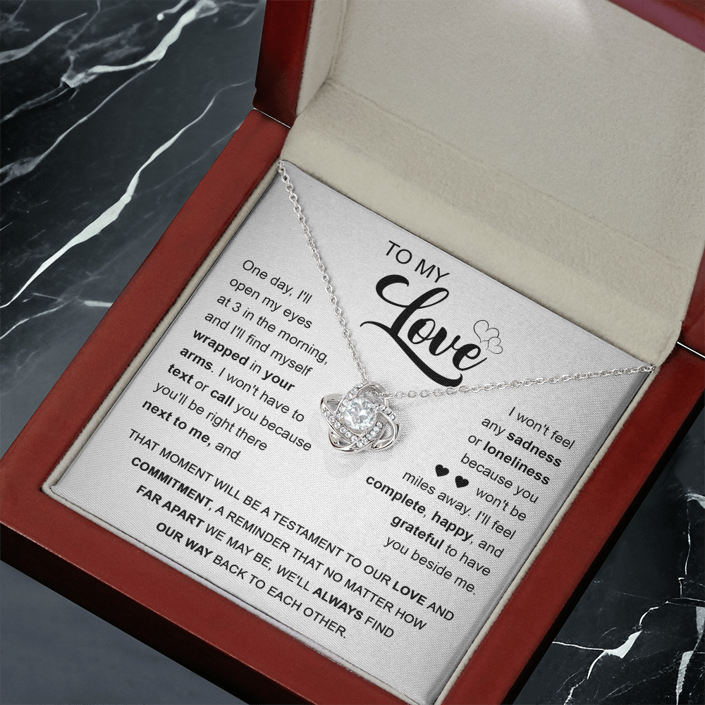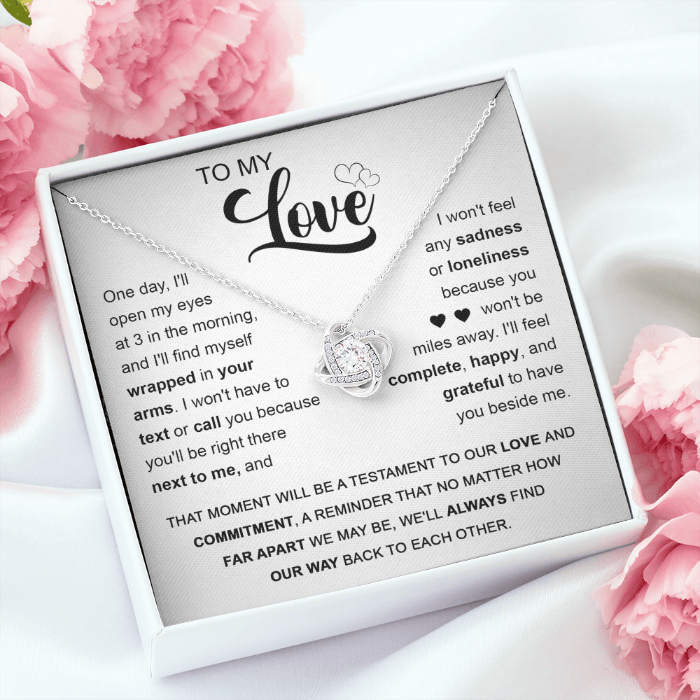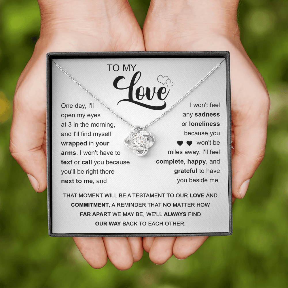 My Love - Find Myself Wrapped In Your Arms - Be Right There Next To Me - Feel Complete, Happy & Grateful - Find Our Way Back To Each Other (White) - Love Knot Necklace LN, SMT0000111LN
