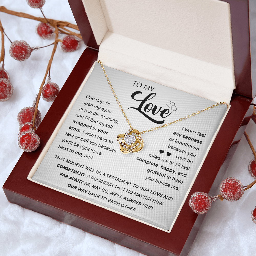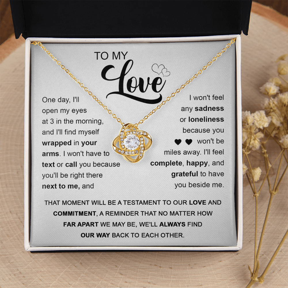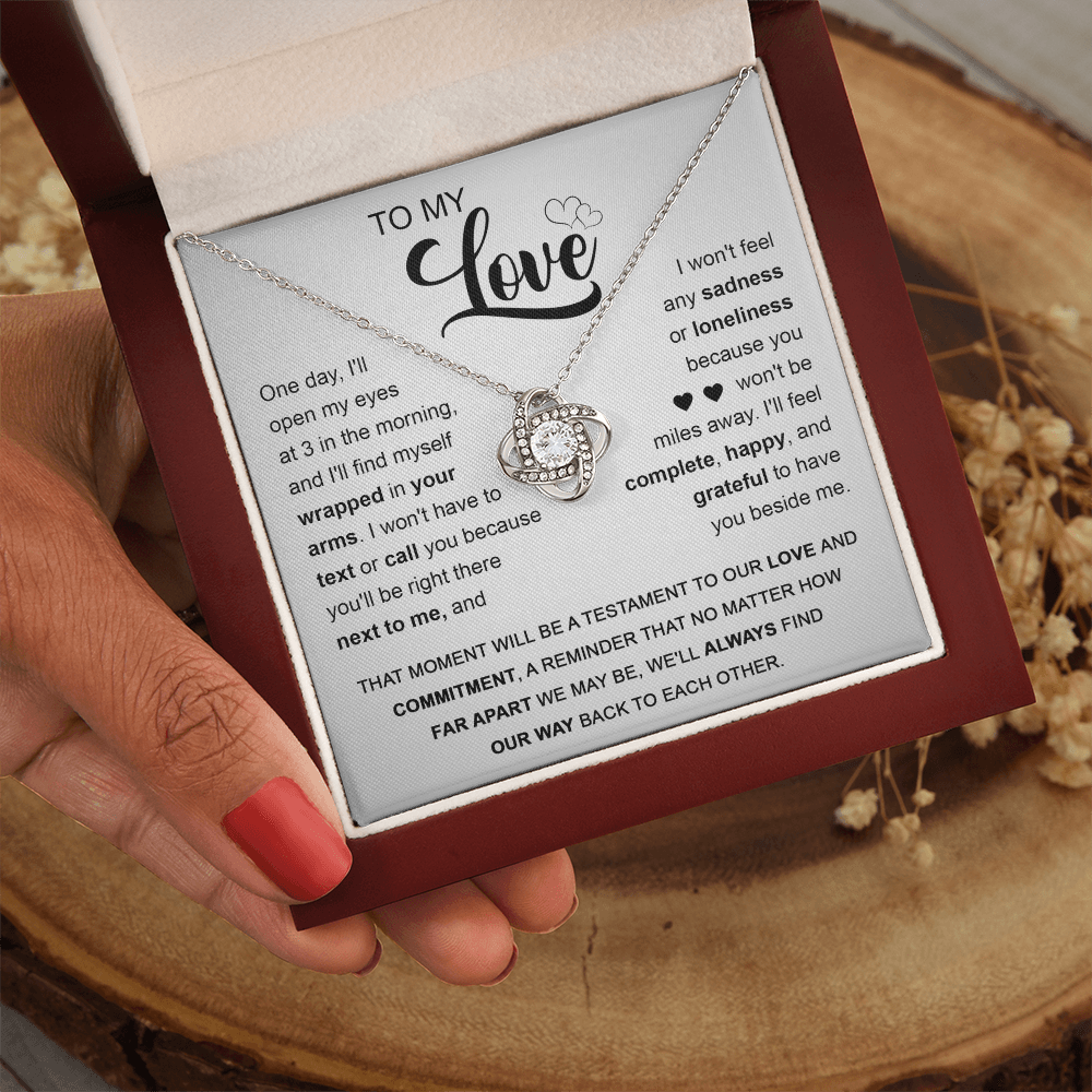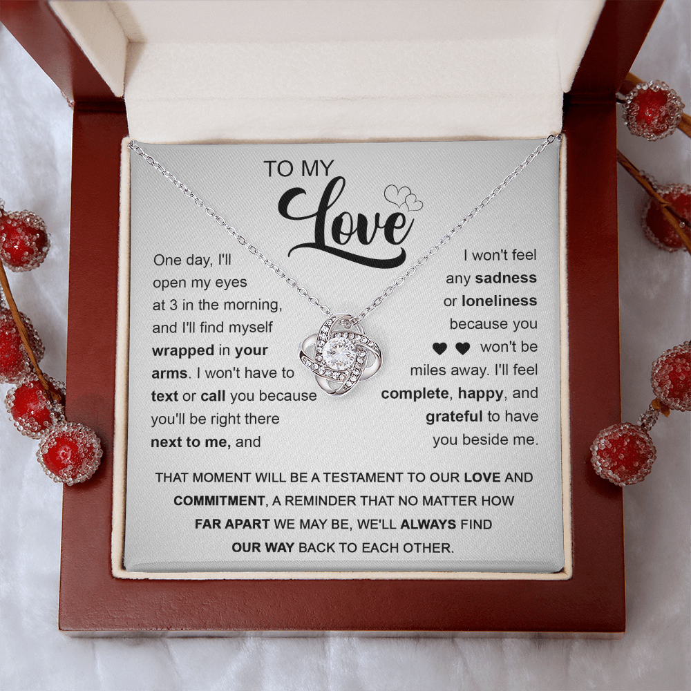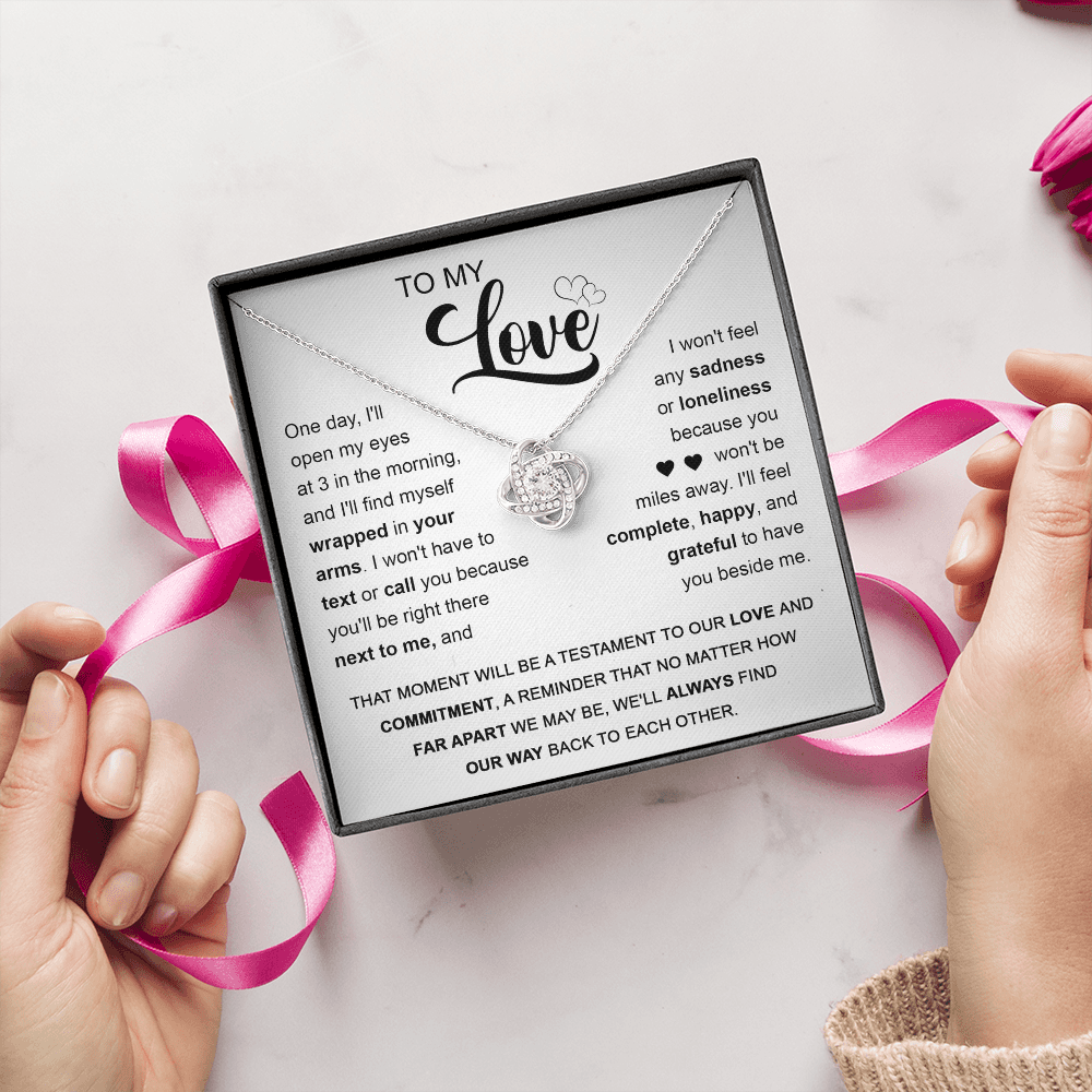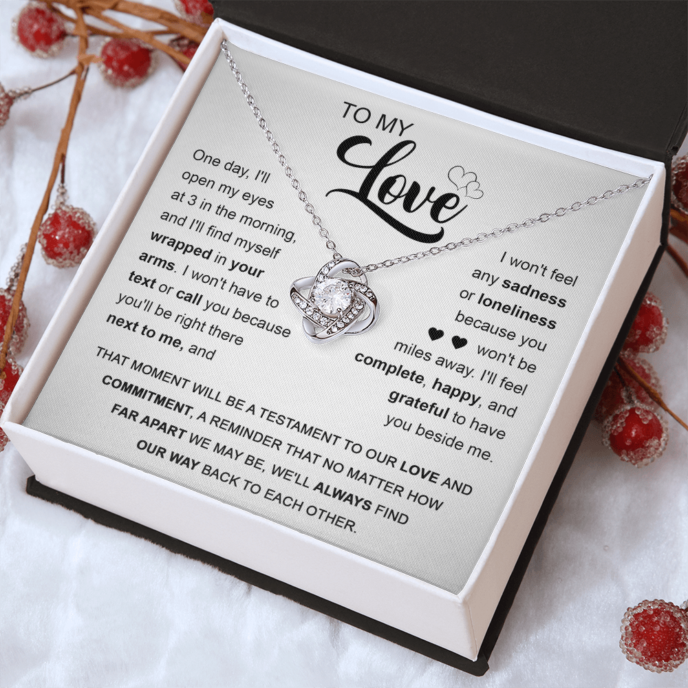 My Love - Find Myself Wrapped In Your Arms - Be Right There Next To Me - Feel Complete, Happy & Grateful - Find Our Way Back To Each Other (White) - Love Knot Necklace LN, SMT0000111LN