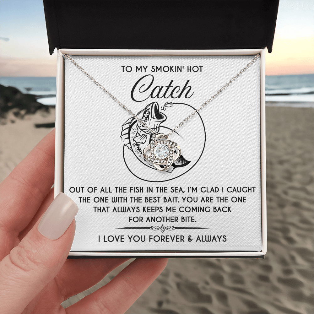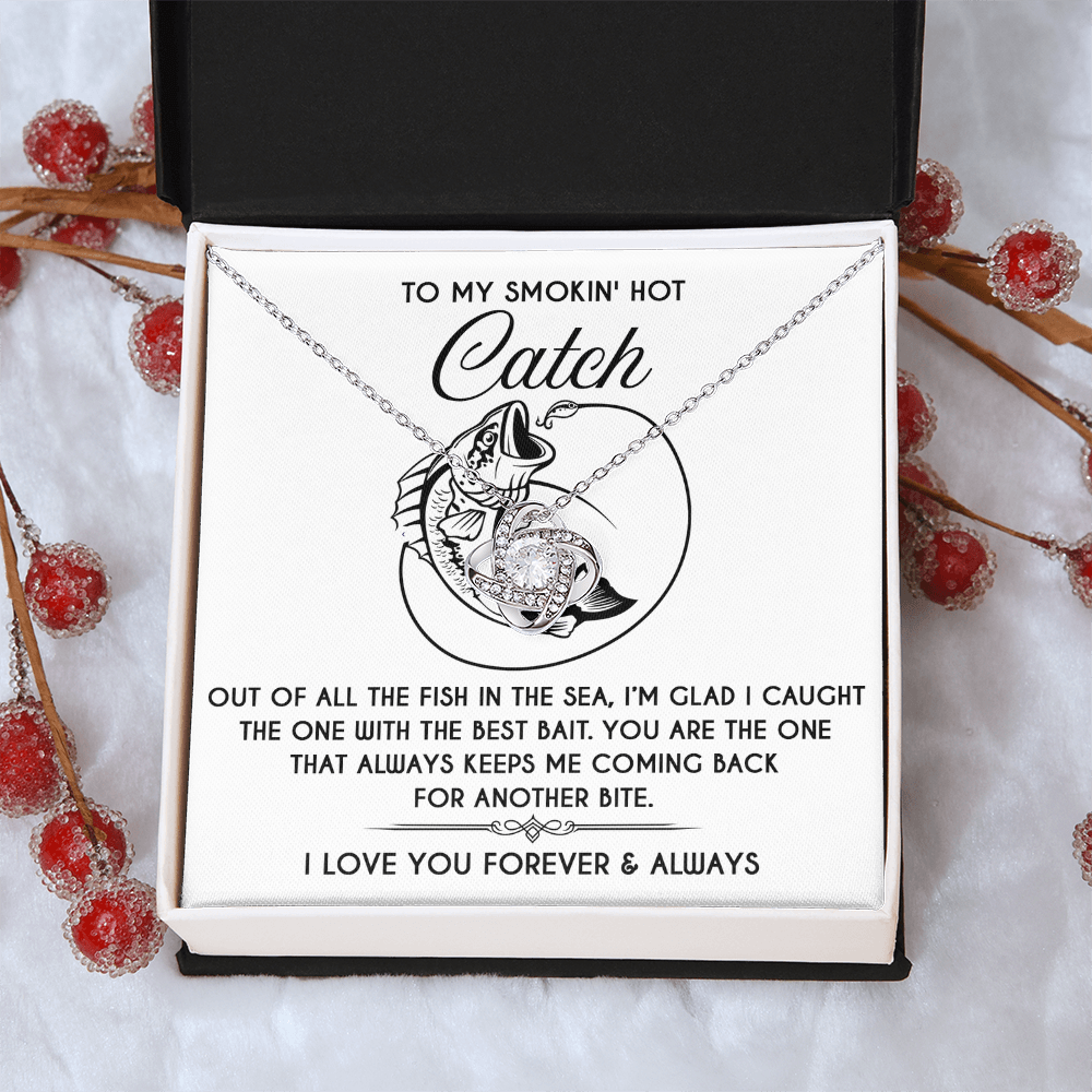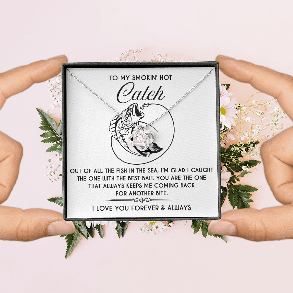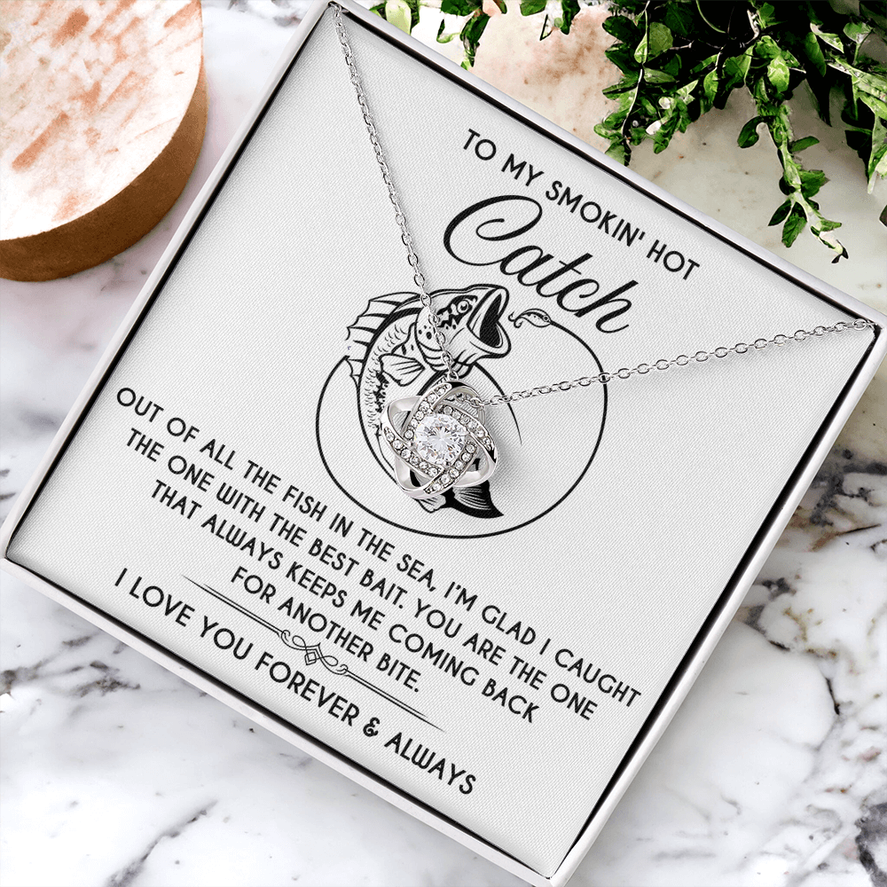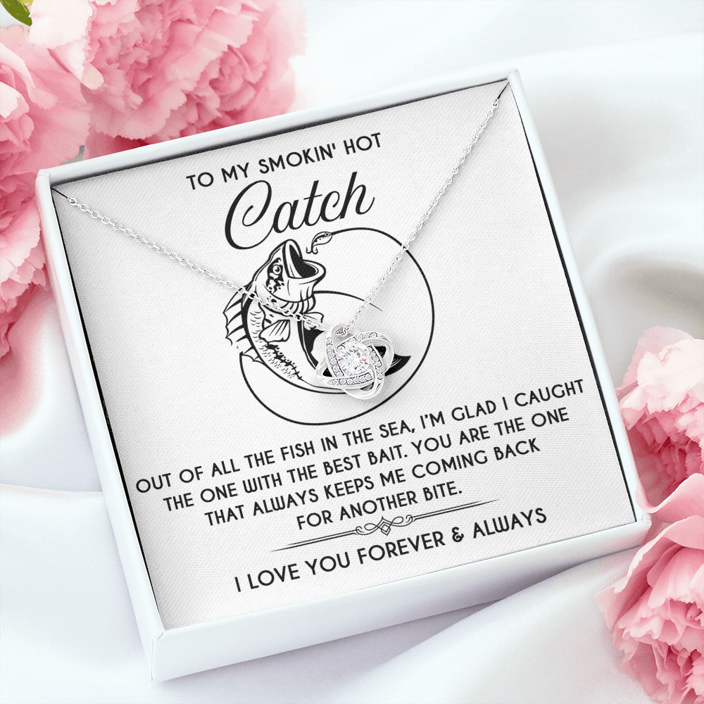 My Smokin' Hot Catch - Of All The Fish In The Sea - Caught The One With The Best Bait - Keeps Me Coming Back For Another Bite - Love You Forever And Always - Love Knot Necklace LN, SMT0000088LN