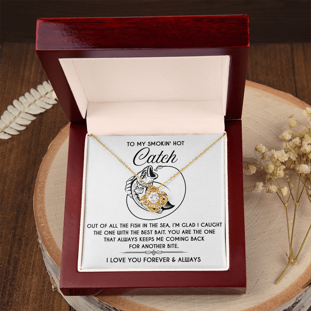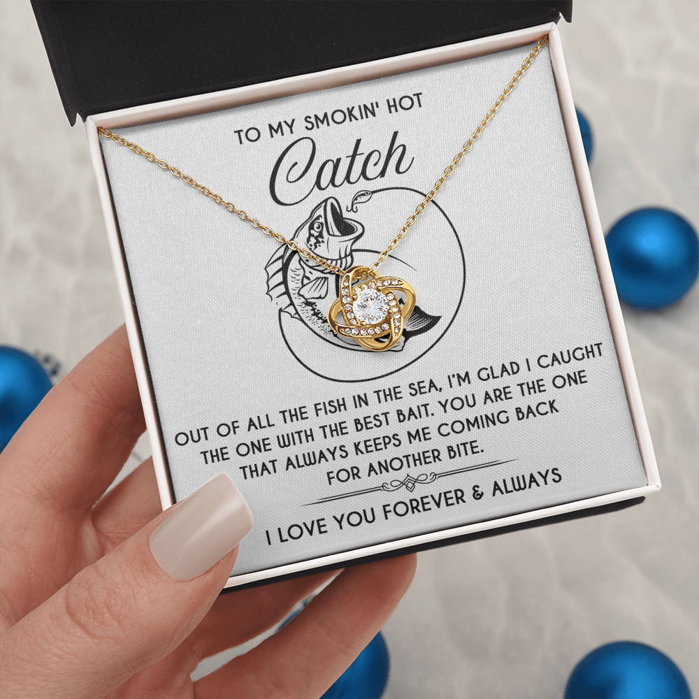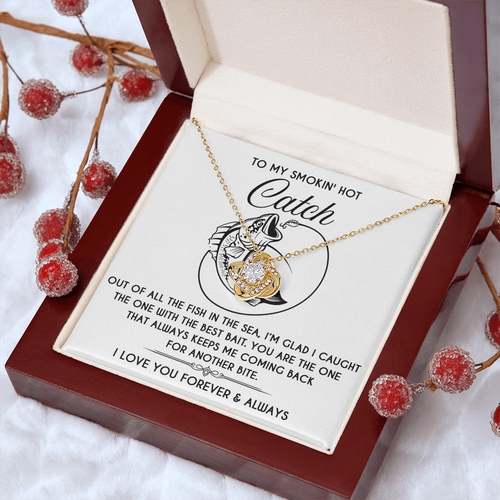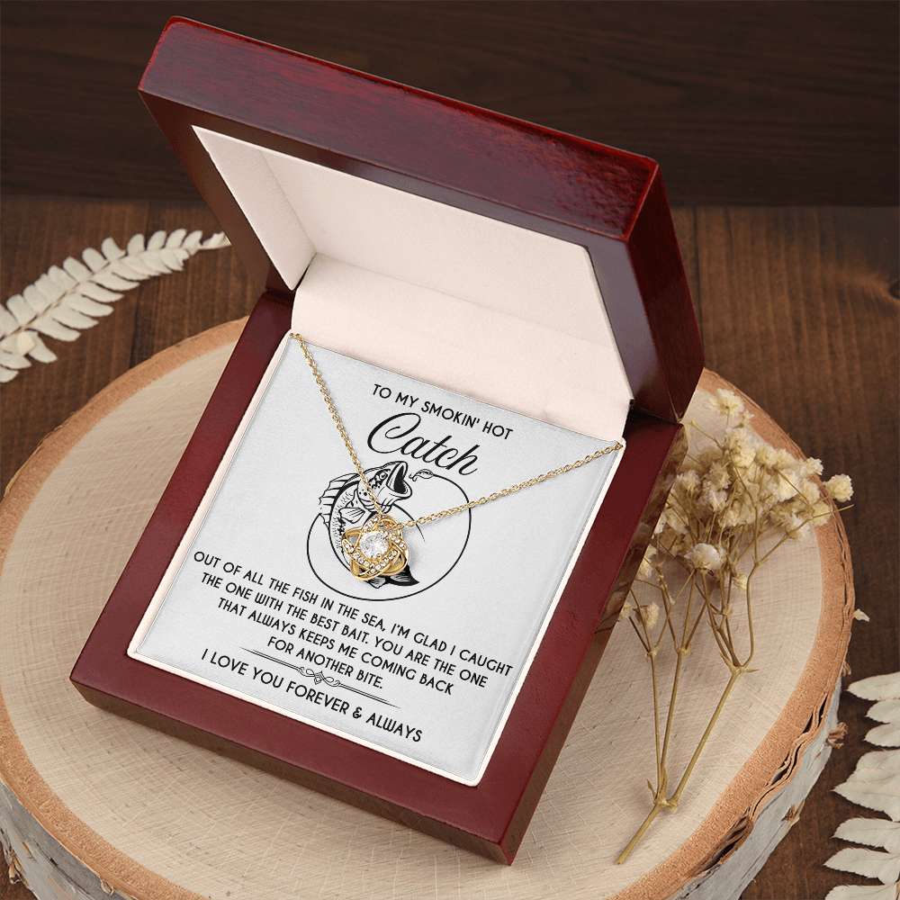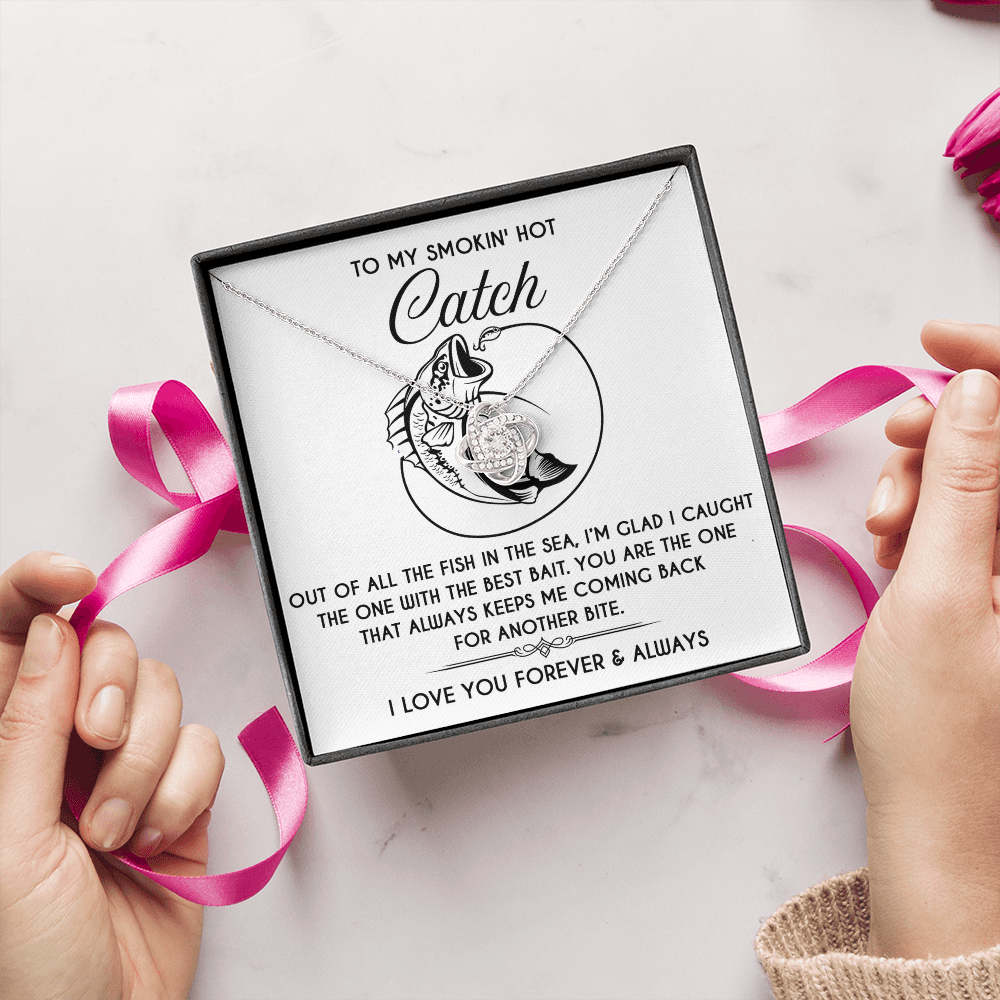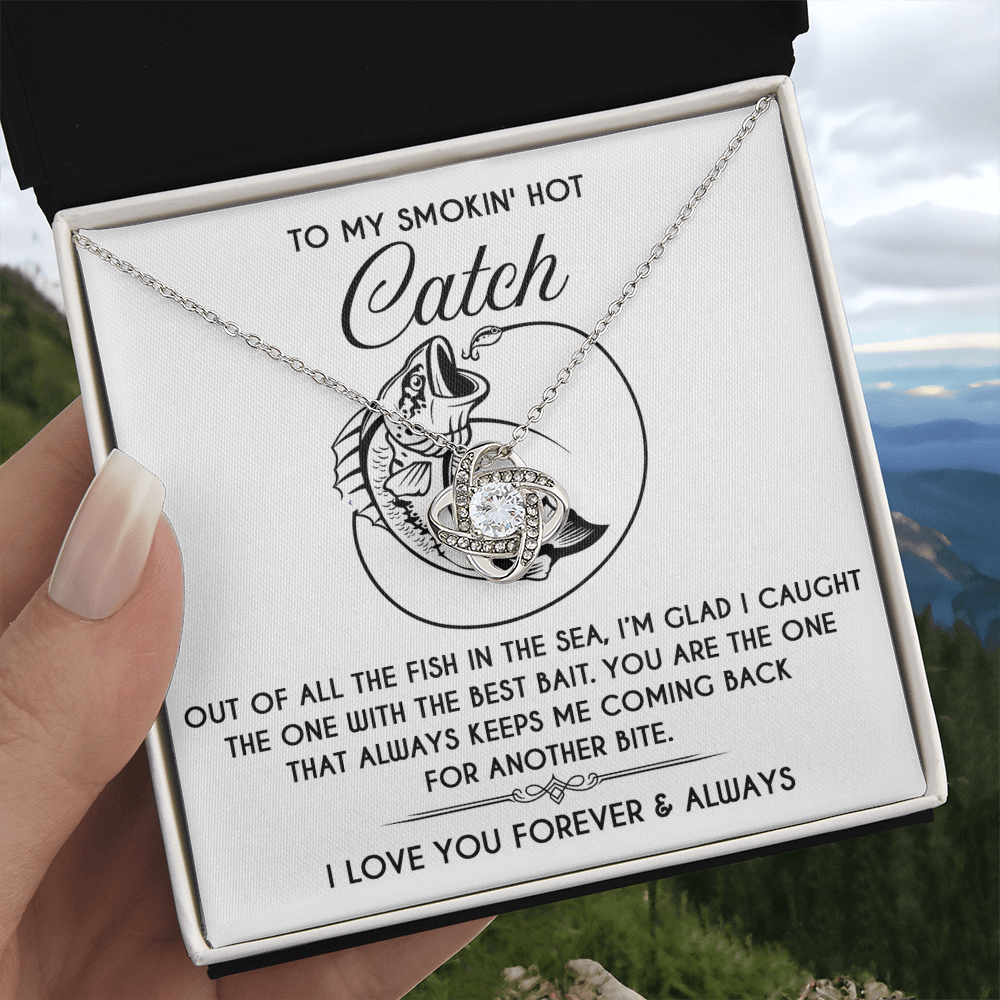 My Smokin' Hot Catch - Of All The Fish In The Sea - Caught The One With The Best Bait - Keeps Me Coming Back For Another Bite - Love You Forever And Always - Love Knot Necklace LN, SMT0000088LN