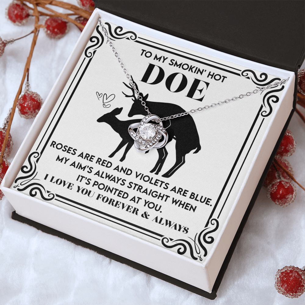 My Smokin' Hot Doe - Roses Are Red, Violets Are Blue - My Aim Is Always Straight, When It's Pointed At You - I Love You Forever And Always - Love Knot Necklace LN, SMT0000104LN