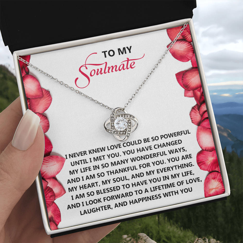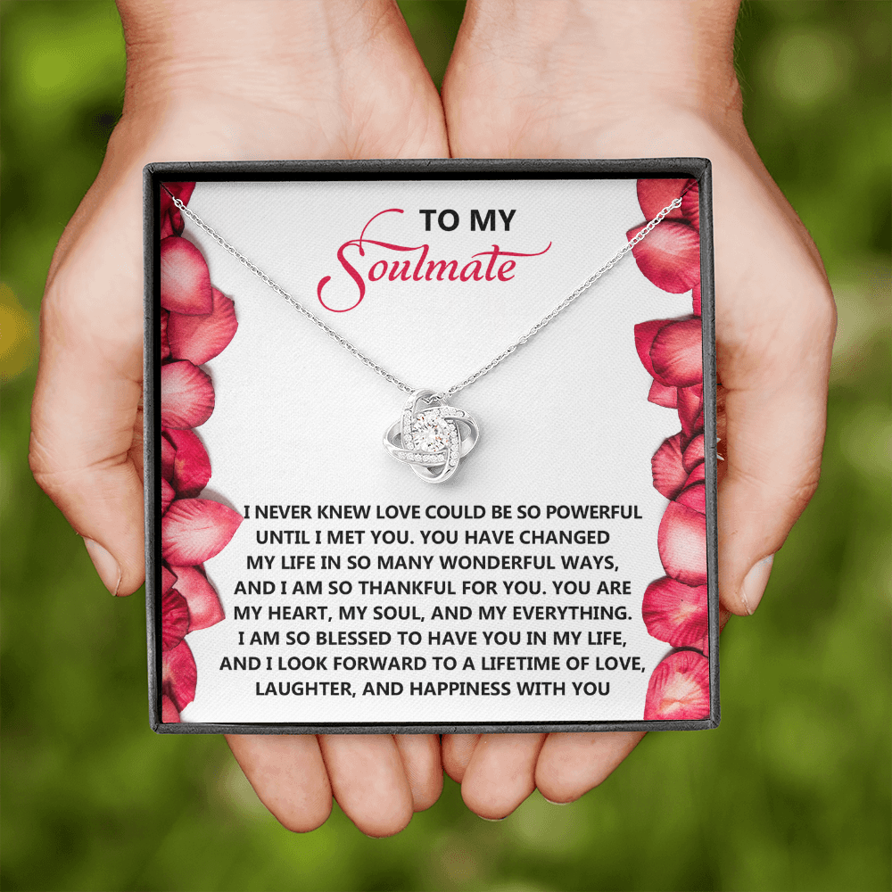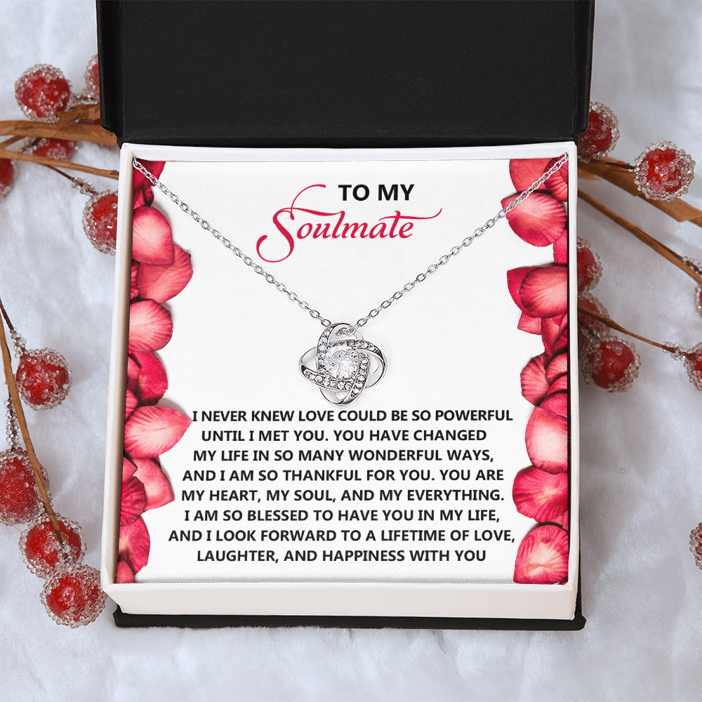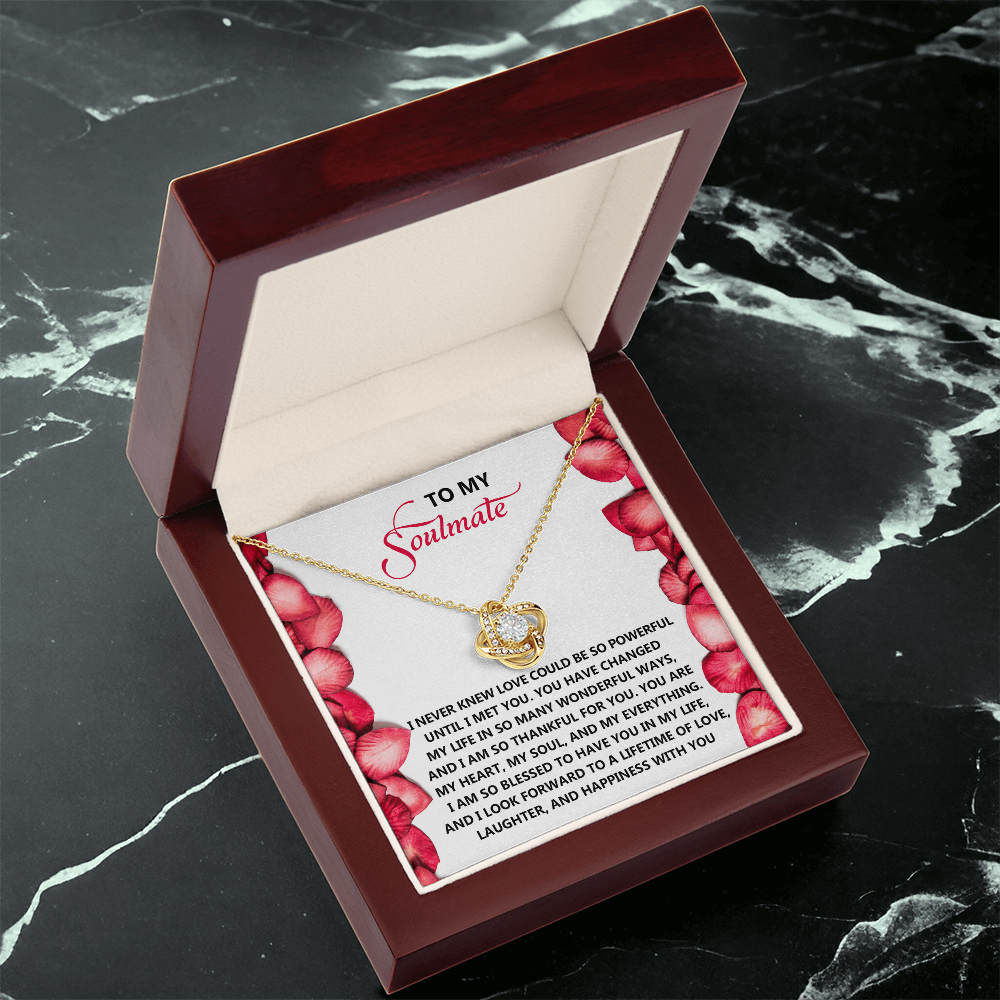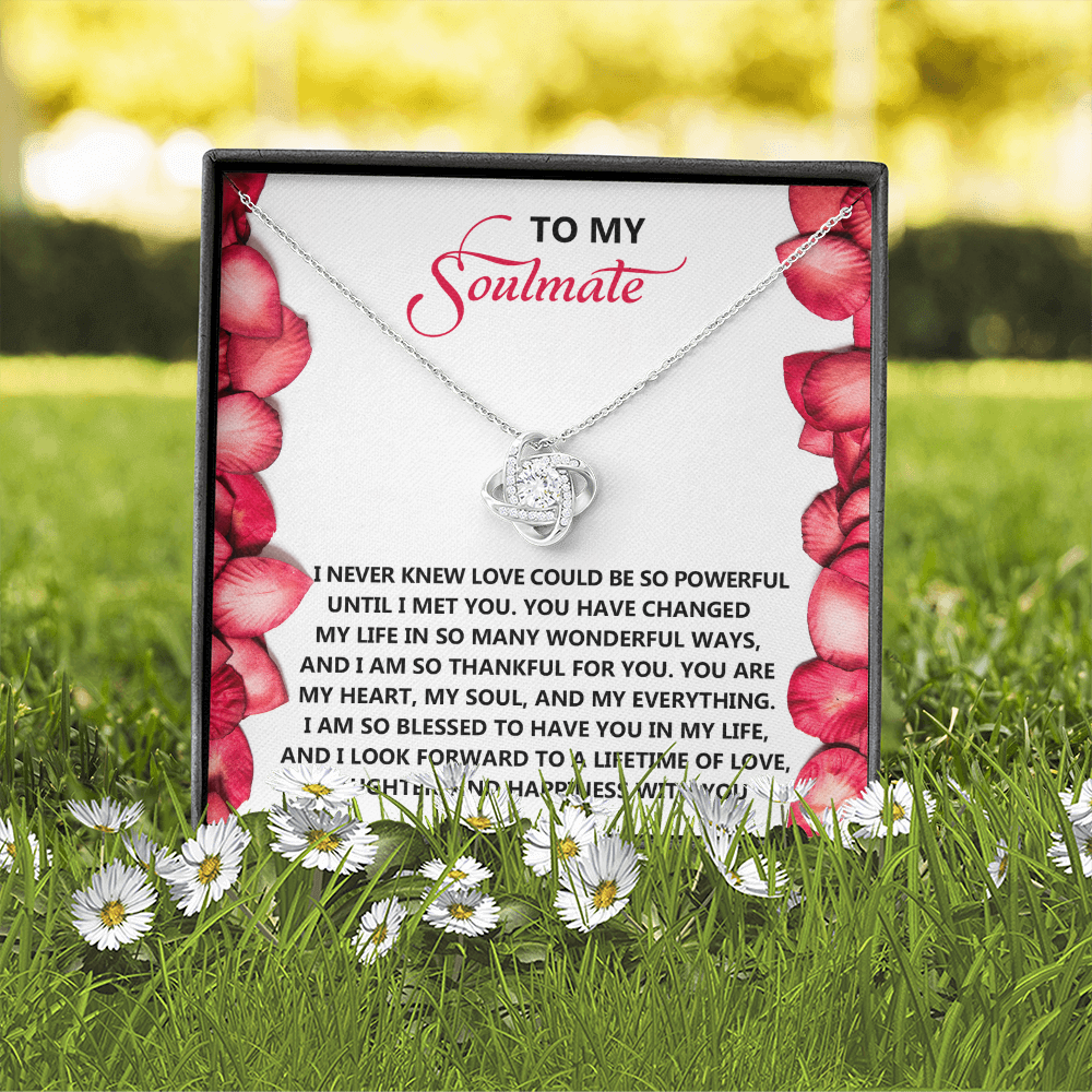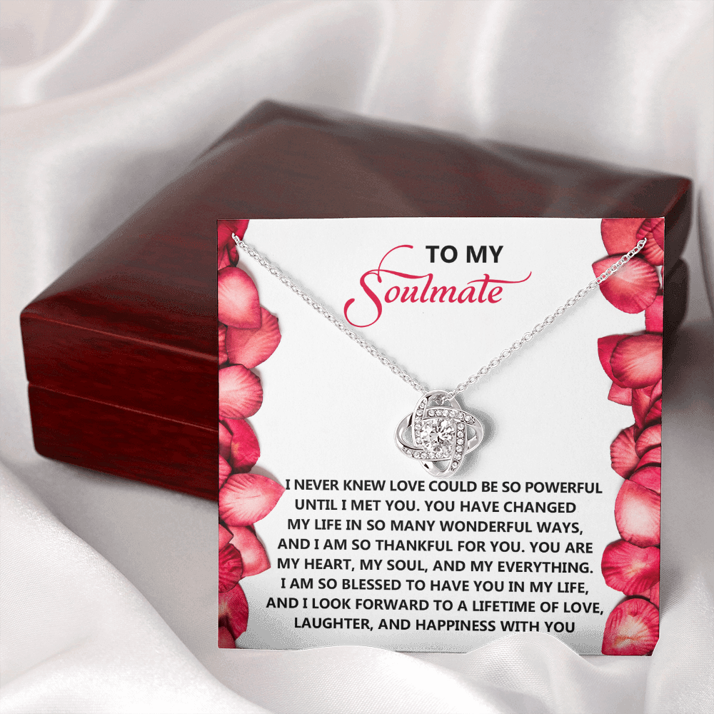 My Soulmate - Never Knew Love Could Be So Powerful Until I Met You - Changed My Life In So Many Wonderful Ways - You're My Heart, My Soul And My Everything - Love Knot Necklace LN, SMT0000109LN
