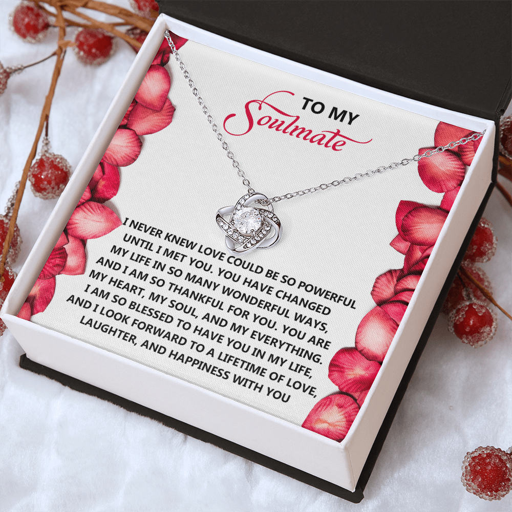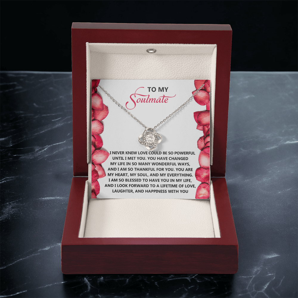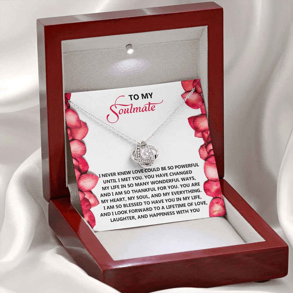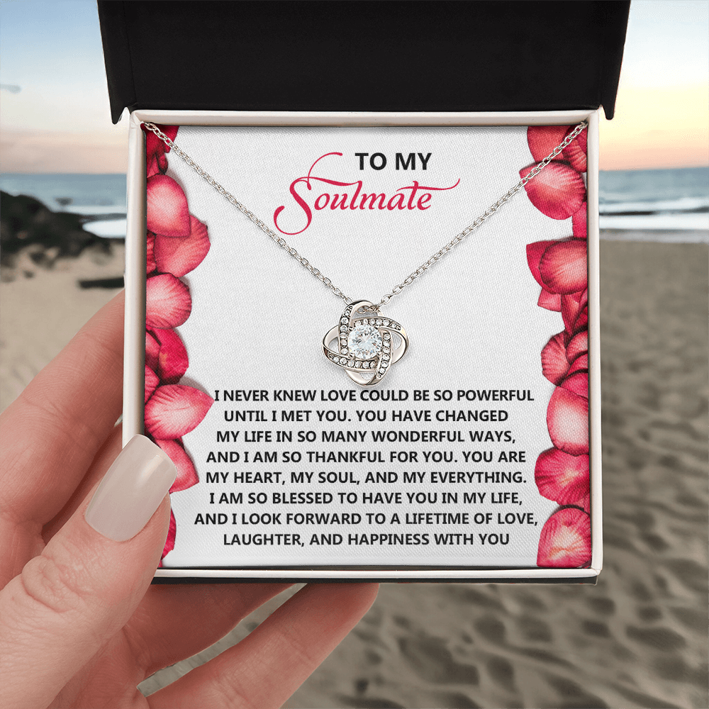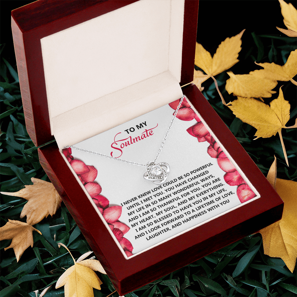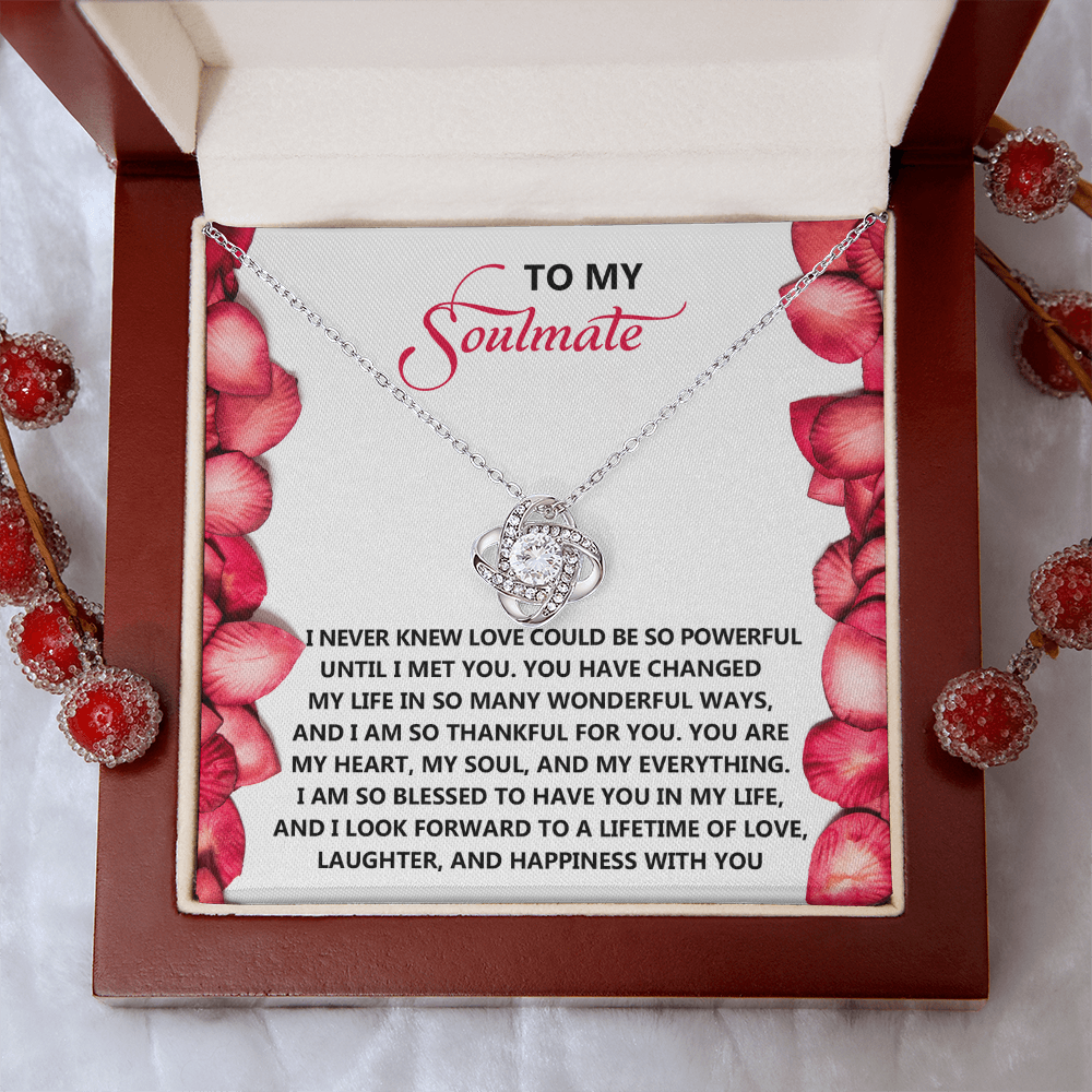 My Soulmate - Never Knew Love Could Be So Powerful Until I Met You - Changed My Life In So Many Wonderful Ways - You're My Heart, My Soul And My Everything - Love Knot Necklace LN, SMT0000109LN