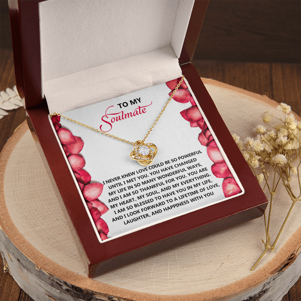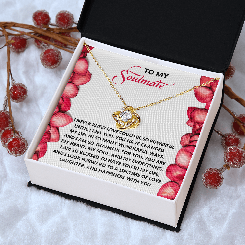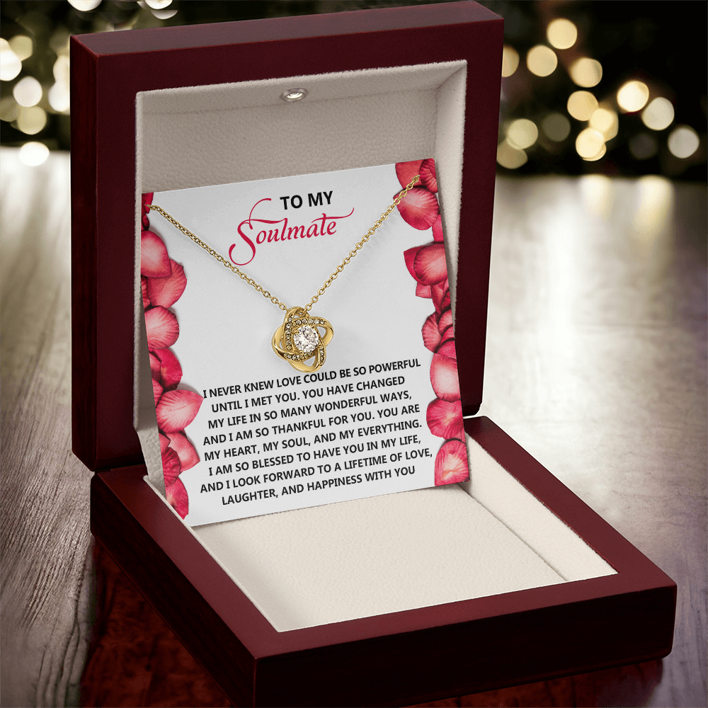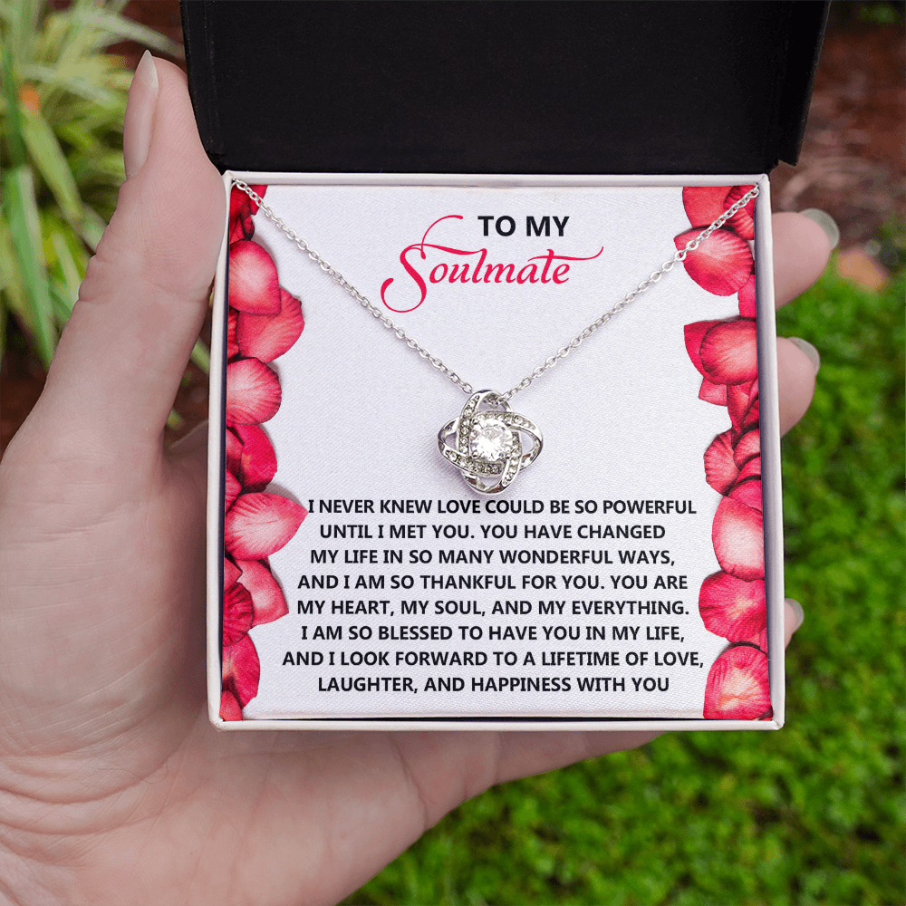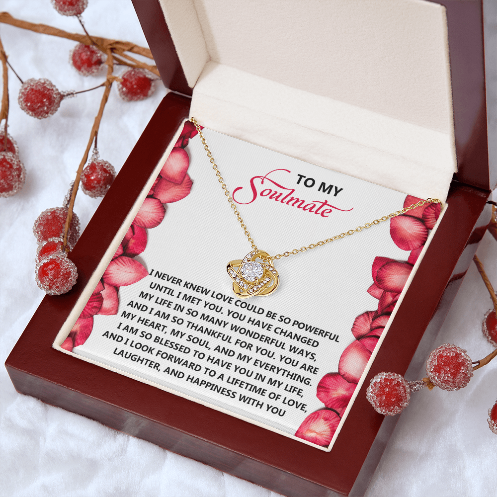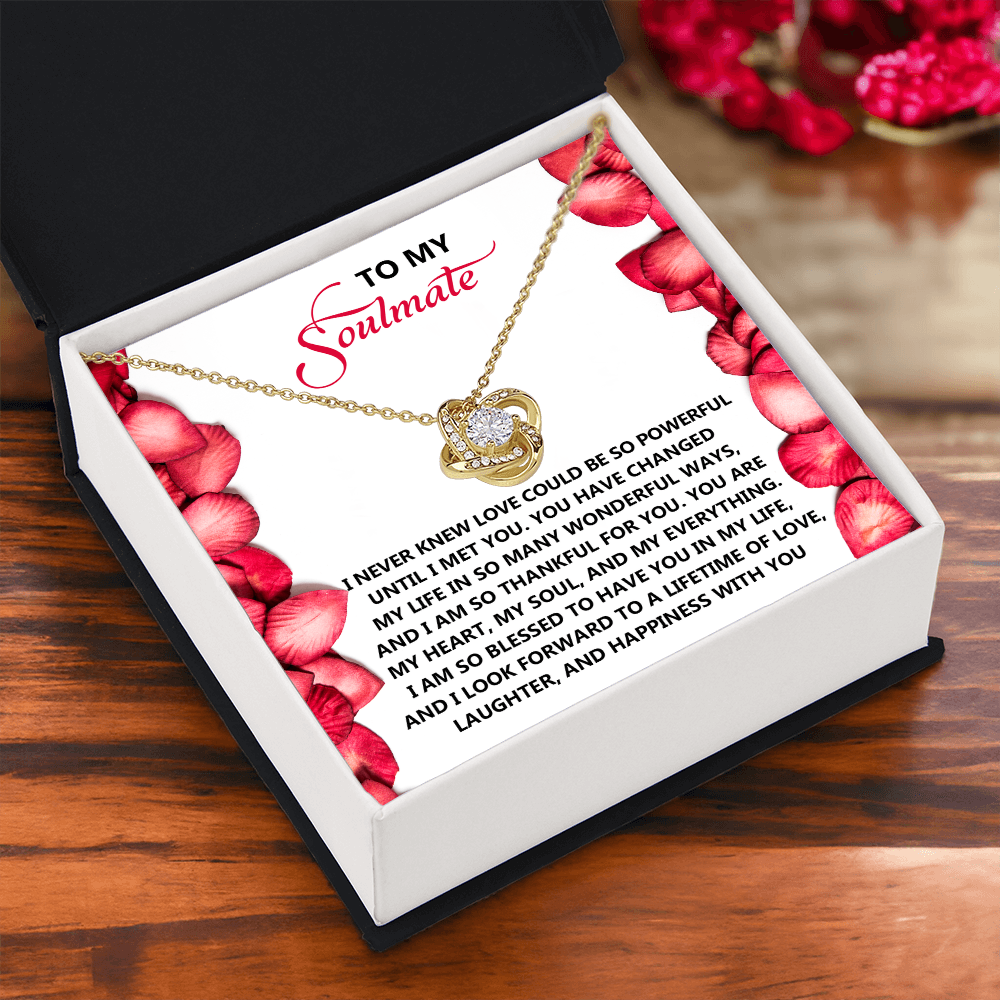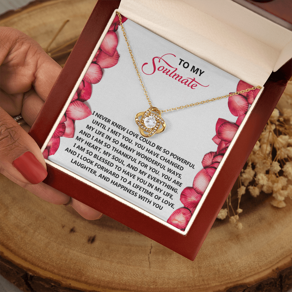 My Soulmate - Never Knew Love Could Be So Powerful Until I Met You - Changed My Life In So Many Wonderful Ways - You're My Heart, My Soul And My Everything - Love Knot Necklace LN, SMT0000109LN