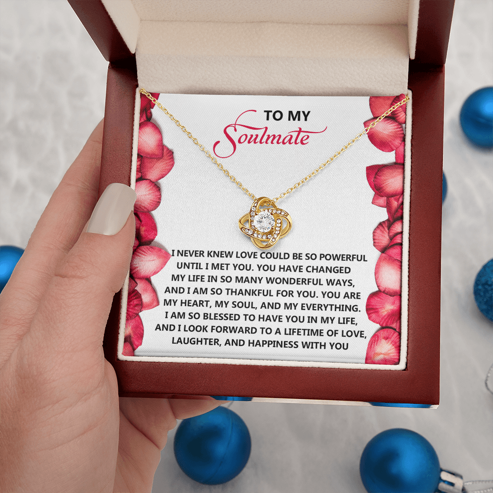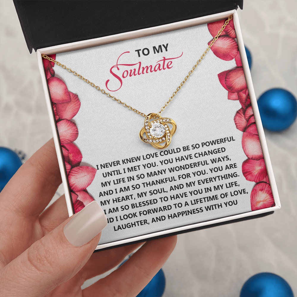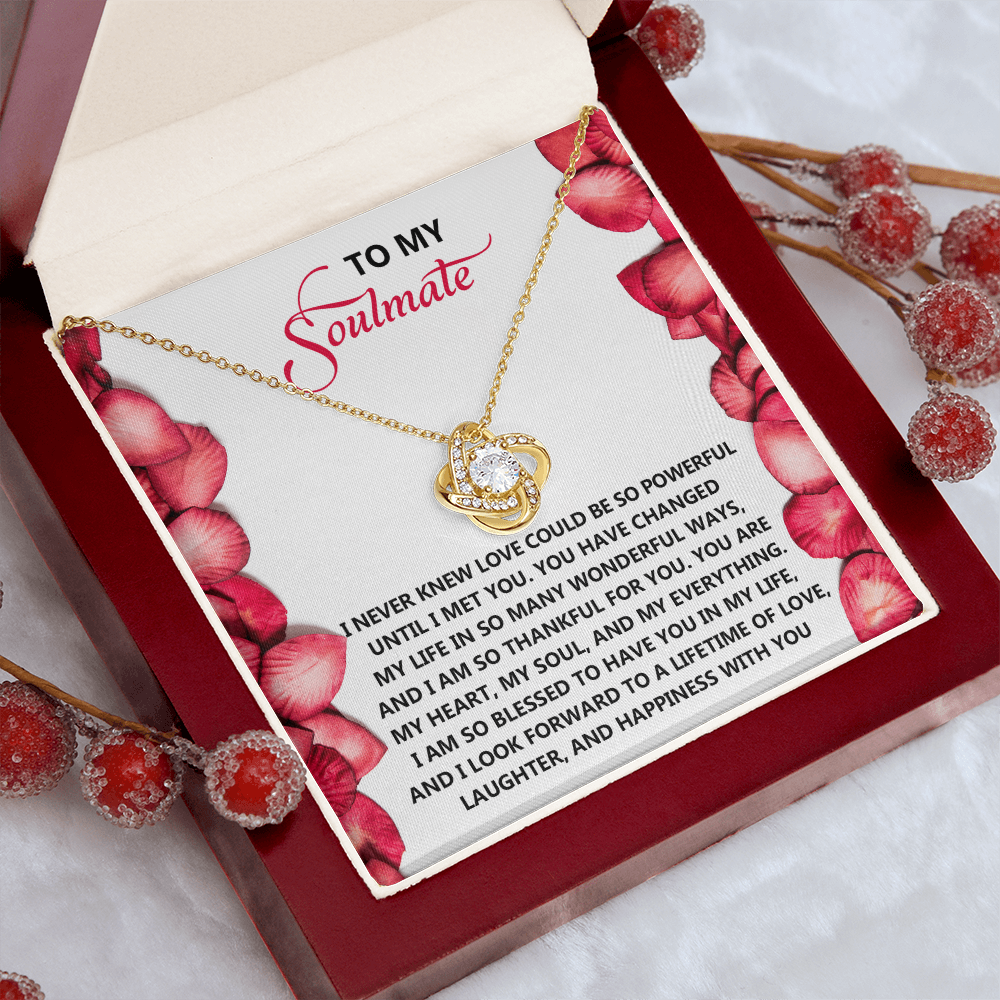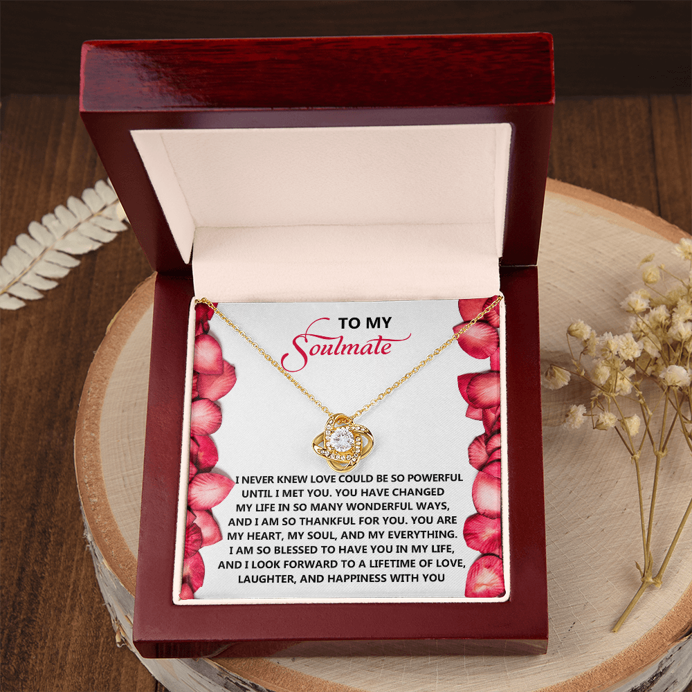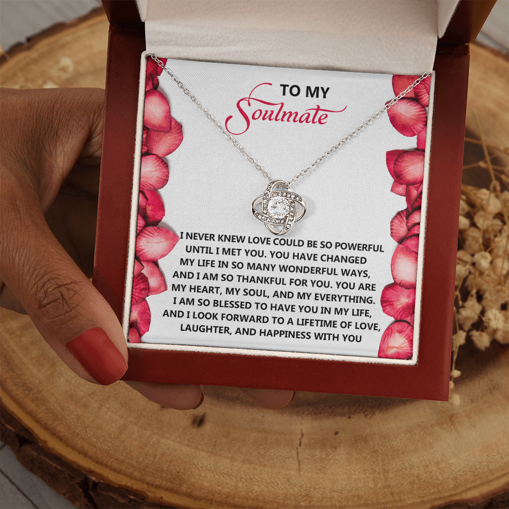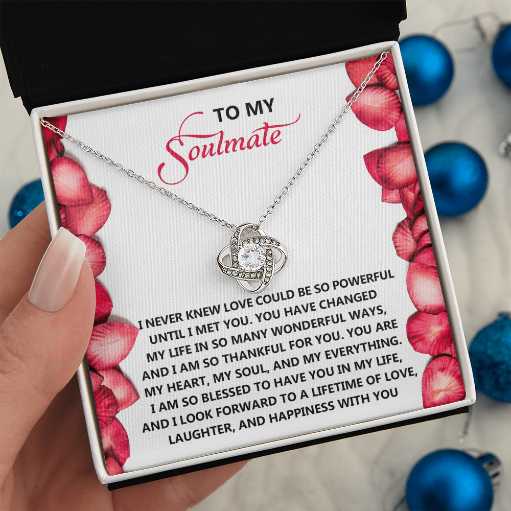 My Soulmate - Never Knew Love Could Be So Powerful Until I Met You - Changed My Life In So Many Wonderful Ways - You're My Heart, My Soul And My Everything - Love Knot Necklace LN, SMT0000109LN