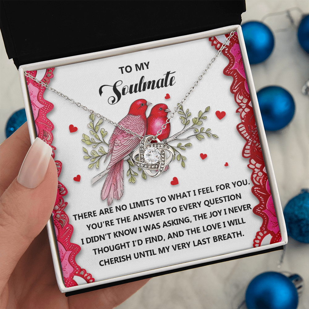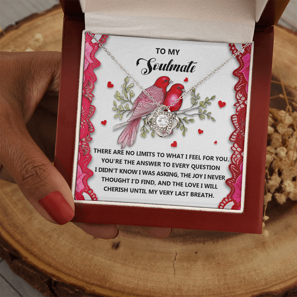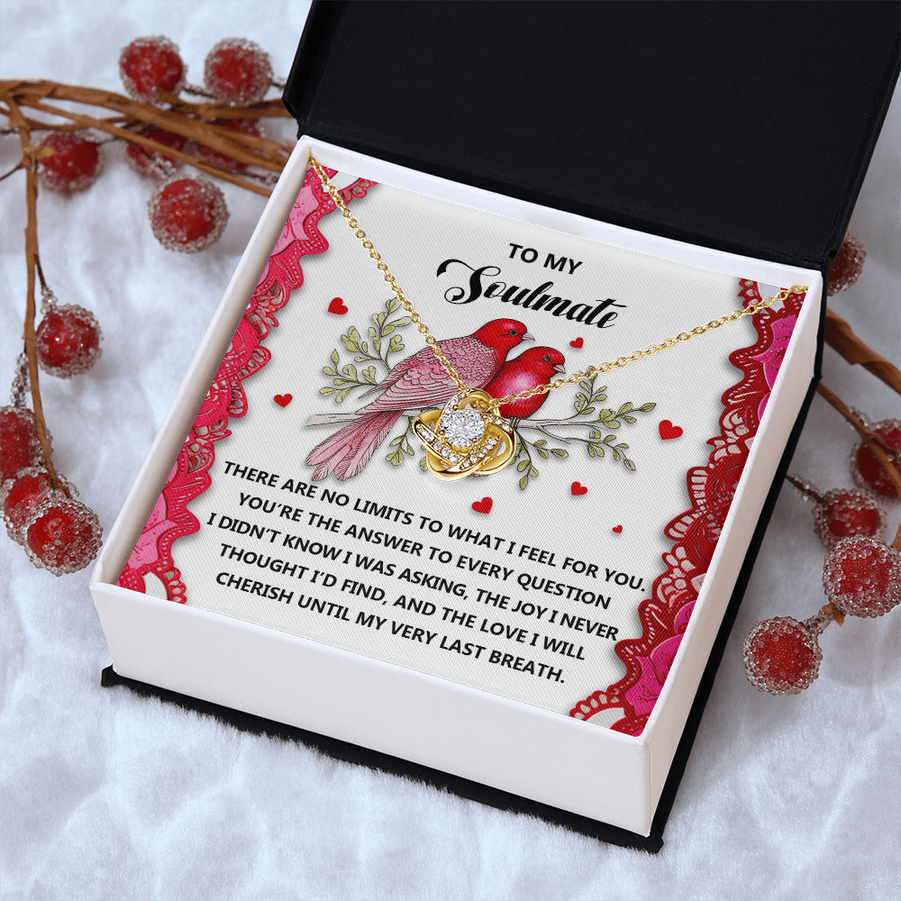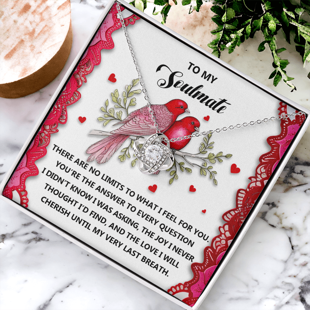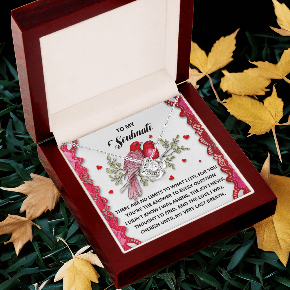 My Soulmate - No Limits To What I Feel For You - My Answer To Every Question - The Joy I Never Thought I'd Find - Love I Will Cherish Until My Last Breath - Love Knot Necklace LN, SMT0000093LN
