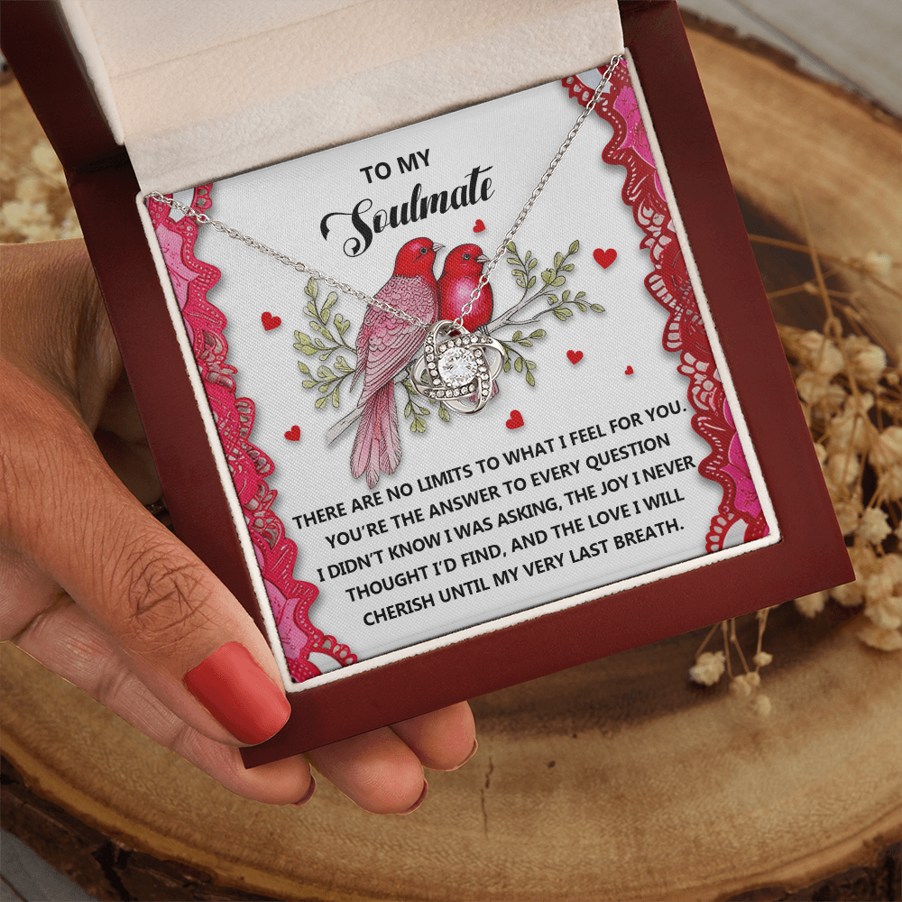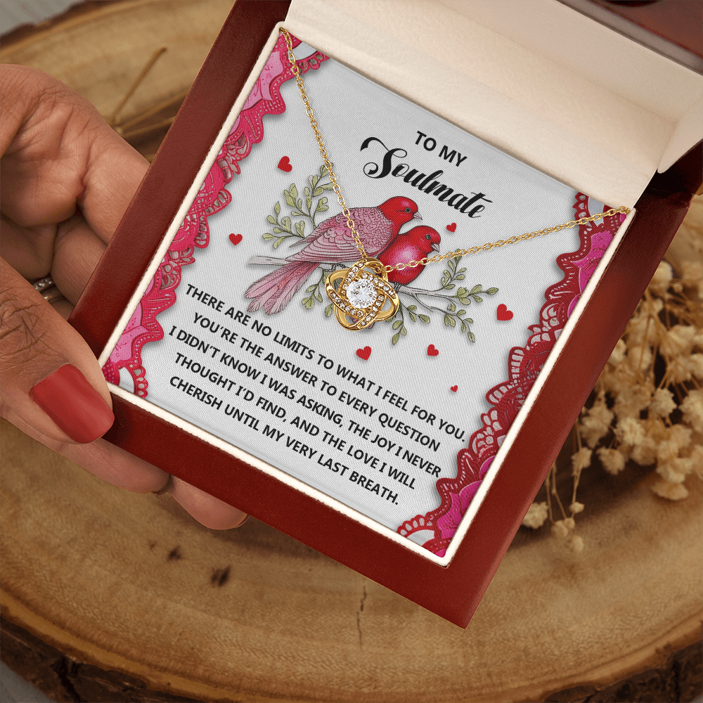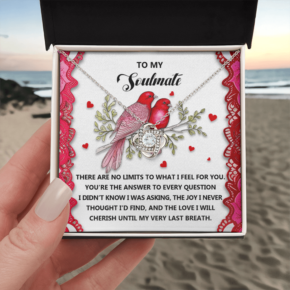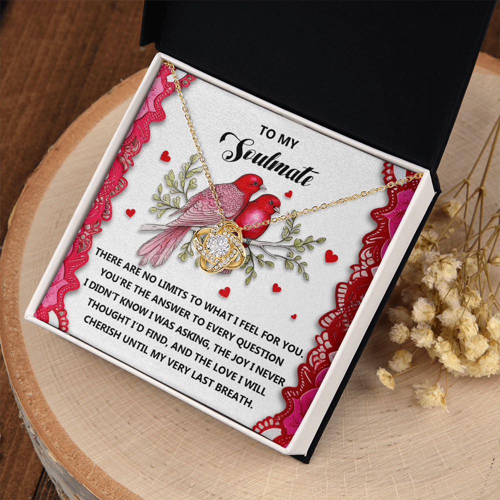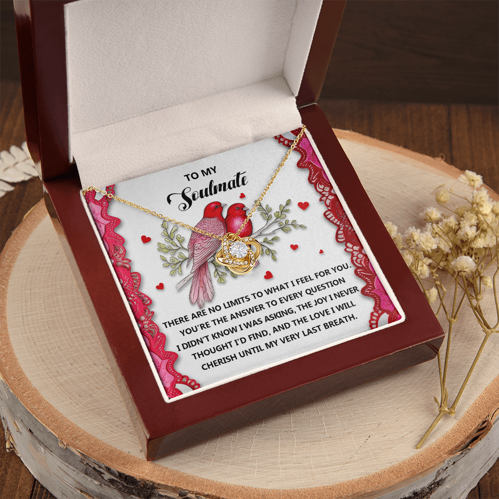 My Soulmate - No Limits To What I Feel For You - My Answer To Every Question - The Joy I Never Thought I'd Find - Love I Will Cherish Until My Last Breath - Love Knot Necklace LN, SMT0000093LN