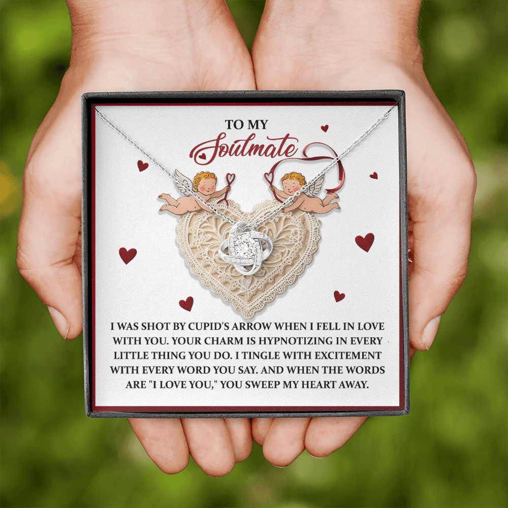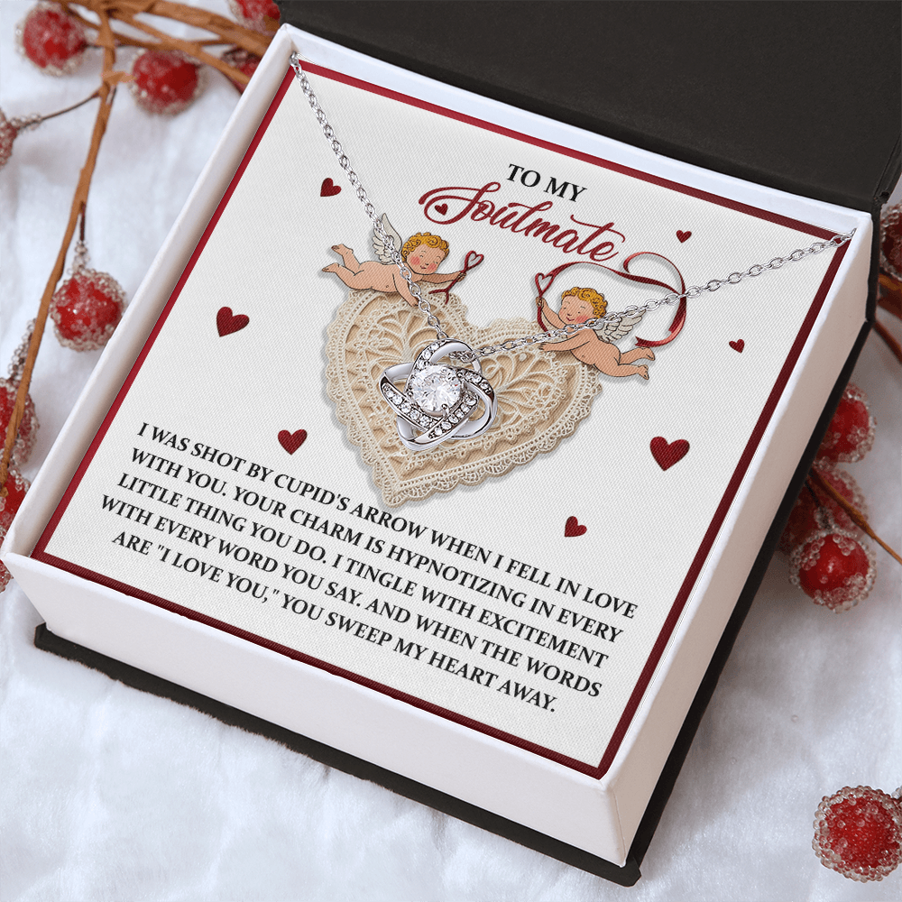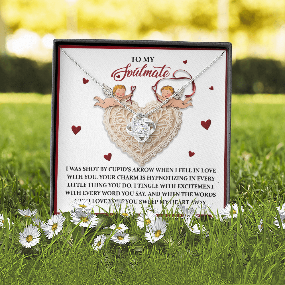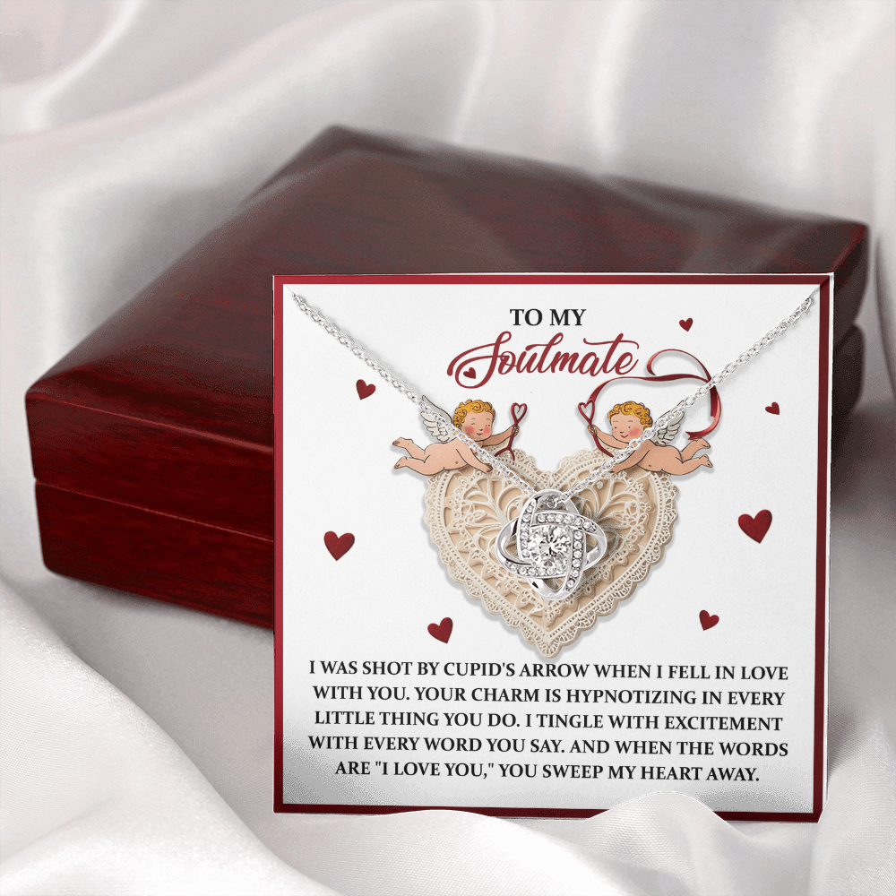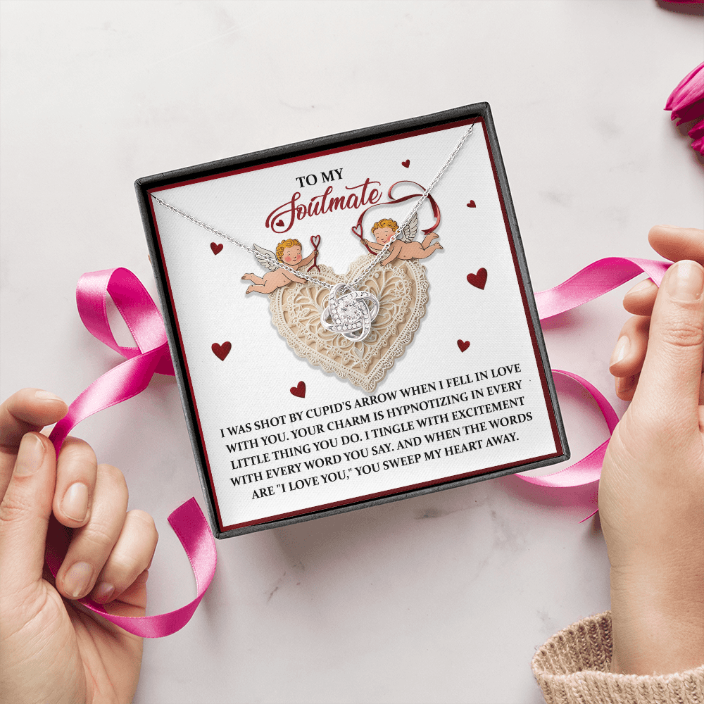 My Soulmate - Shot By Cupid's Arrow When I Fell In Love With You - Your Charm Is Hypnotizing - Tingle With Excitement With Every Words You Say - When The Words Are I Love You, You Sweep Me Away - Love Knot Necklace LN, SMT0000035LN