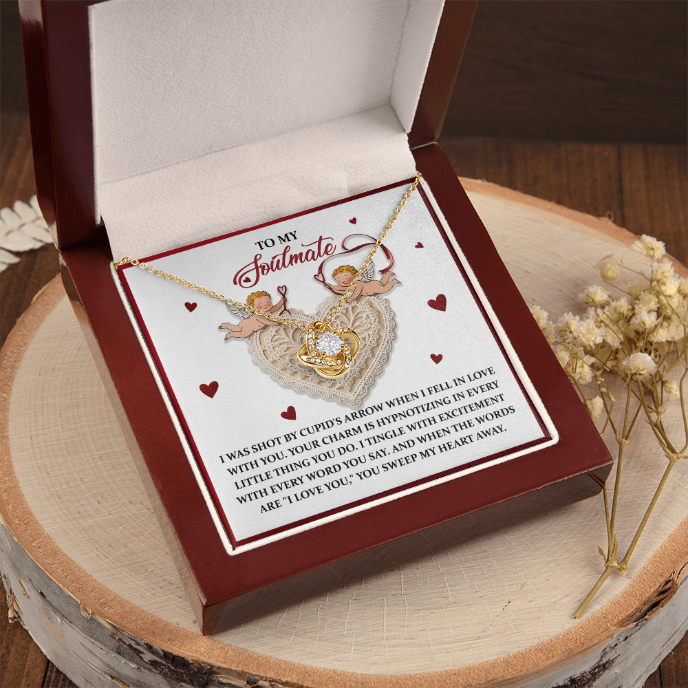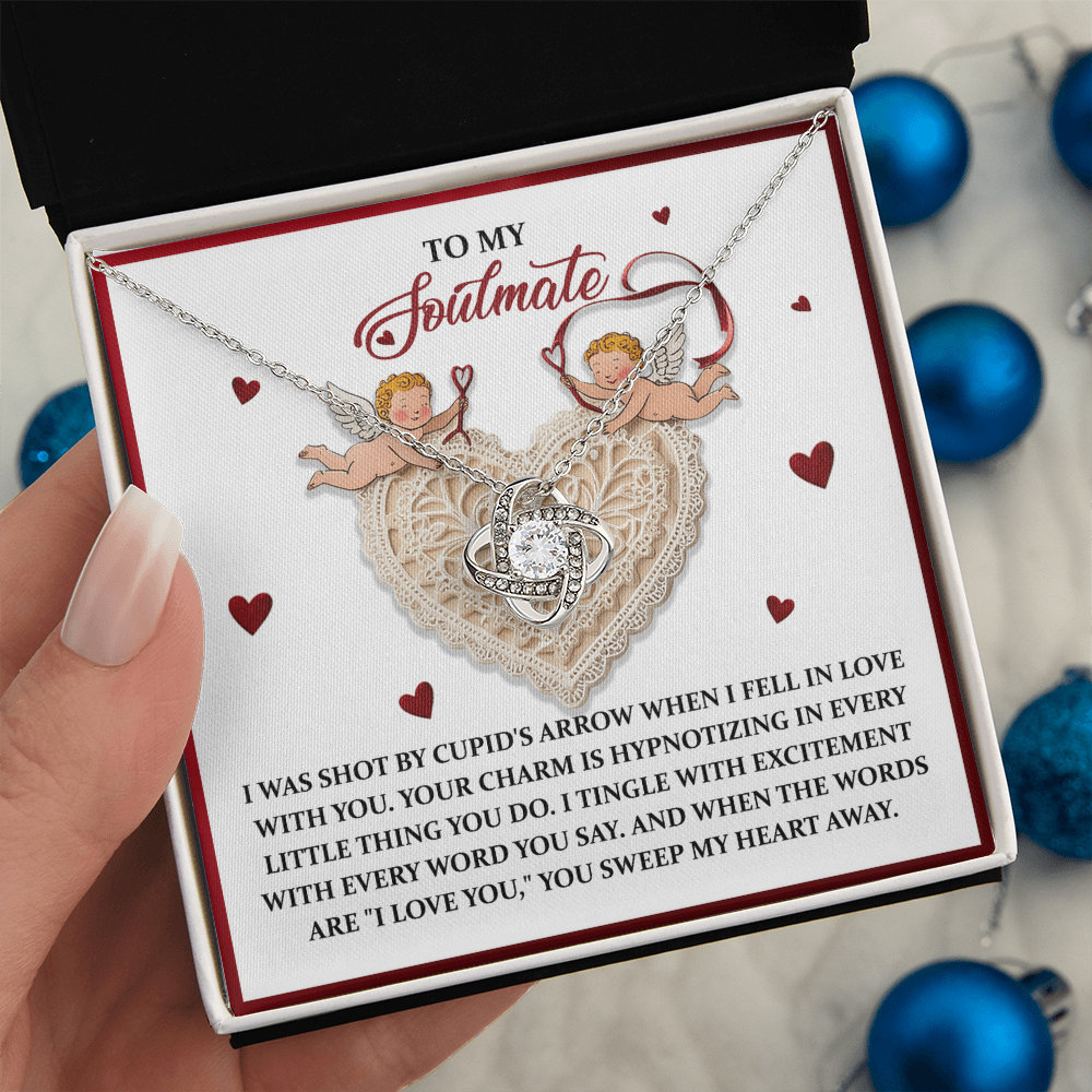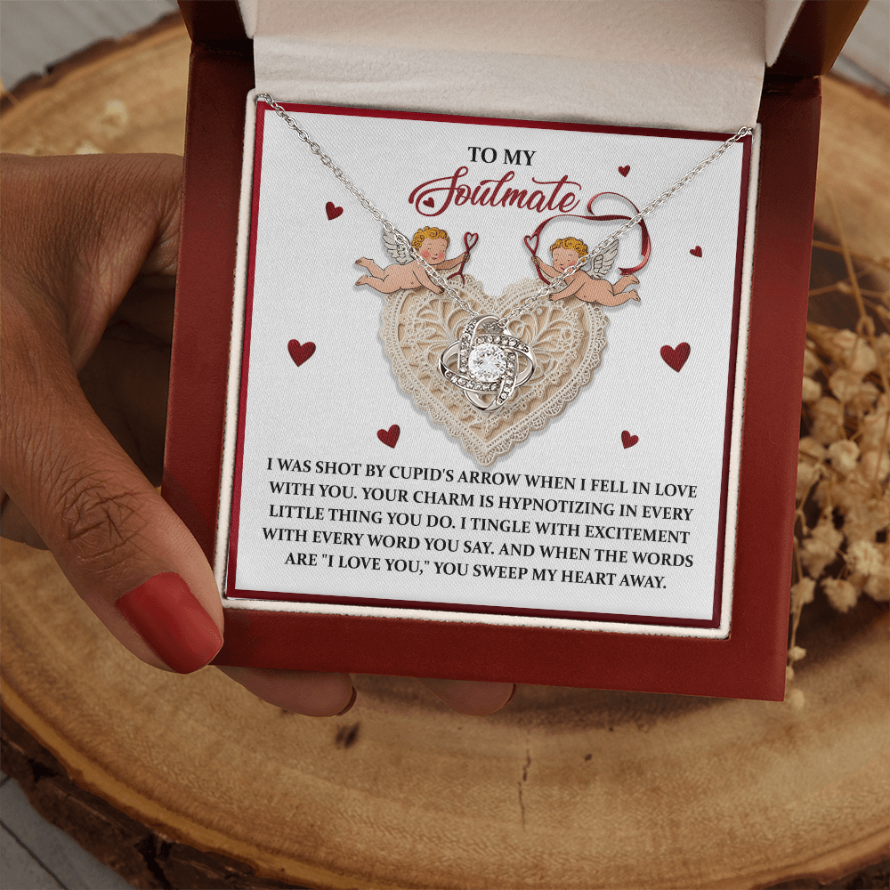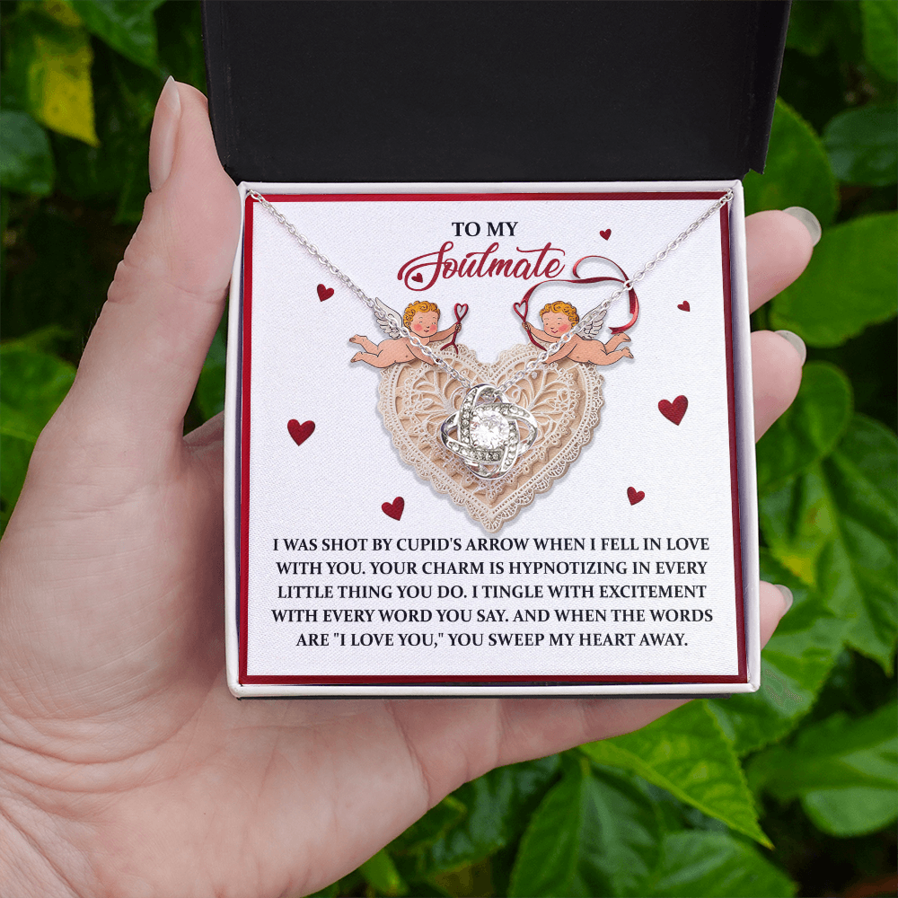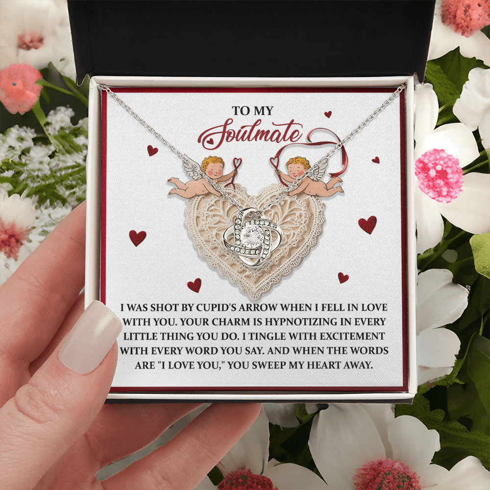 My Soulmate - Shot By Cupid's Arrow When I Fell In Love With You - Your Charm Is Hypnotizing - Tingle With Excitement With Every Words You Say - When The Words Are I Love You, You Sweep Me Away - Love Knot Necklace LN, SMT0000035LN