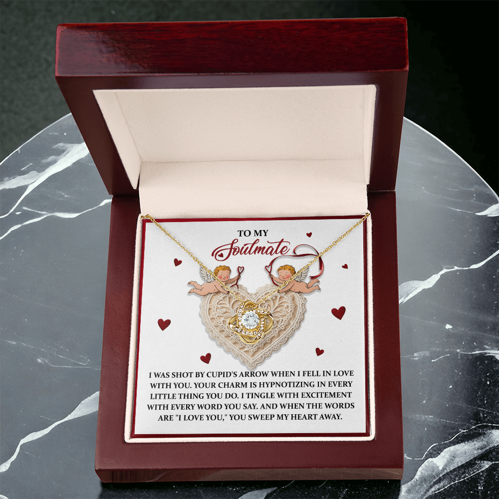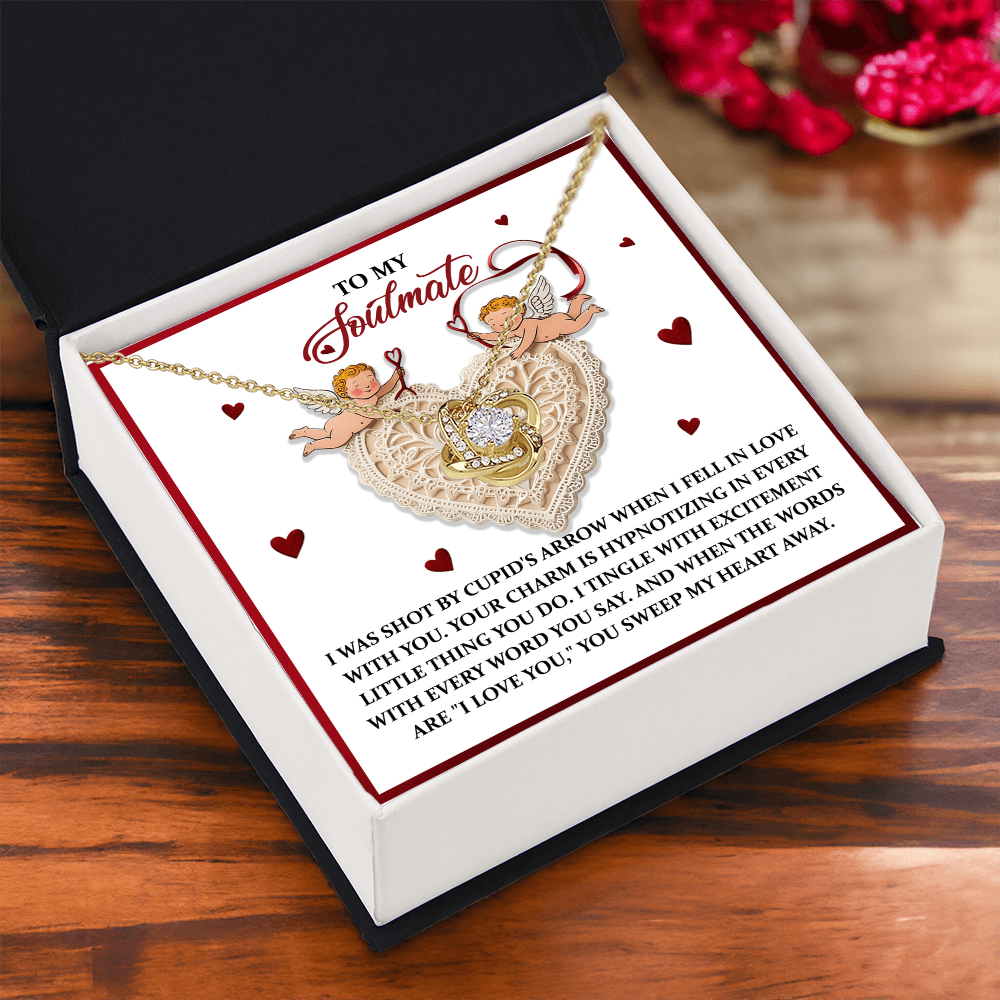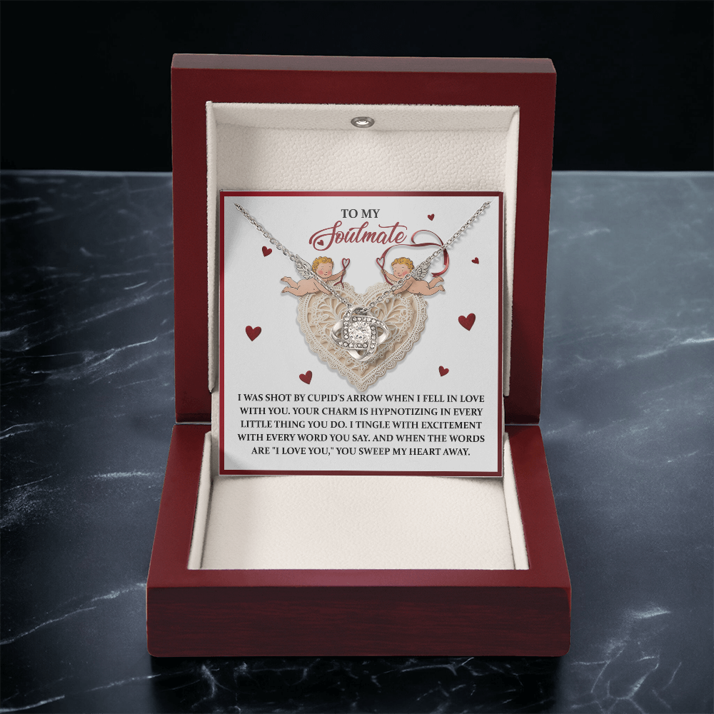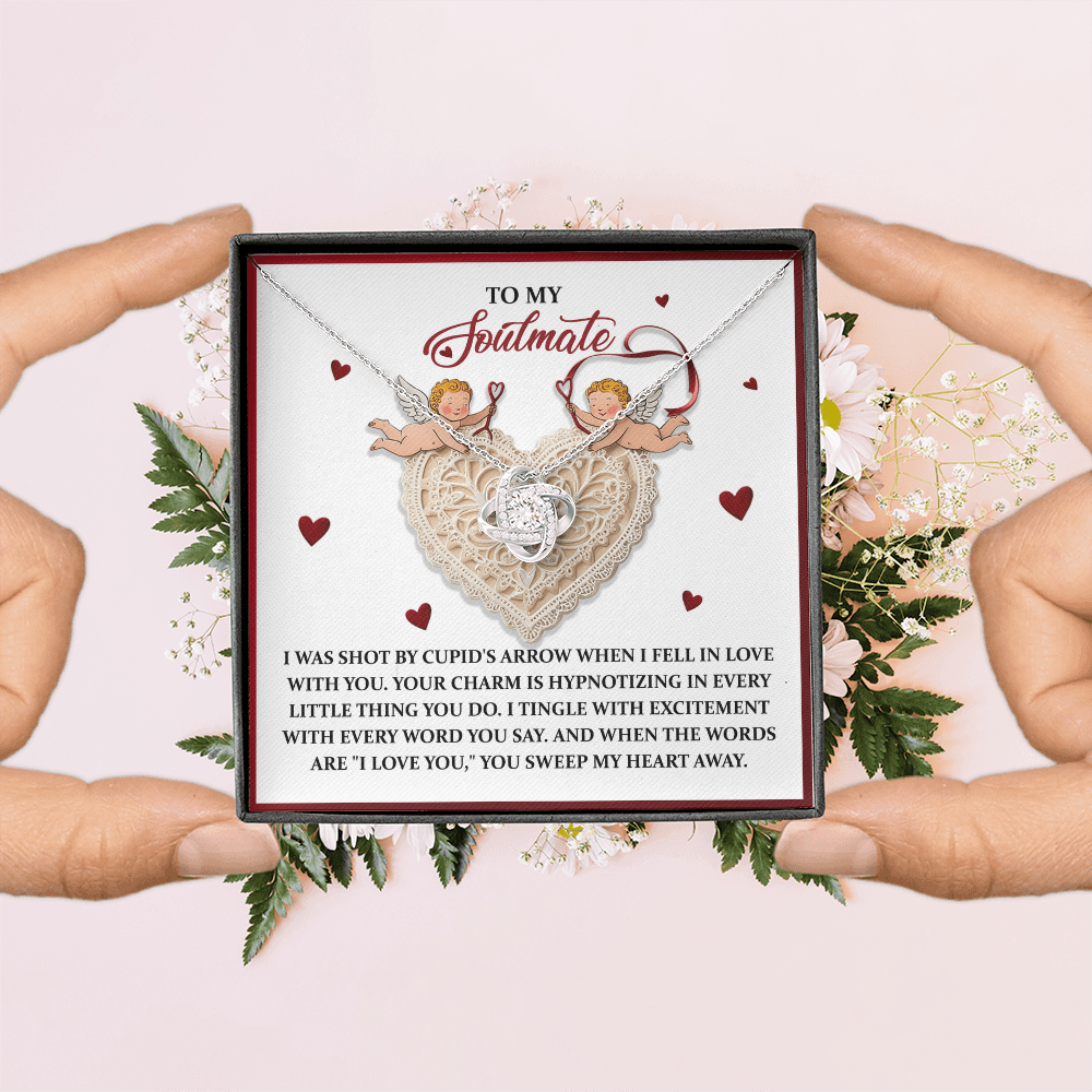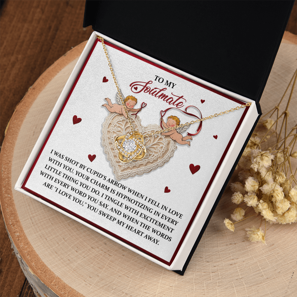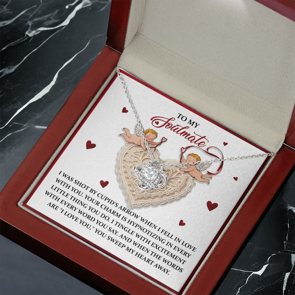 My Soulmate - Shot By Cupid's Arrow When I Fell In Love With You - Your Charm Is Hypnotizing - Tingle With Excitement With Every Words You Say - When The Words Are I Love You, You Sweep Me Away - Love Knot Necklace LN, SMT0000035LN