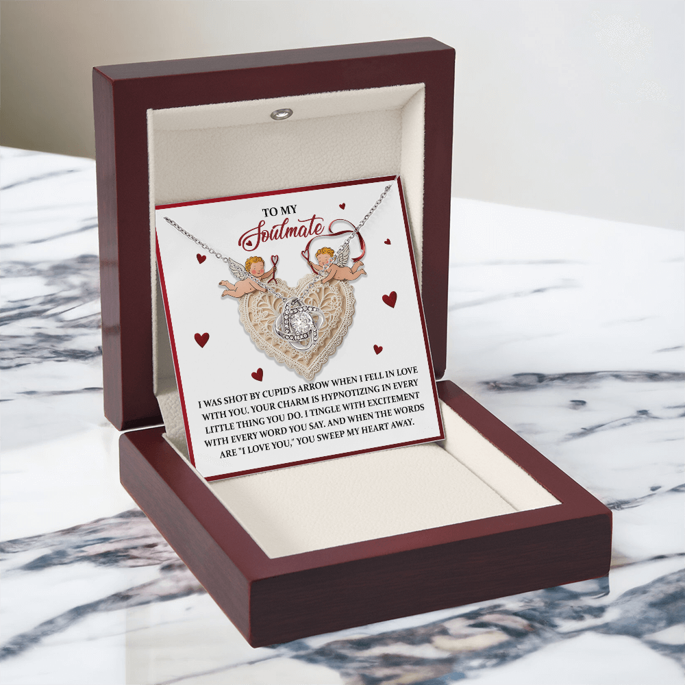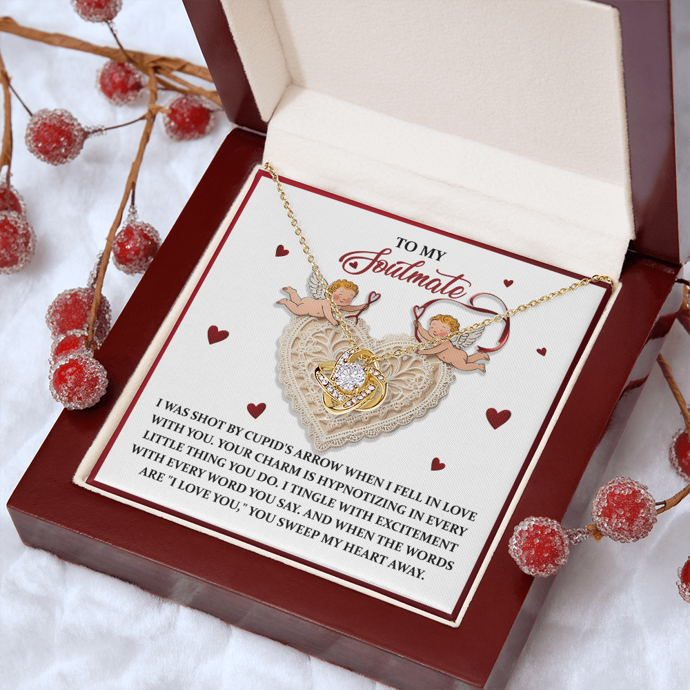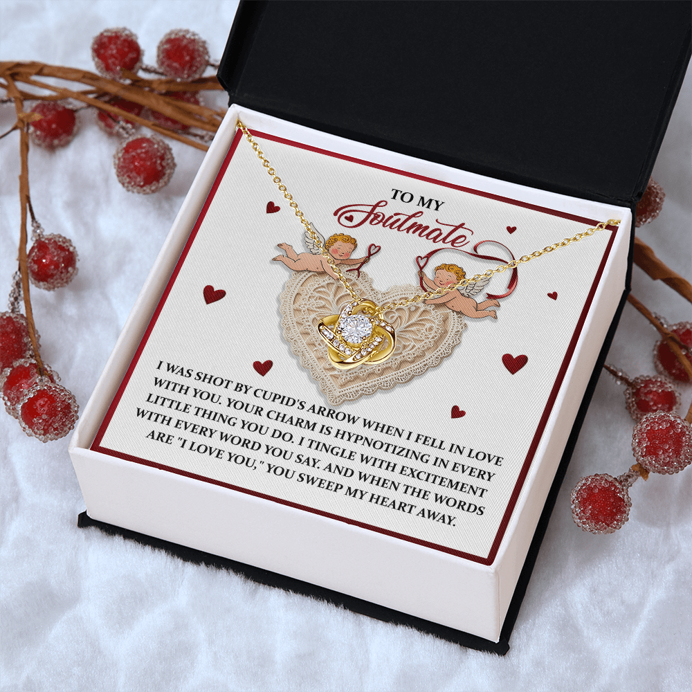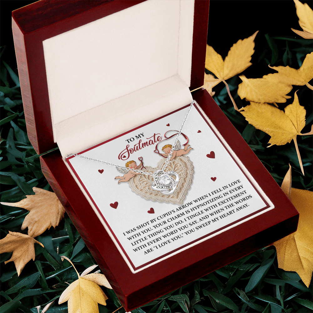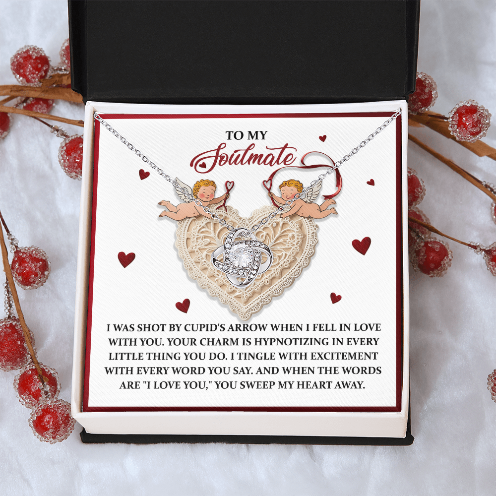 My Soulmate - Shot By Cupid's Arrow When I Fell In Love With You - Your Charm Is Hypnotizing - Tingle With Excitement With Every Words You Say - When The Words Are I Love You, You Sweep Me Away - Love Knot Necklace LN, SMT0000035LN